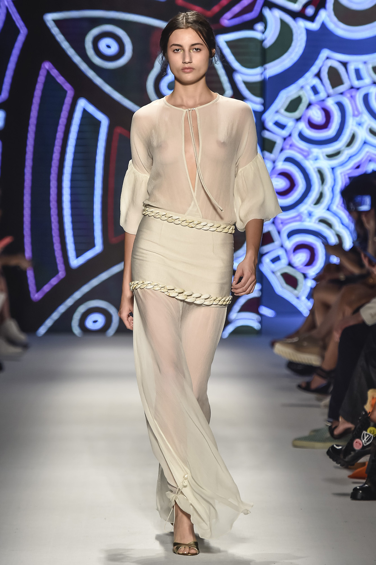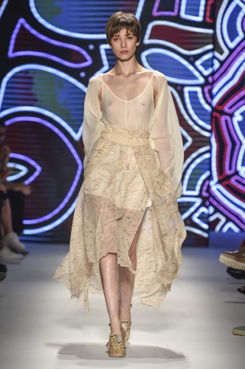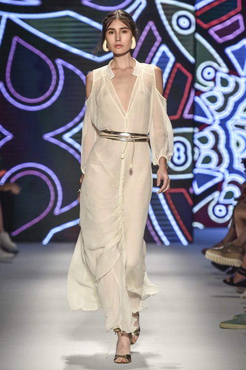 O ultimo desfile que fechou o SPFW N42 ontem foi a marca que amamos Lilly Sarti. Junto com o lançamento da sua coleção resort, a marca inaugurou o seu e-commerce ontem. Muito fluido, tecidos esvoaçastes com cintura marcado, branco, e cores terrosas, tomaram a coleção da dupla Lilly e Renata Sartilevam.