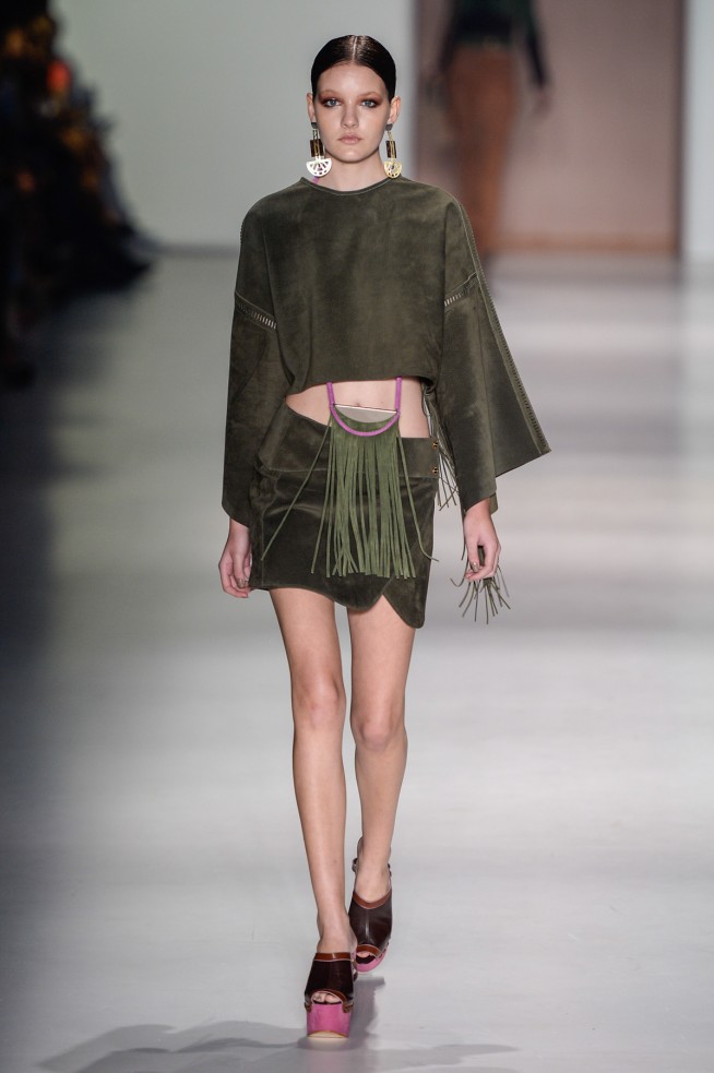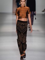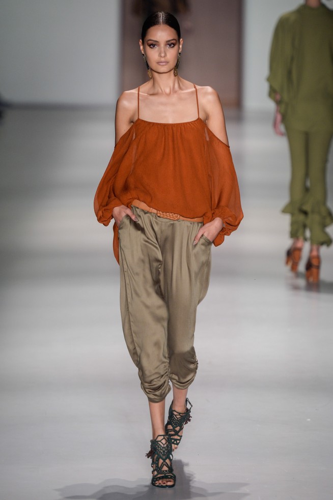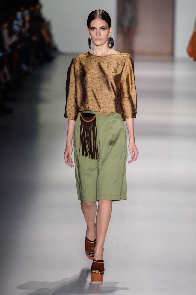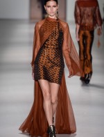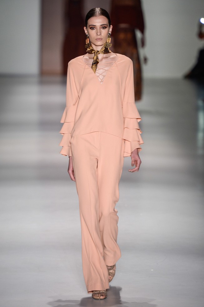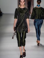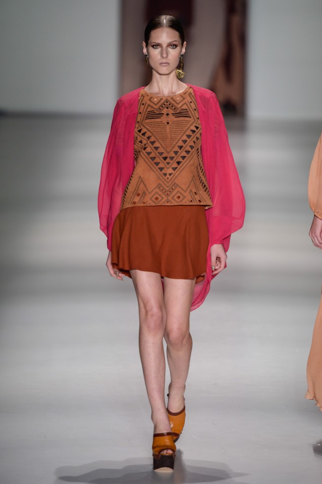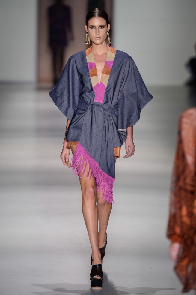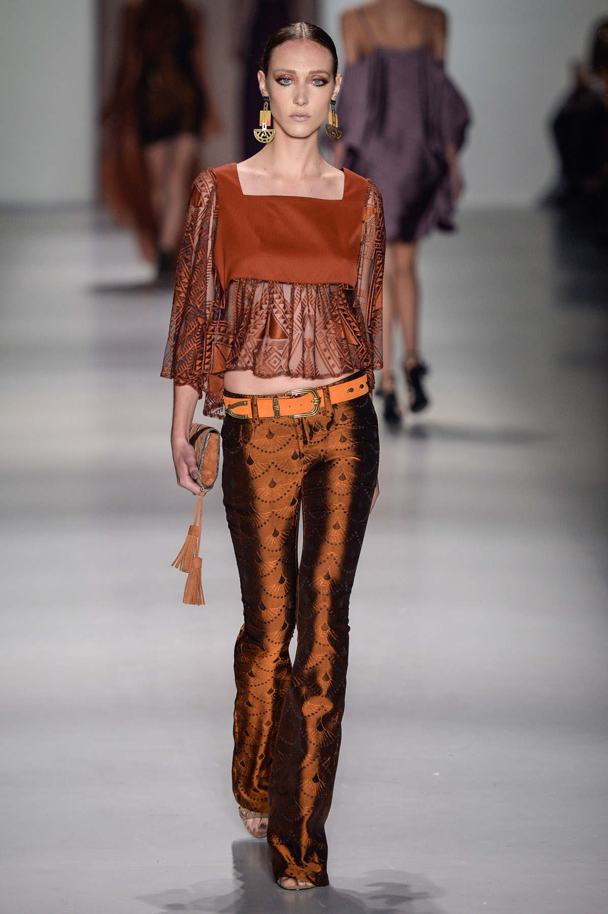 A passarela mostrou influências do lado glamouroso da década de 1970 com um toque de exotismo oriental.