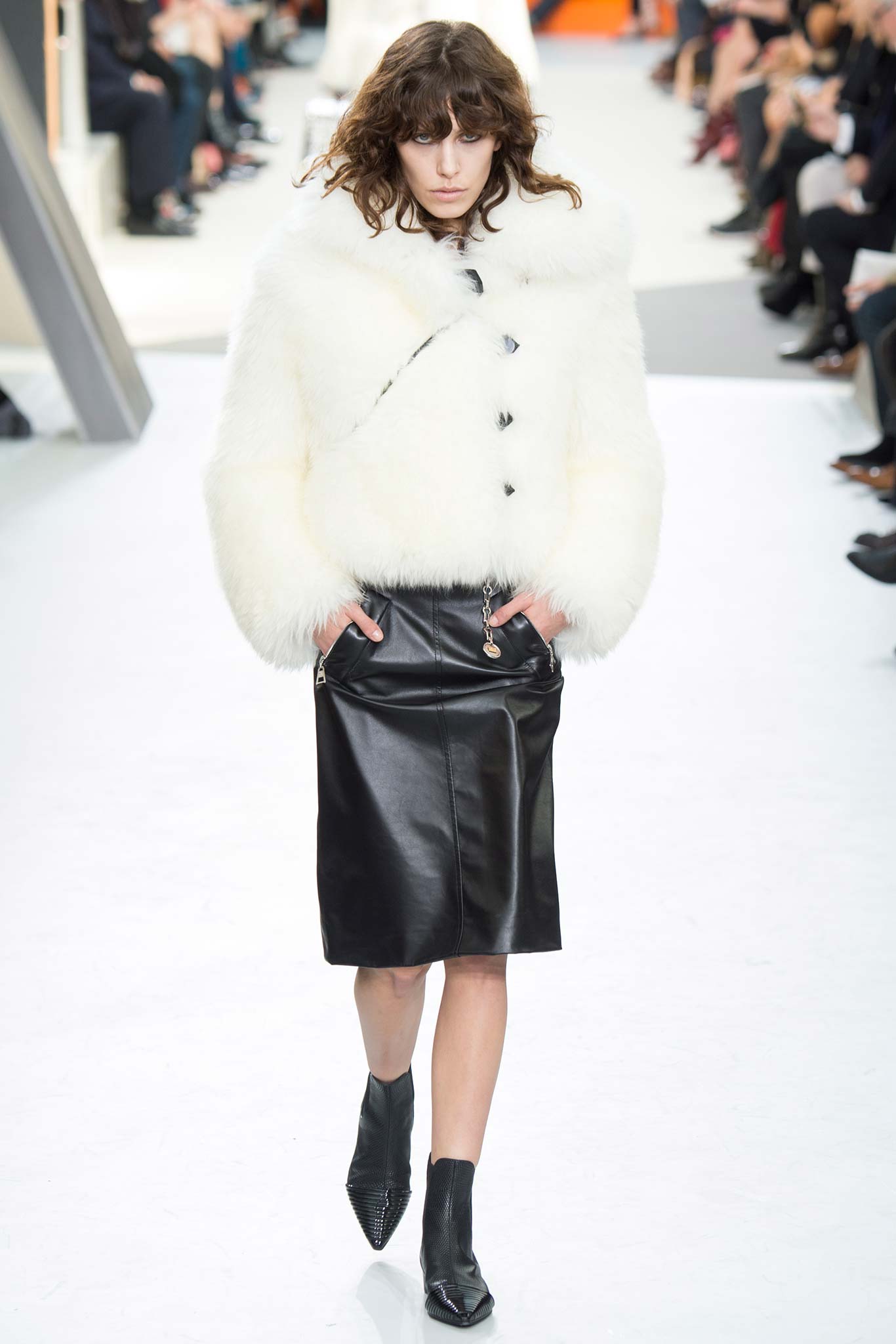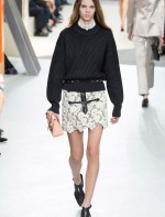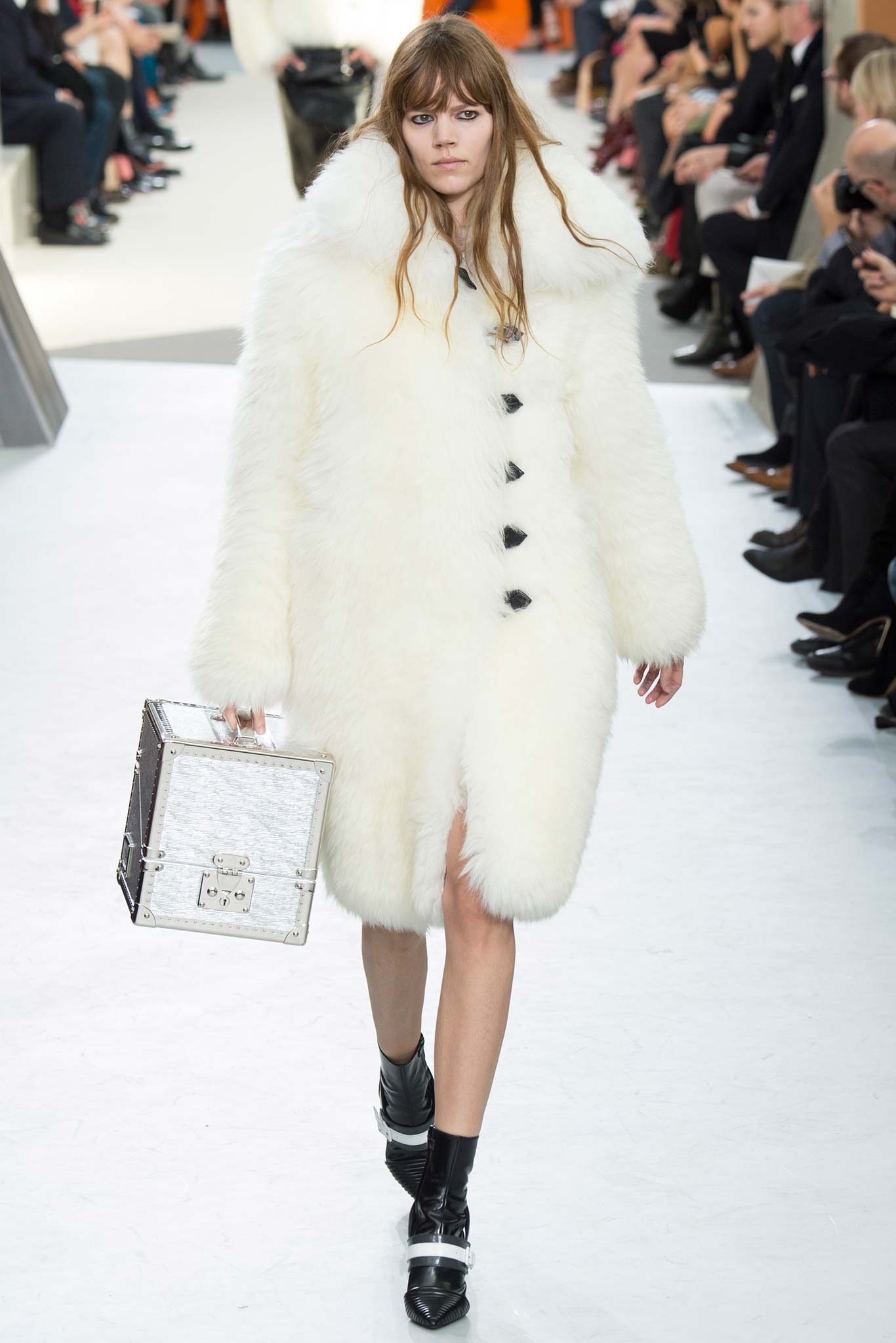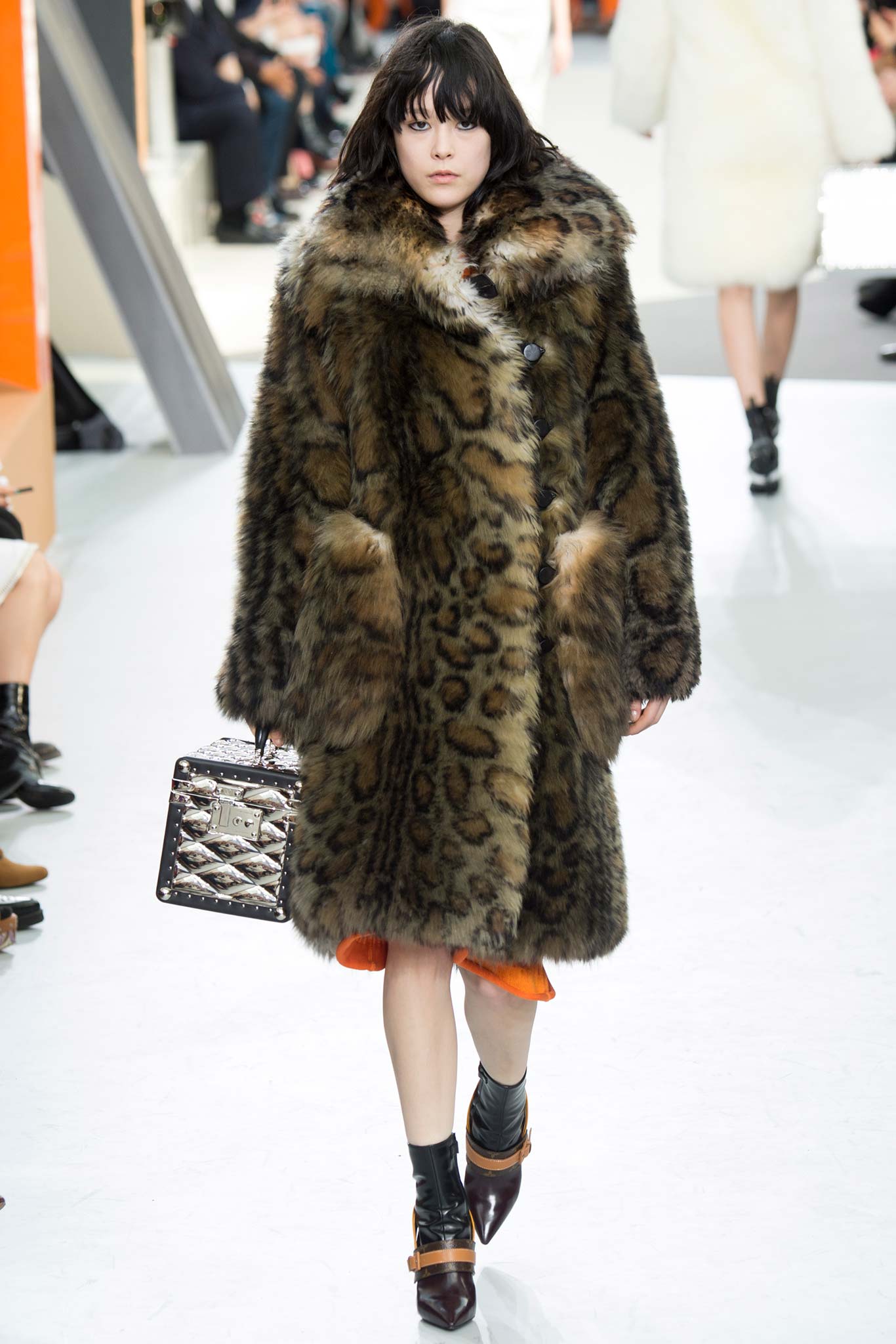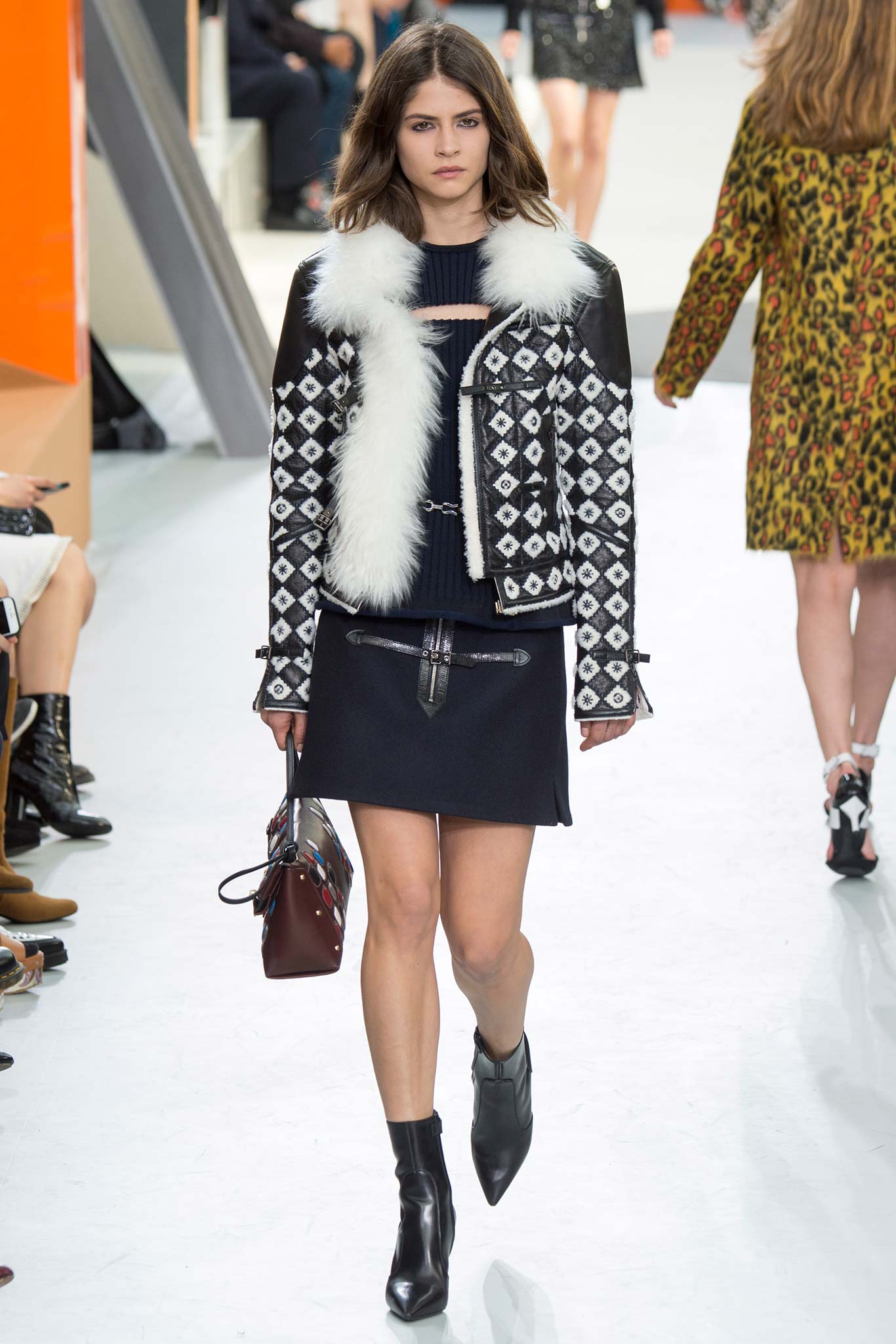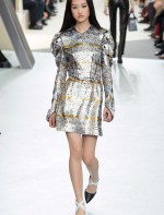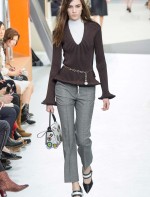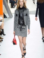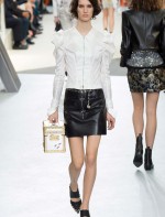 Nesta temporada, Nicolas Ghesquière (o estilista da Louis Vuitton) apostou nas peles – brancas, pretas e estampadas, nos couros, nos brilhos e em um shpae feminino mas com volume nos ombros.