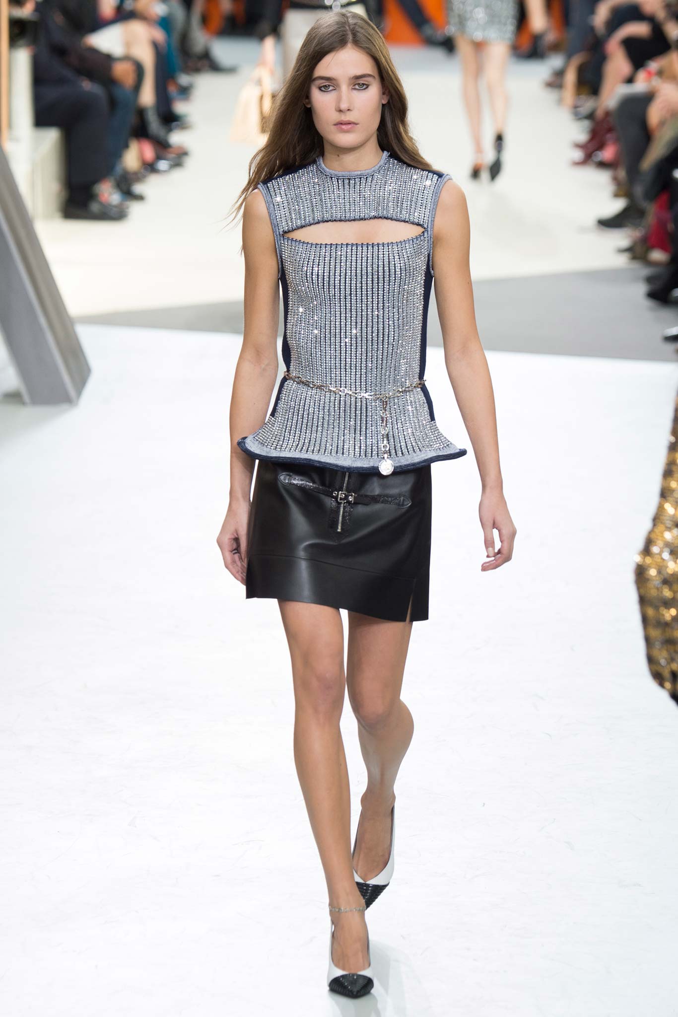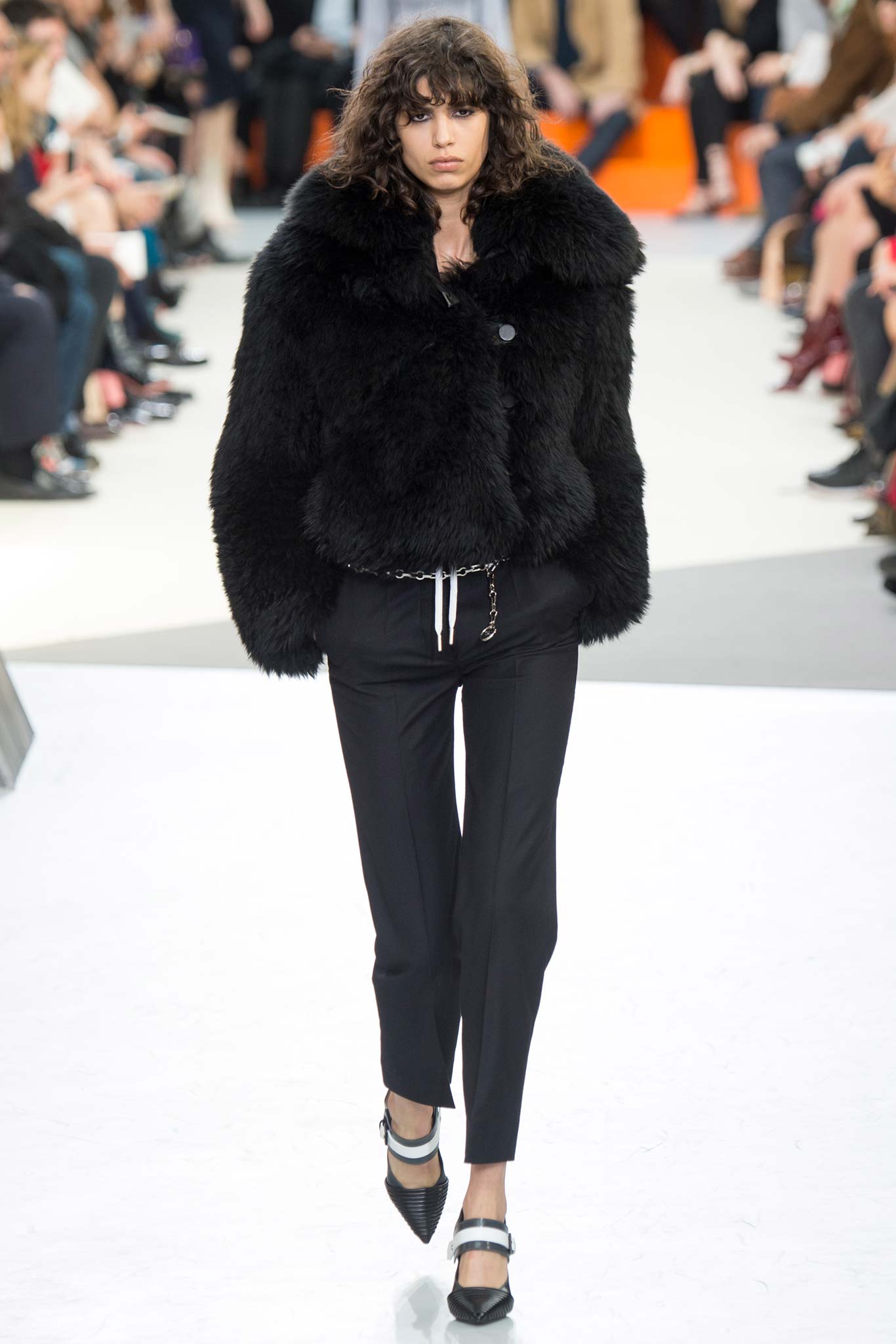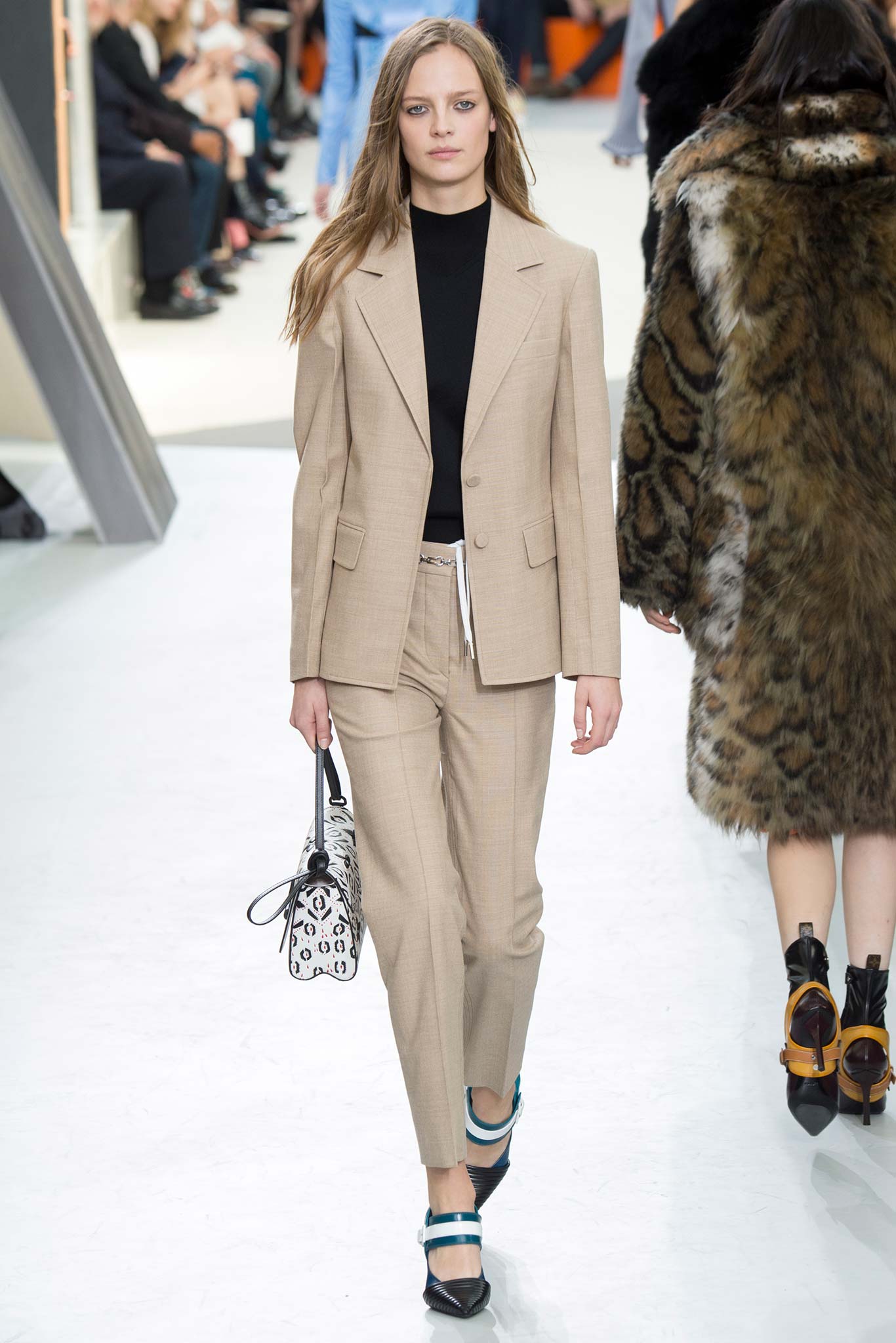 Nesta temporada, Nicolas Ghesquière (o estilista da Louis Vuitton) apostou nas peles – brancas, pretas e estampadas, nos couros, nos brilhos e em um shpae feminino mas com volume nos ombros.
