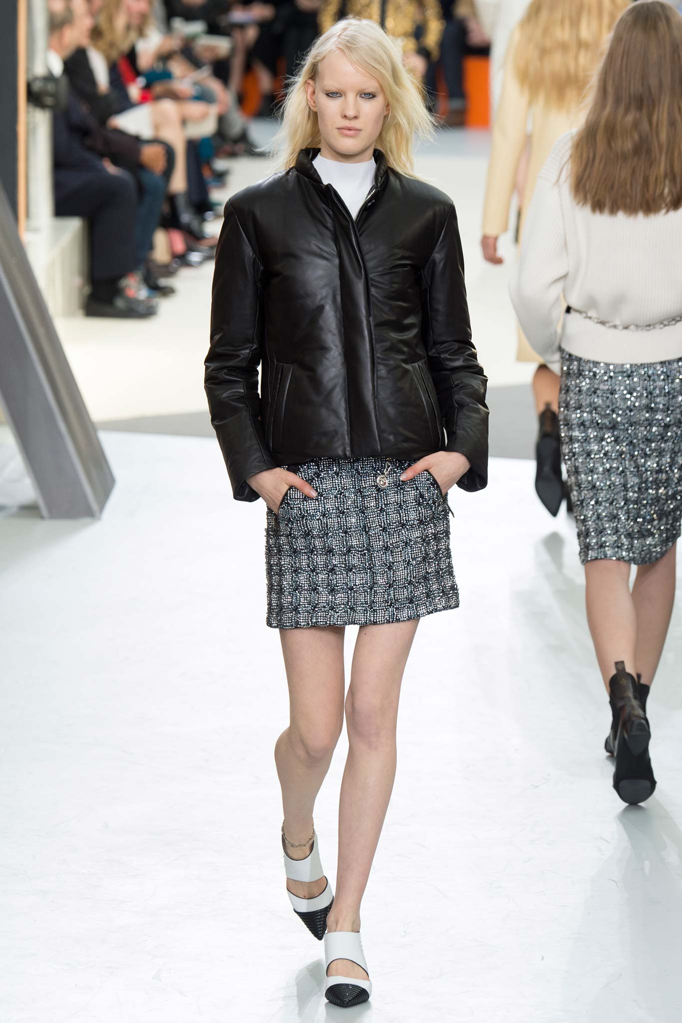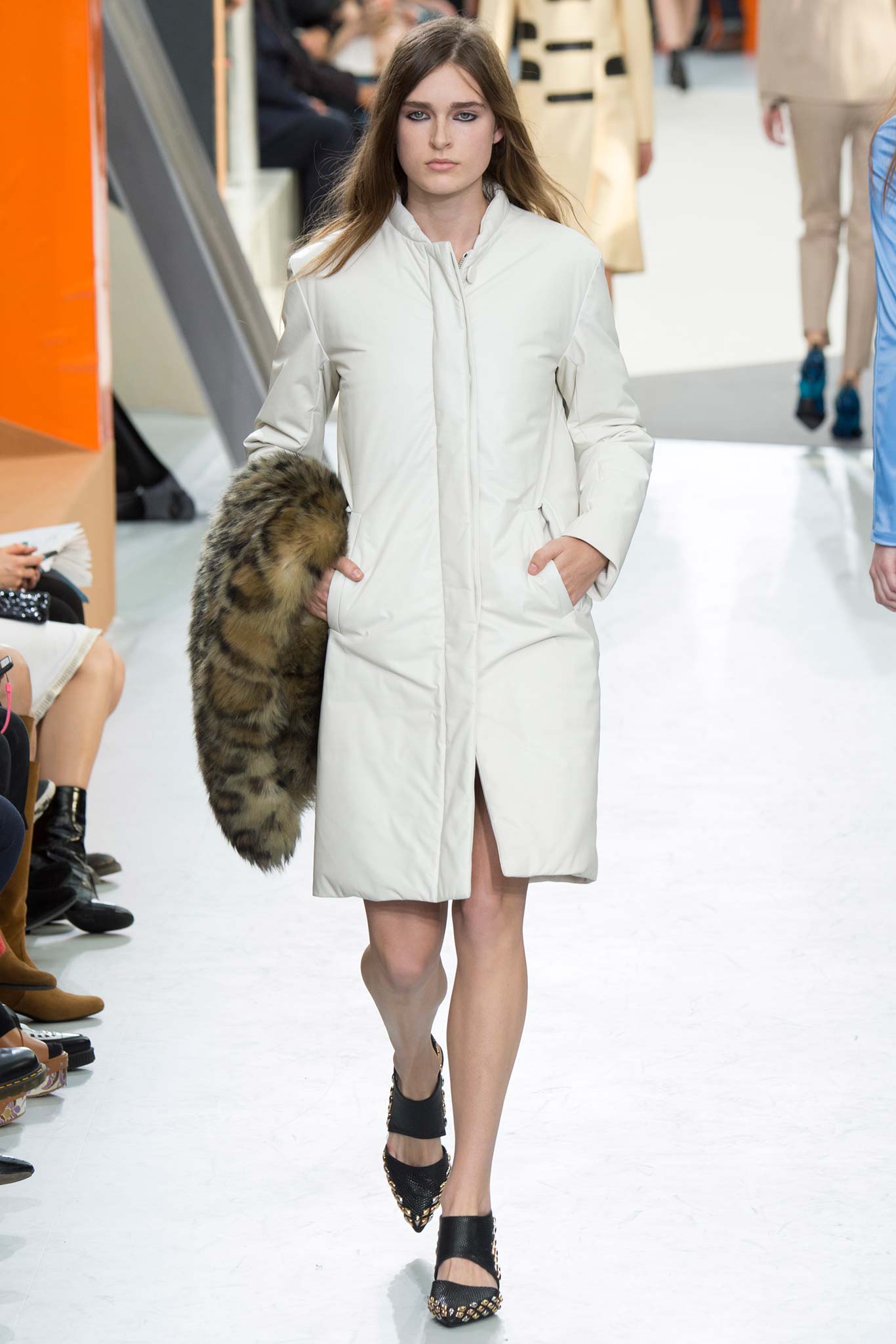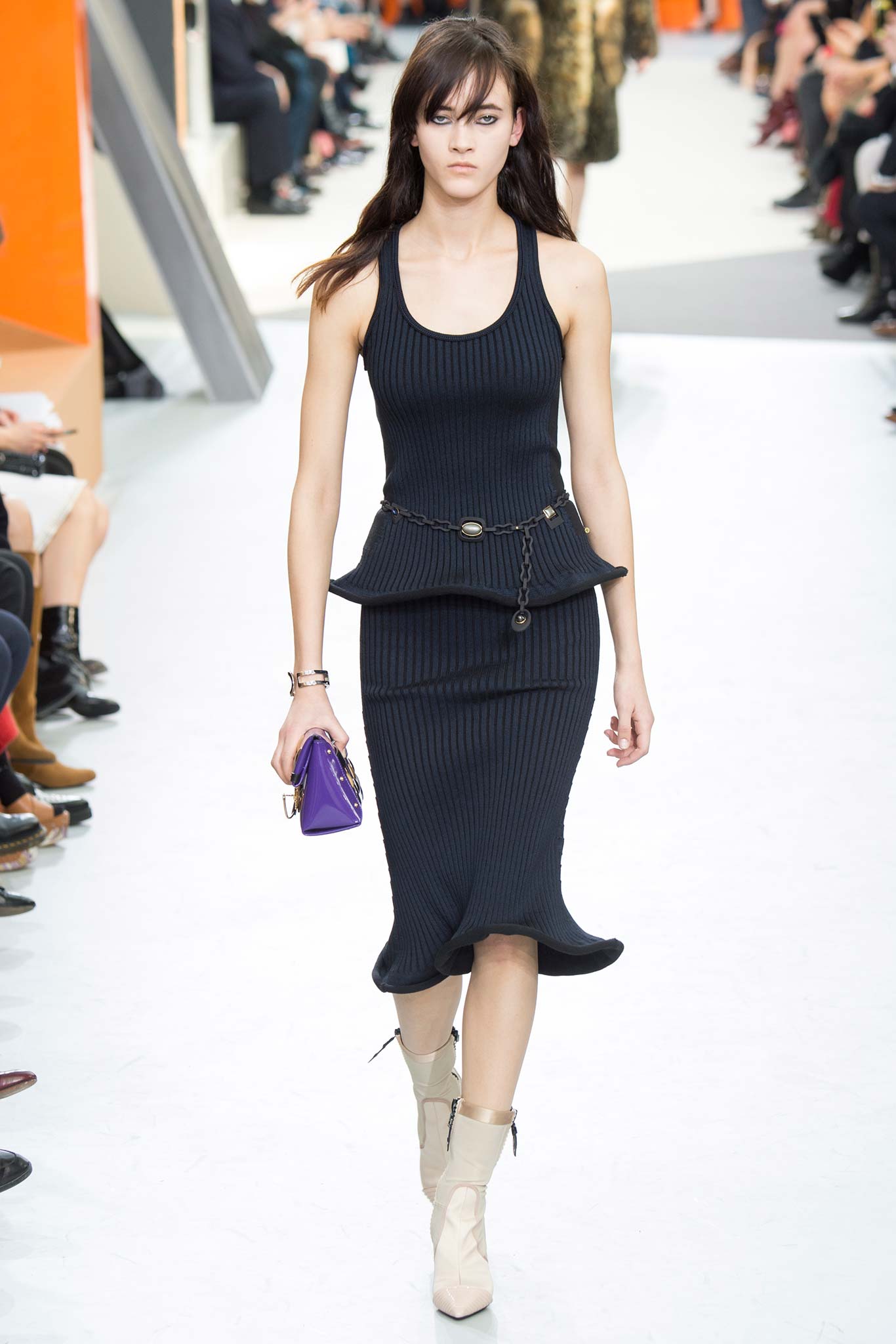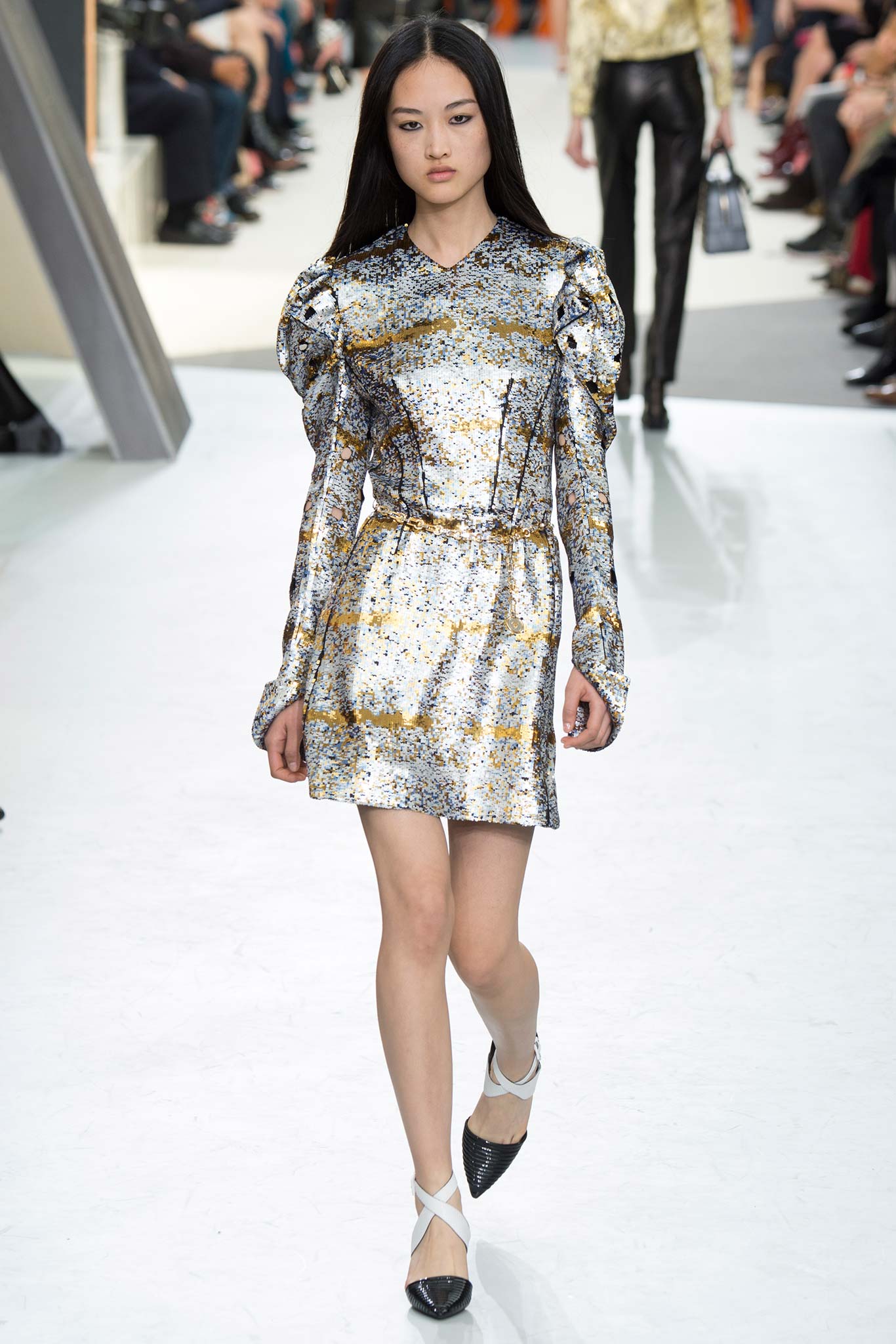 Nesta temporada, Nicolas Ghesquière (o estilista da Louis Vuitton) apostou nas peles – brancas, pretas e estampadas, nos couros, nos brilhos e em um shpae feminino mas com volume nos ombros.