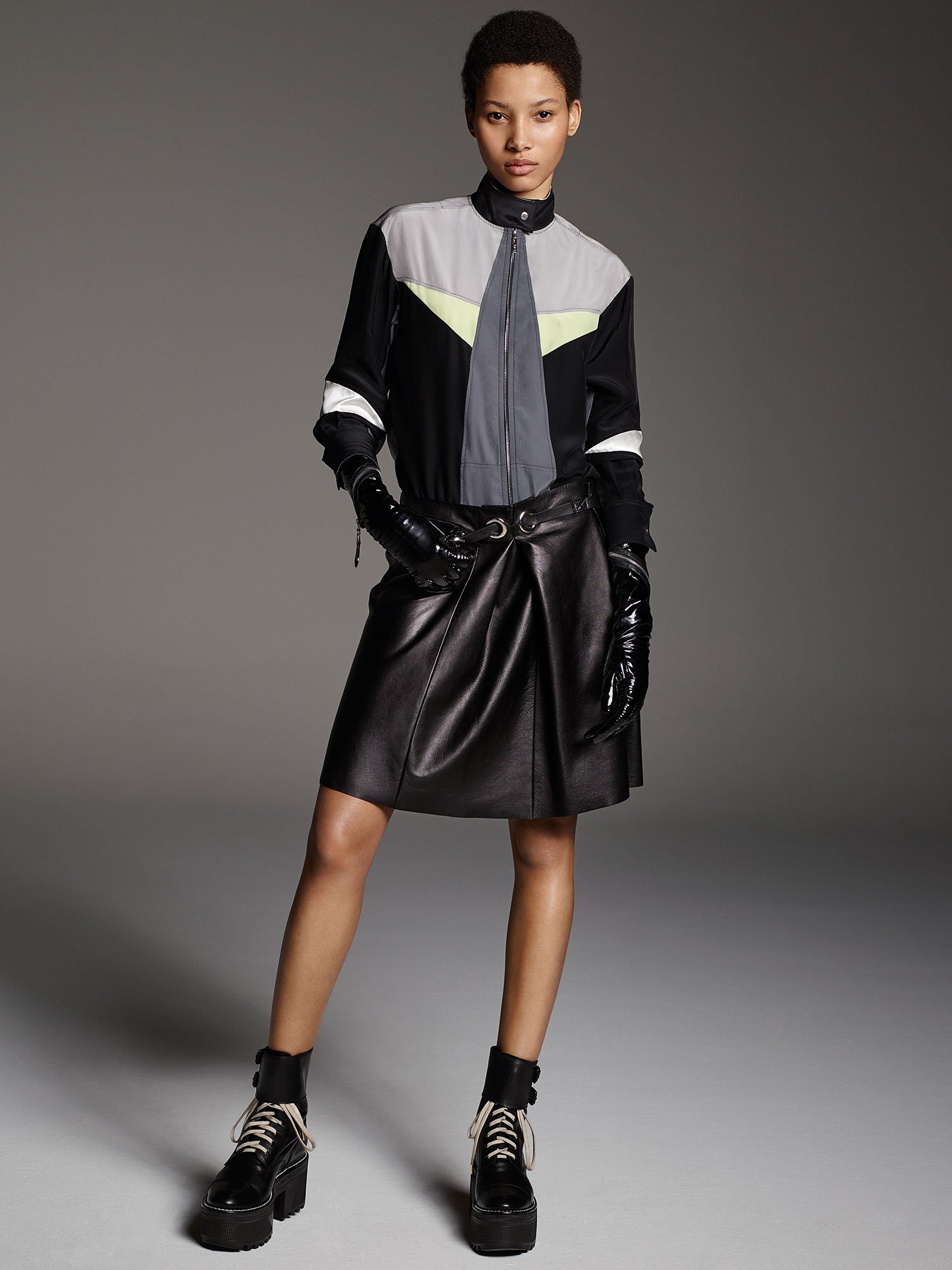 Uma coleção bem sporty é mais ou menos o resumo do Pre-Fall 2016 de Nicolas Ghesquière. Calças leggins abusando do color block e mini vestidos com zíper se misturam com uma pegada punk de botas e bombers pesadas. Check it out: