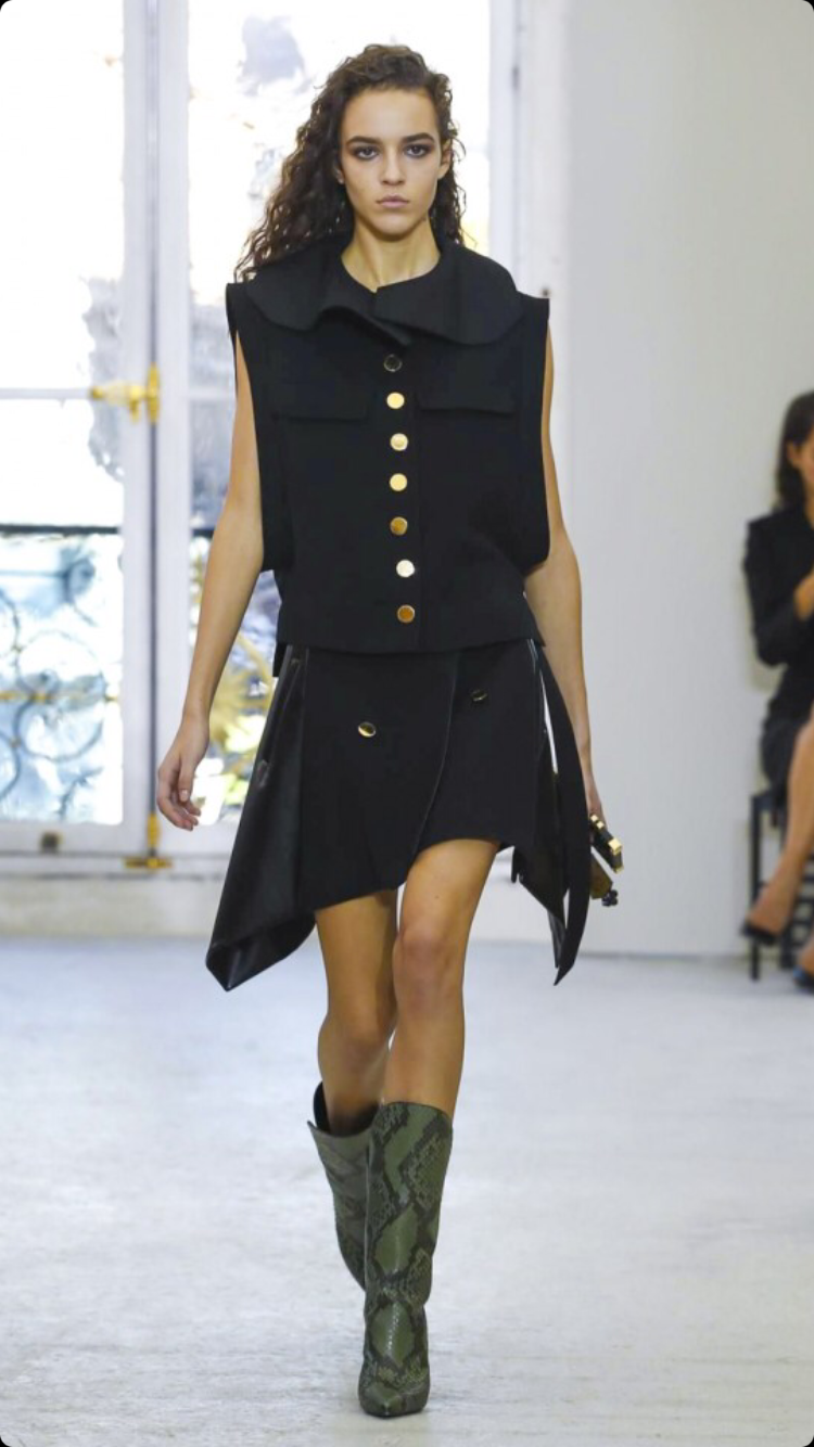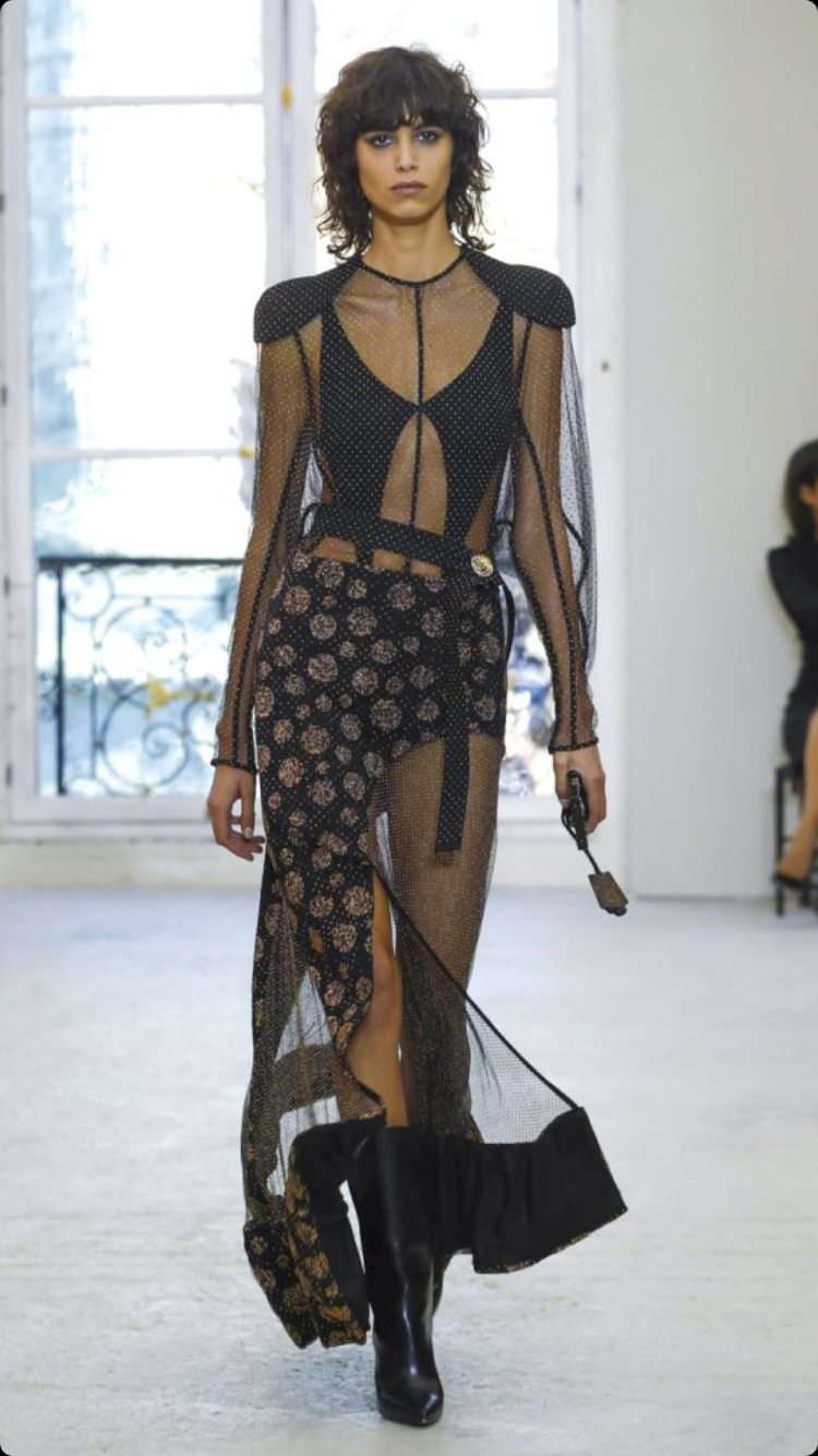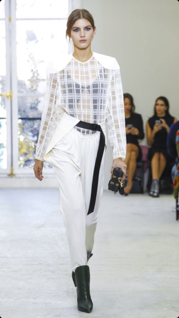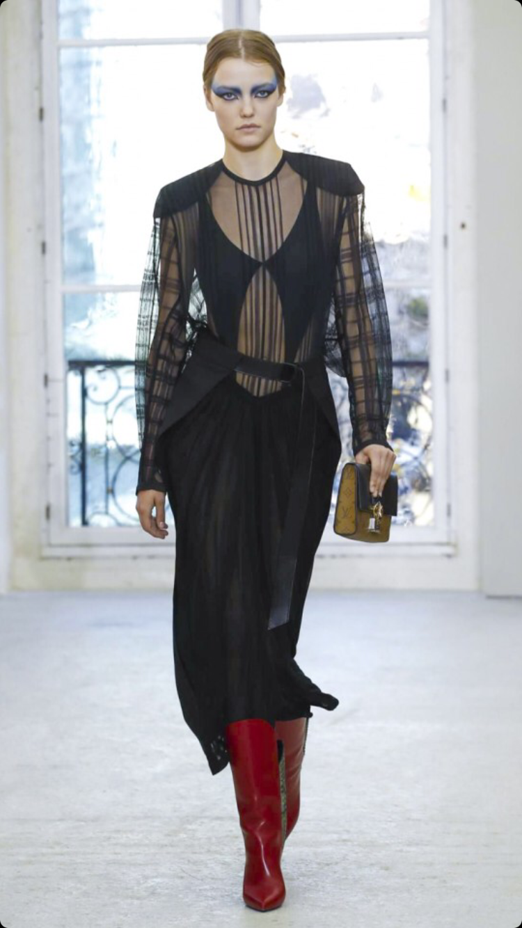 O diretor criativo da maison, Nicolas Ghesquiere, mostrou mais uma vez seu talento e trouxe um clima 70/80 para o show. Brilhos pontuais, dourado, camisetas, ternos cinzas e vestidos fluidos formaram a passarela da LV trazendo uma coleção muito mais chique do que as outras coleções streets anteriores.
