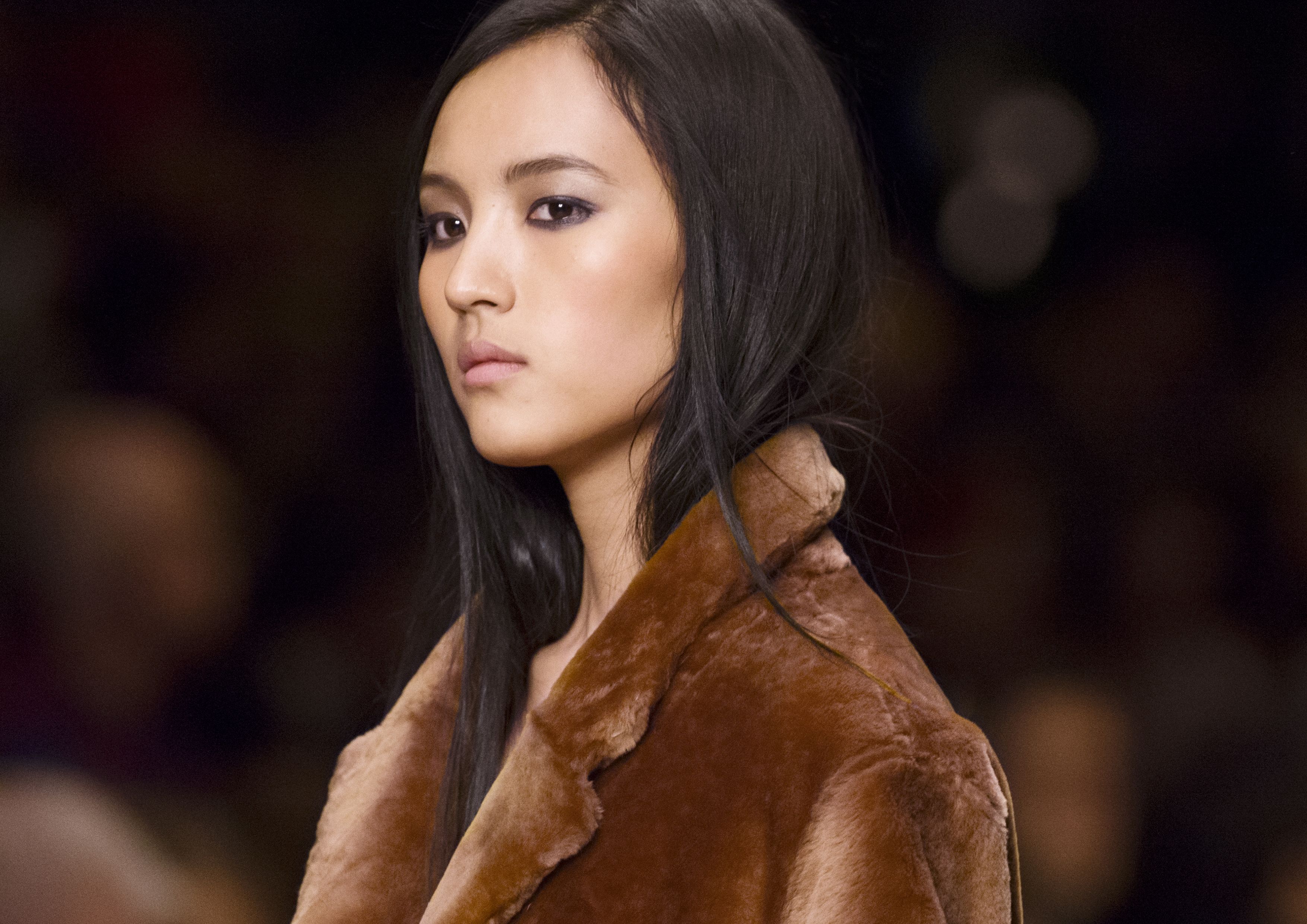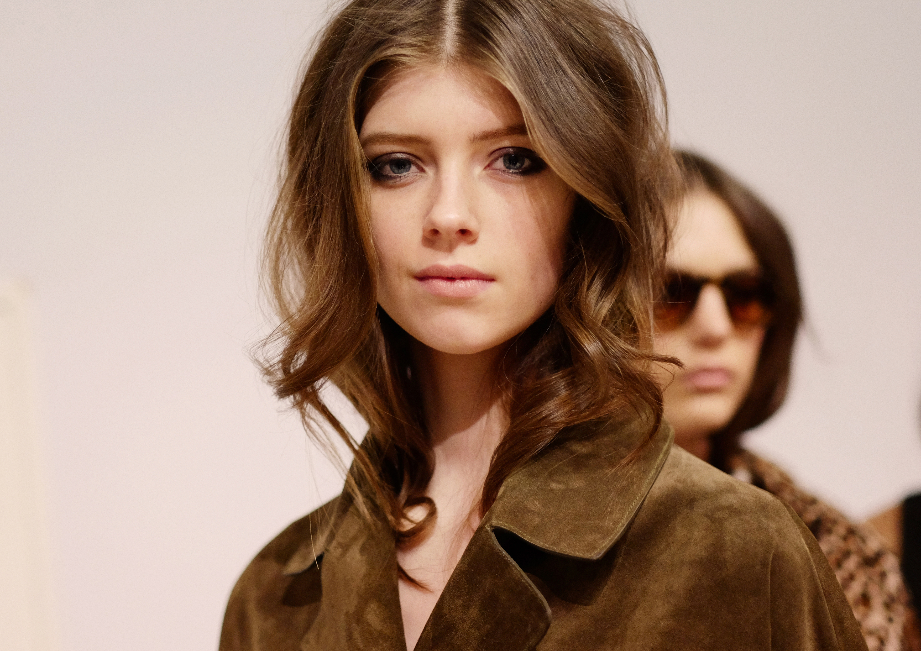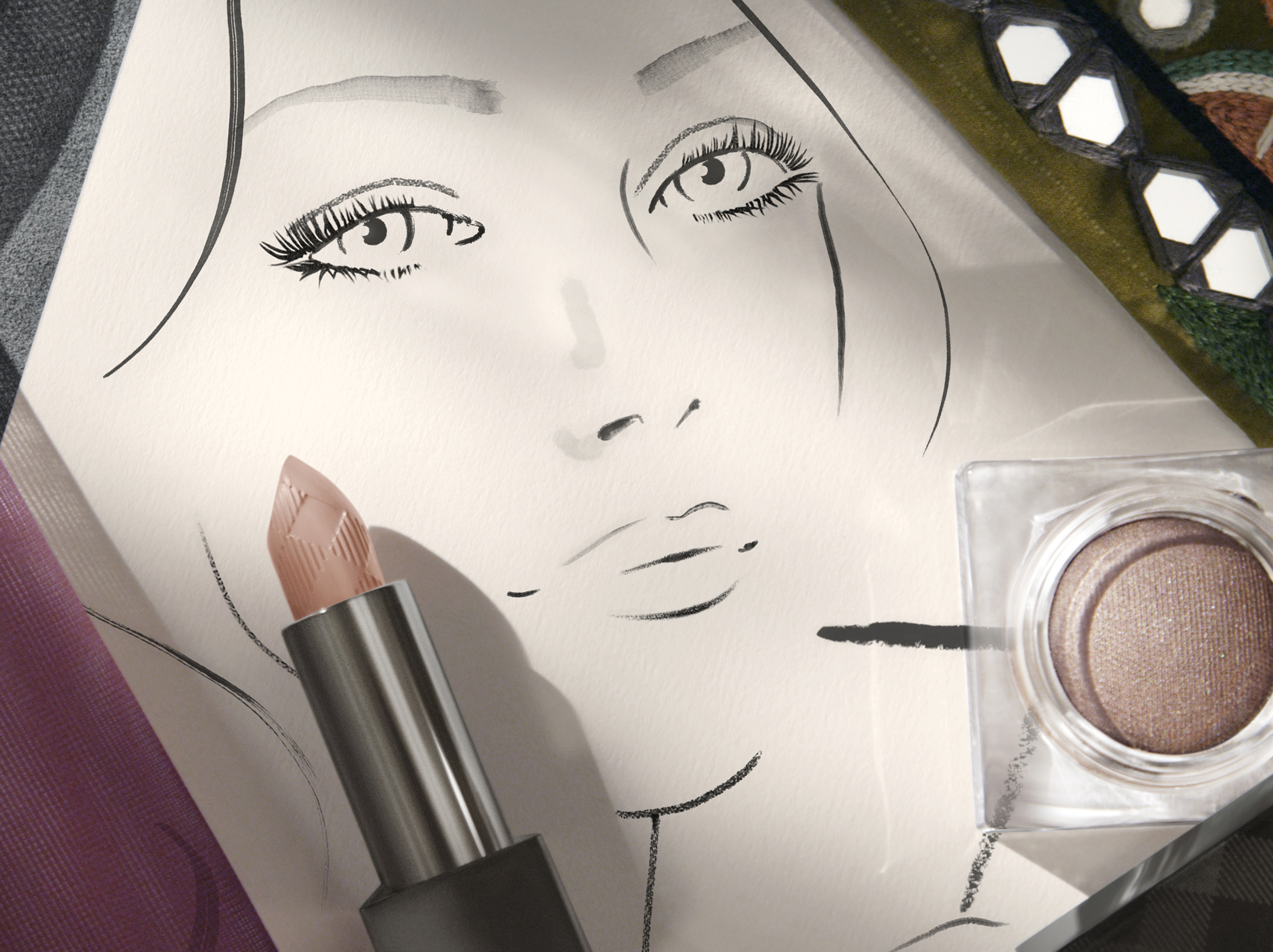 O batom nude é o Burberry Kisses, Nude Beige 01. Nos olhos, foram usadas as sombras cremosas Charcoal 114 (mais escura) e a Mink 102. Para criar esse efeito lindo e esfumado na linha d’água, a grife apostou nos lápis Efortless Kohl Poppy Black 02 e Strom Green 06.