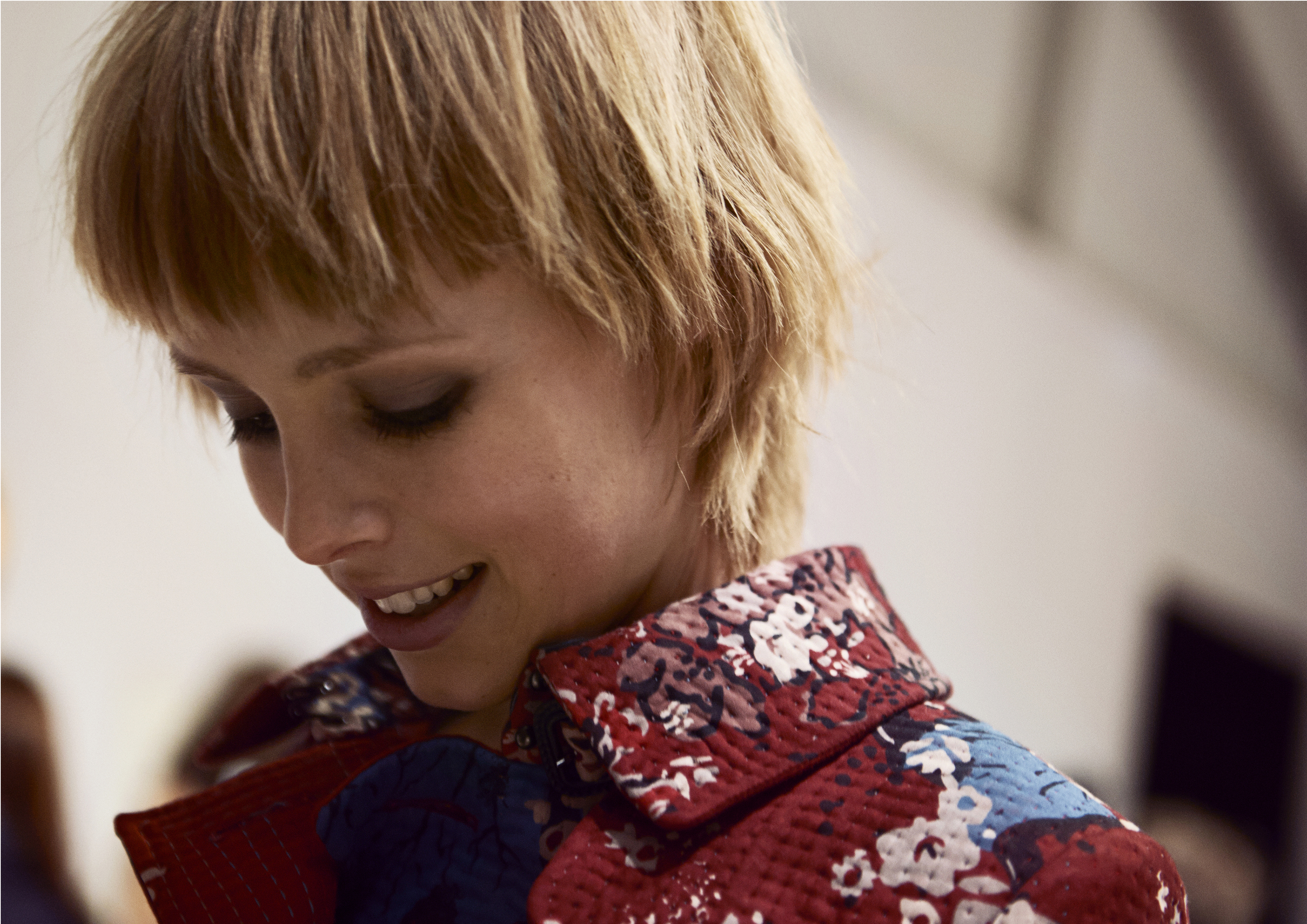 “A paleta de cores escolhida é terrosa e solar de tons esfumaçados, lábios mate e um toque de brilho natural na pele”, explicou a própria marca. É um look romântico, com foco nos olhos e pele iluminada.