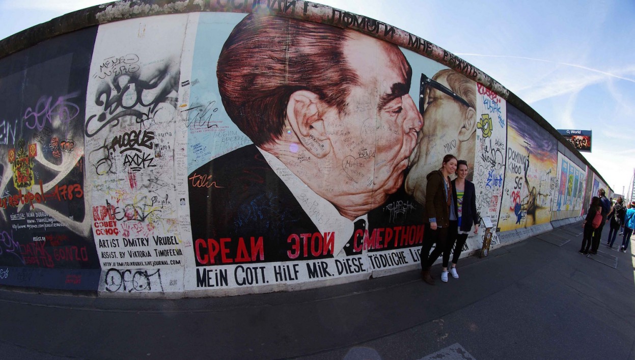 Muro de Berlim e East Side Gallery – Como ir à Berlim e não visitar o muro?! Impossível! Existem alguns loicas onde pode ser trechos remanescentes do muro, mas hoje o muro é mais famoso pela East Side Gallery, que é a maior galeria a céu aberto do mundo! São em torno de 2km do Muro de Berlim, e por mais tristezas que se passou ali, hoje o lugar tem um espaço formado por artes e pinturas de artistas de diversas partes do mundo que expressam os acontecimentos políticos ligados ao muro. E você também pode escrever lá!