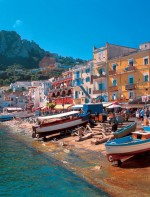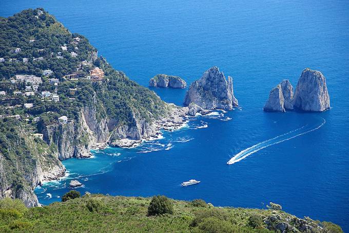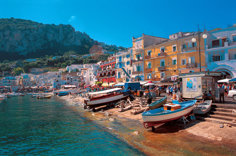 Se existe um lugar badalado na Itália entre junho e setembro este lugar é a ilha de Capri. Pequenina, mede 6 km de extensão por 2 km de largura –equivale a pouco mais da metade de Fernando de Noronha. Lá vivem cerca de 12 mil moradores, divididos entre suas duas cidades, Capri e Anacapri. Rodeada pelo atrativo verde-esmeralda do Mediterrâneo, a ilha ferve de gente bonita e elegante, lojas descoladas, restaurantes badalados, tudo muito caro; e, o que há de melhor e de graça, belas paisagens. Dentro de Capri, o tráfego de veículos é restrito. Nas vias de acesso, circulam ônibus e táxis.