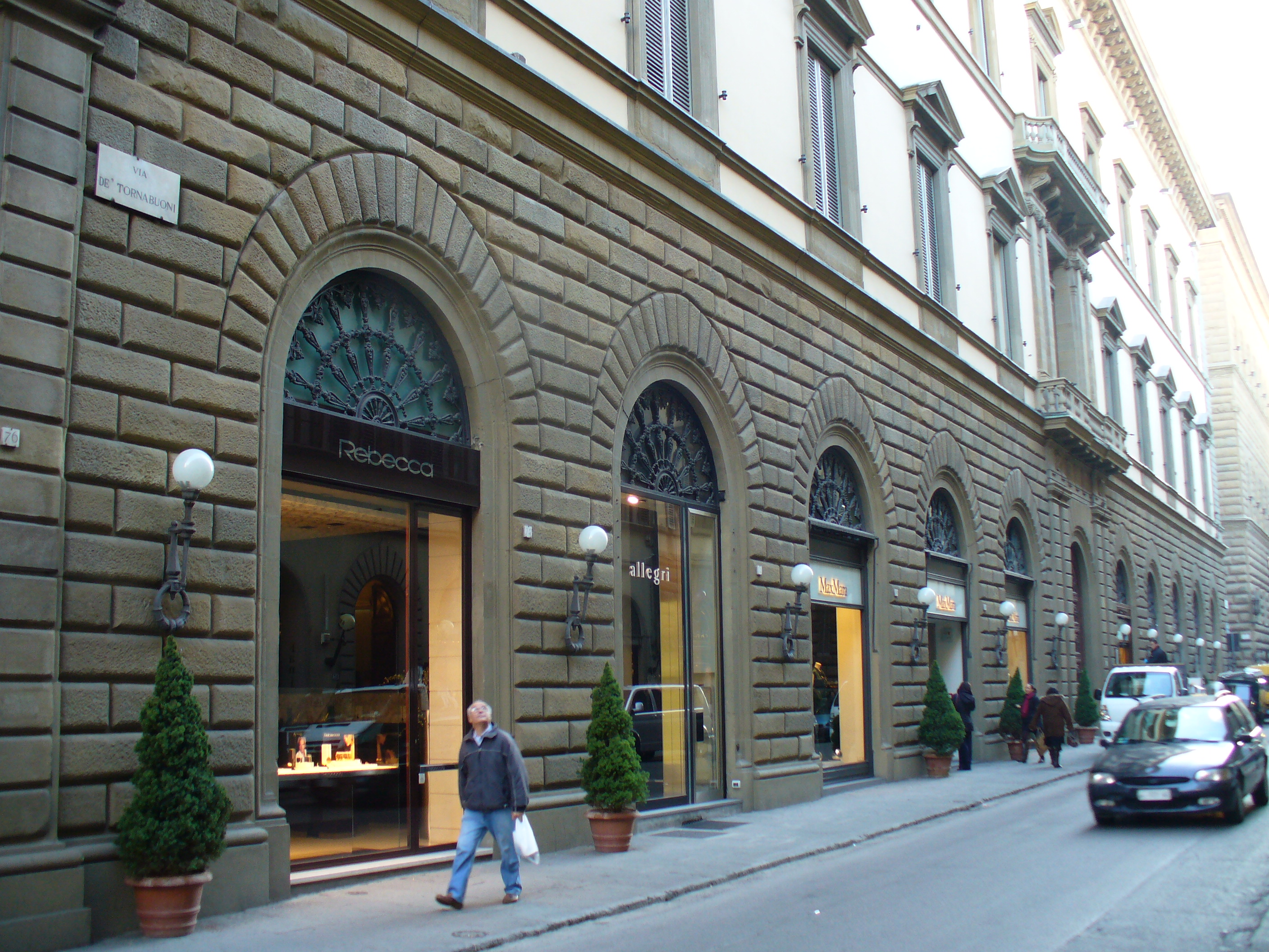 A Via Tornabuoni é a mais chique de lá, com lojas da Prada, Gucci, Tiffany, Rolex e Hermès, por exemplo. Já a Via Calimala é mais diversificada, com lojas como: Zara, Geox e Puma. A Via Roma, apesar de muito pequena, reúne algumas lojas bastante conhecidas e sofisticadas, como Miu Miu, Prada, Liu Jo, Massimo Dutti e Gucci. Para fechar o percurso das ruas de compras, a Via Calzauoli, onde você encontra maquiagens, sapatos, bolsas, malas, lingerie, cafés, óticas e muito mais.