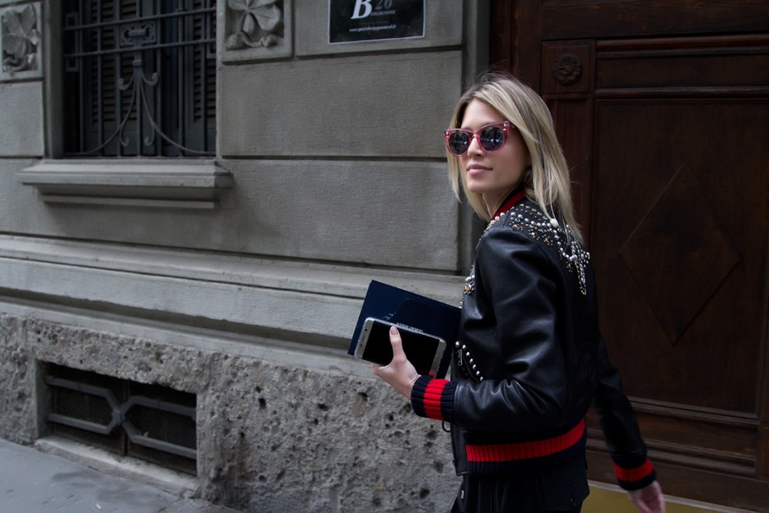 Bom dia Milano!! O terceiro dia do MFW está ainda mais agitado e cheio de looks para vocês. No primeiro look de hoje a Helena usou bomber jacket e óculos Doshow Rosa para assistir ao desfile do Giorgio Armani, super cool! Confira detalhes:
