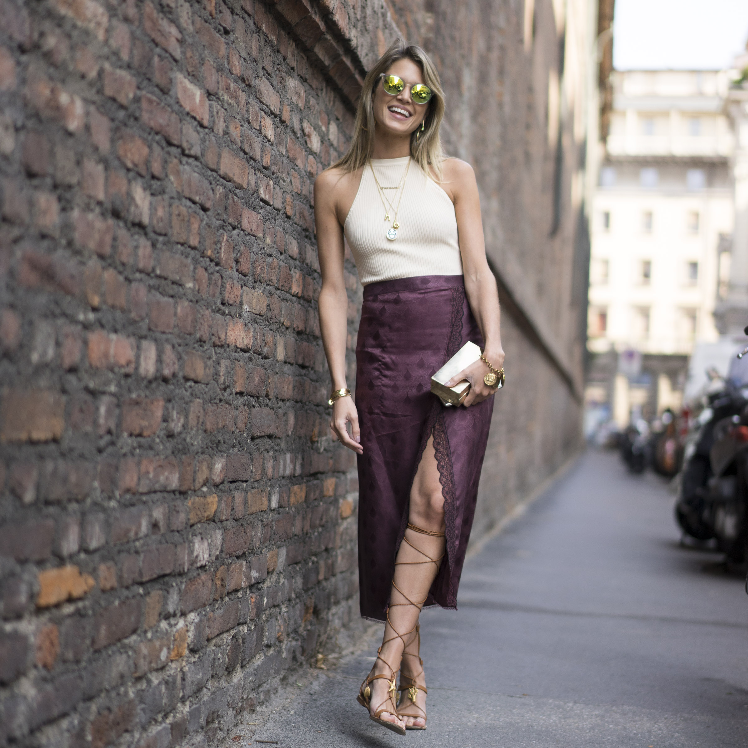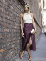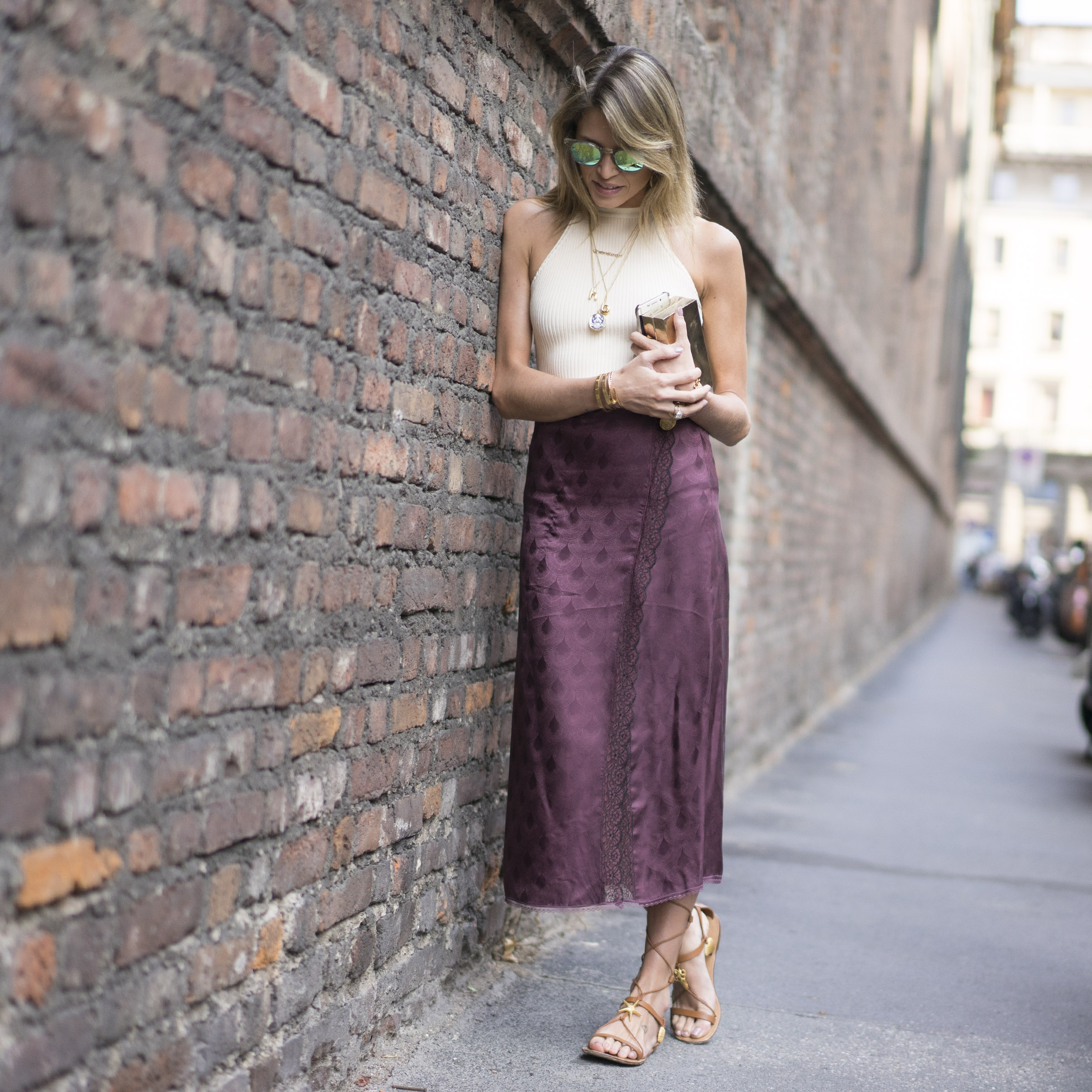 Moça,sei que é elegante,mas ficou linda nas fotos.Essa saia com a sandália ficou demais.Essa cor te deixou muito bem,realçou com seus cabelos.Apenas não acho prática a bolsa,parece que é só para fotografar.
