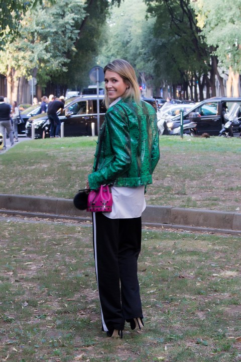 A semana de moda de Milão é uma das mais agitadas de todas, e ainda no segundo dia, o último look que a Helena usou foi para assistir ao desfile da Prada – que foi incrível como de costume! Check detalhes do look abaixo: