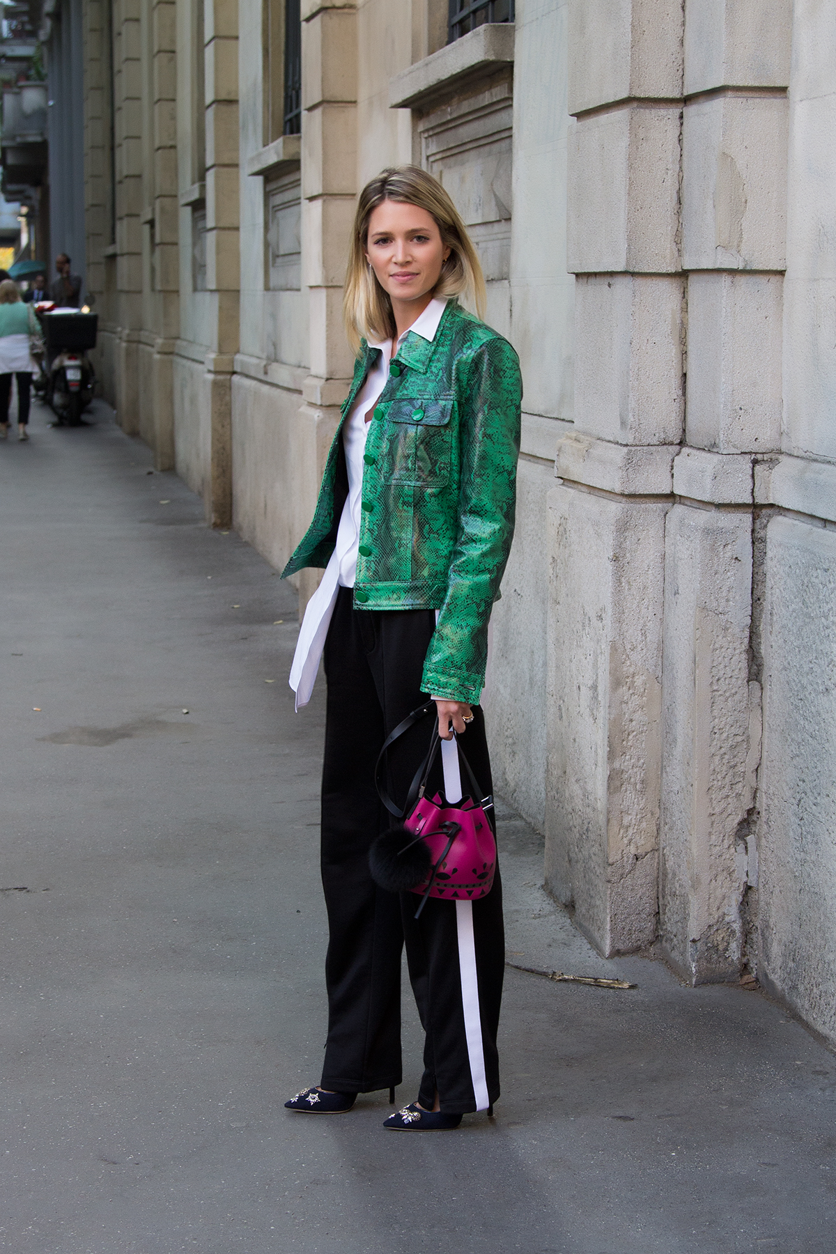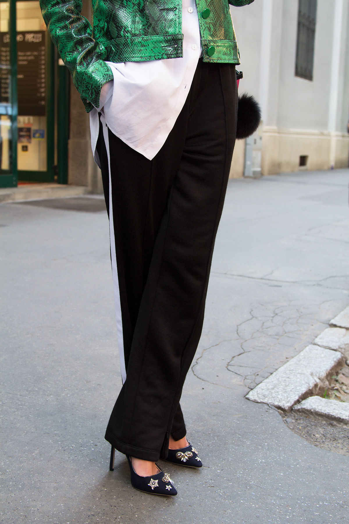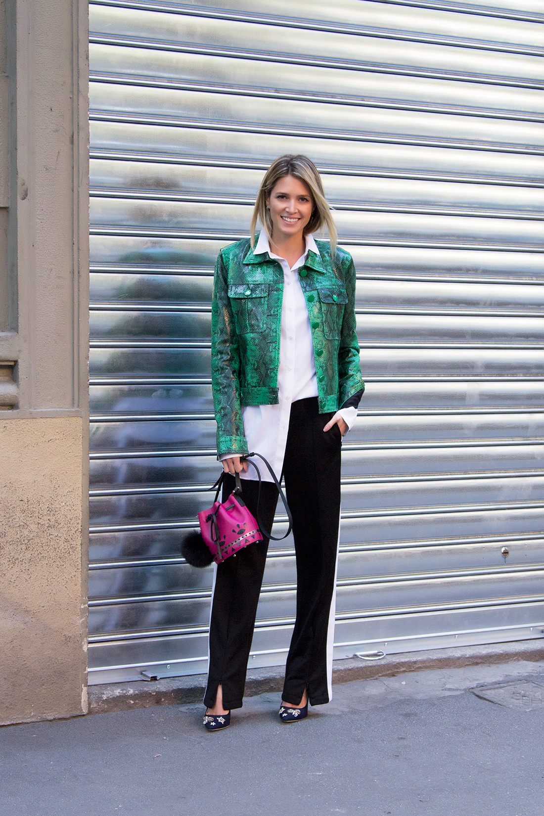 A semana de moda de Milão é uma das mais agitadas de todas, e ainda no segundo dia, o último look que a Helena usou foi para assistir ao desfile da Prada – que foi incrível como de costume! Check detalhes do look abaixo:
