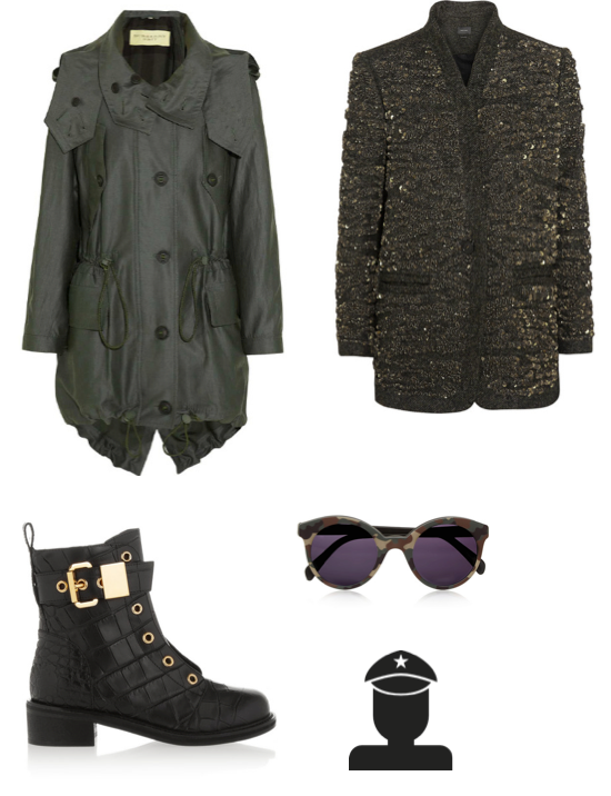 Os tons khaki, cinza e verde militar estão mais em alta do que nunca, um must da temporada de FW14! Você pode variar entre parkas, coletes, jaquetas, calças cargo e botinhas pesadas, uma das minhas peças favoritas! Fiz uma seleção cool do que está por vir e ainda montei alguns exemplos de como compor esses looks! Check it out: