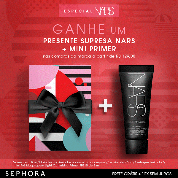 A Sephora está com uma promoção hoje de que em todas as compras da marca NARS a partir de R$ 129,00 você levará um presente surpresa Nars + mini primer. Show!