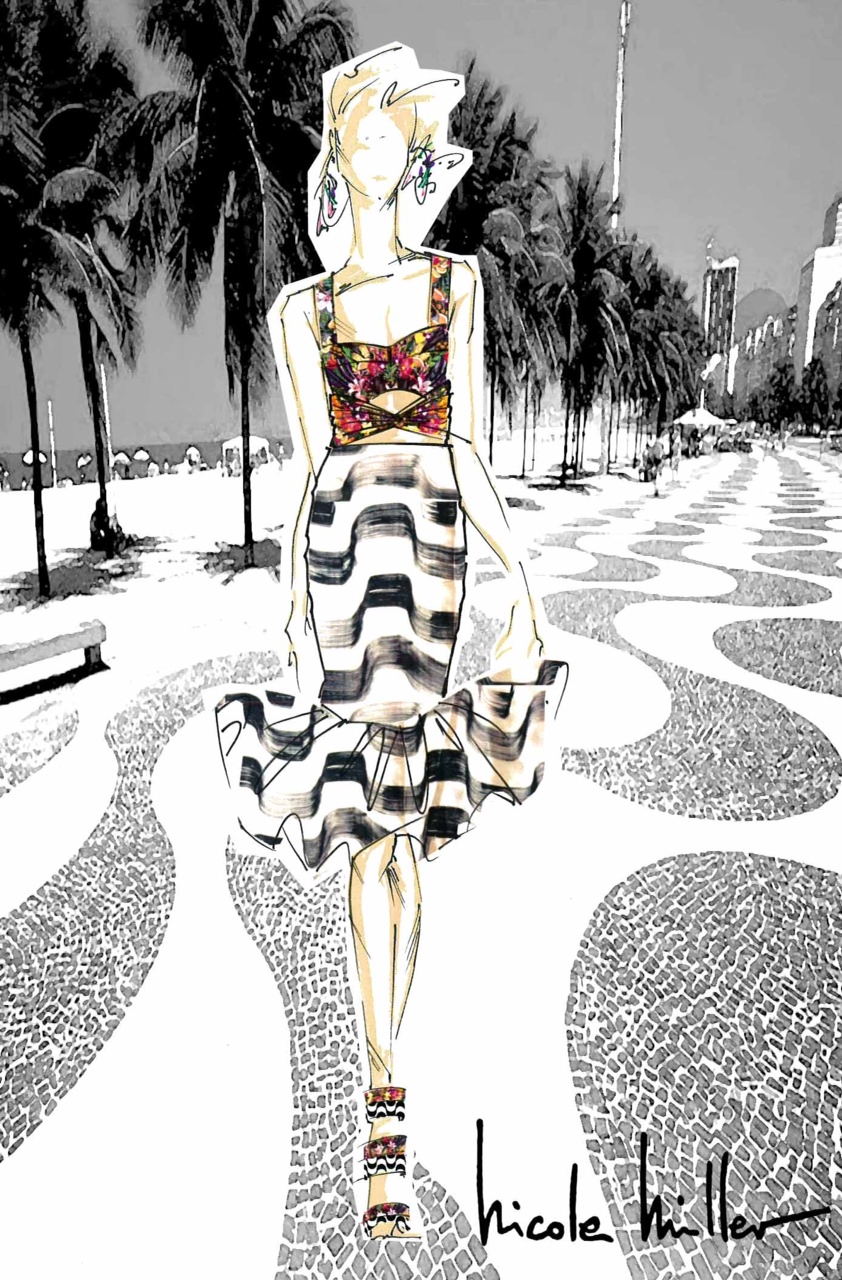 Já estou aqui em NY acompanhando os desfiles da semana de moda e adivinha, a estilista Nicole Miller, que é famosa por suas estampas, apresentou ontem a sua coleção Primavera 2015, toda inspirada pela vibração e pela cultura brasileira, tem até calçadão de Copacabana!! Muitas estampas e brilhos vindos tanto da fauna e flora como da cena urbana, a exuberância dos vendedores ambulantes e também ícones como Carmem Miranda. Show!