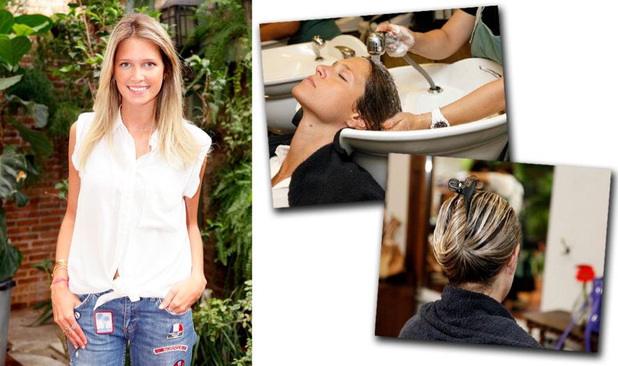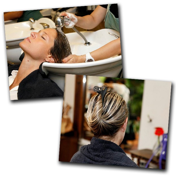 O cabelo é lavado com shampoo por 10 minutos, depois aplicam uma máscara orgânica própria do salão da Cris Dios que é maravilhosa!