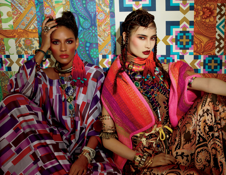 Estava passeando pelo shopping semana passada e parei em frente a loja da M.A.C porque uma foto da modelo Emanuela de Paula me chamou atenção. Ela vestia roupas étnicas ao lado de outra modelo, com vestidos coloridos e joias mil. O mix de cores me agradou, processei a informação e fui embora. Fiquei pensando naquela imagem e resolvi mandar um e-mail para a assessoria da M.A.C, que me passou todas as informações sobre a coleção. Estou apaixonada…