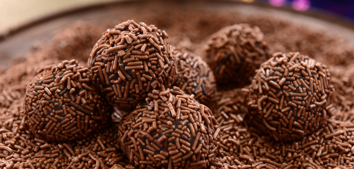 O brigadeiro é um doce típico da culinária brasileira. Feito com leite condensado, chocolate e granulado, é super comum em todos os país e é muito presente em festas de aniversário, junto com outros docinhos.