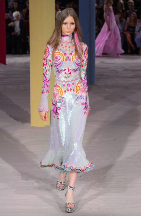 Como apareceu em desfiles das semanas de moda, para esse ano novo, vai ter muito brilho no Reiveillon! Tanto colorido quanto em prata, as roupas vão brilhar. Algumas variações de brilho aparecem com bordados coloridos lindos, como no desfile do Temperley London no LFW SS17. Check: