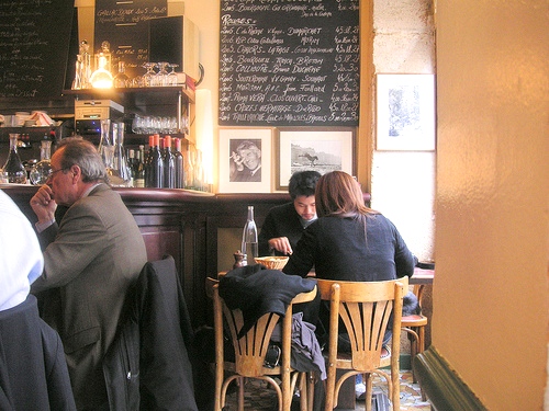 Não existe melhor lugar no mundo para se beber vinho do que Paris. A seleção dos vinhos costuma ser levada bastante a sério pelos restaurantes da cidade. Mesmo nos bistrôs mais simples, o garçom ou o proprietário sabem indicar o que combina com o quê. Nos cafés e brasseries, você encontra no mínimo um bordeaux simples, mas decente. Além de cafés e brasseries, outro estabelecimento bastante comum pelas ruas da cidade nos dias de hoje é o bar au vin, ou seja, o wine bar. Aí costuma ser o paraíso. Tem várias opções, de várias regiões, várias delas por taça.