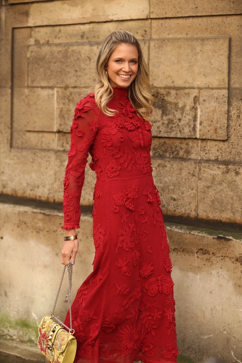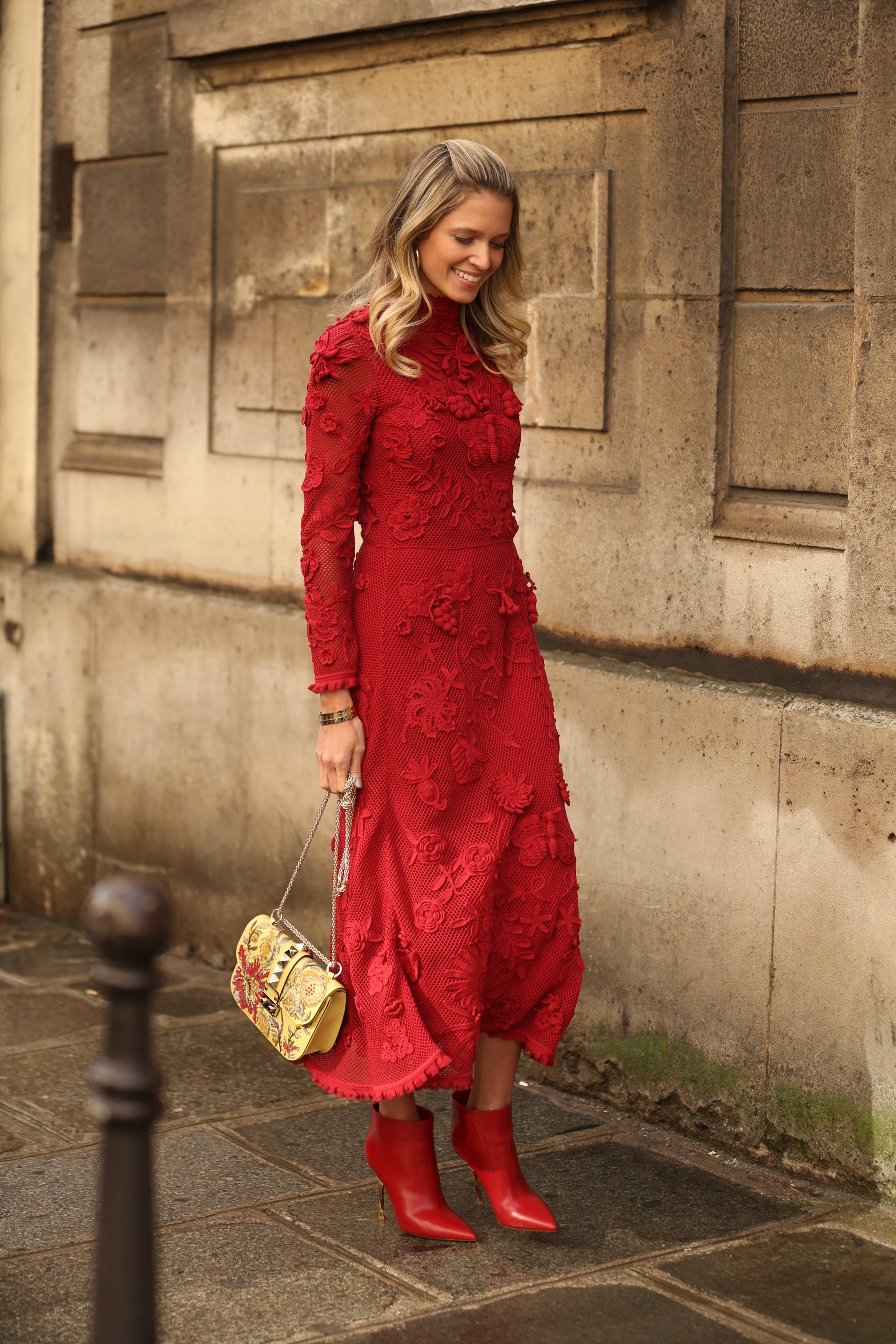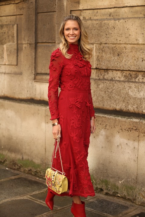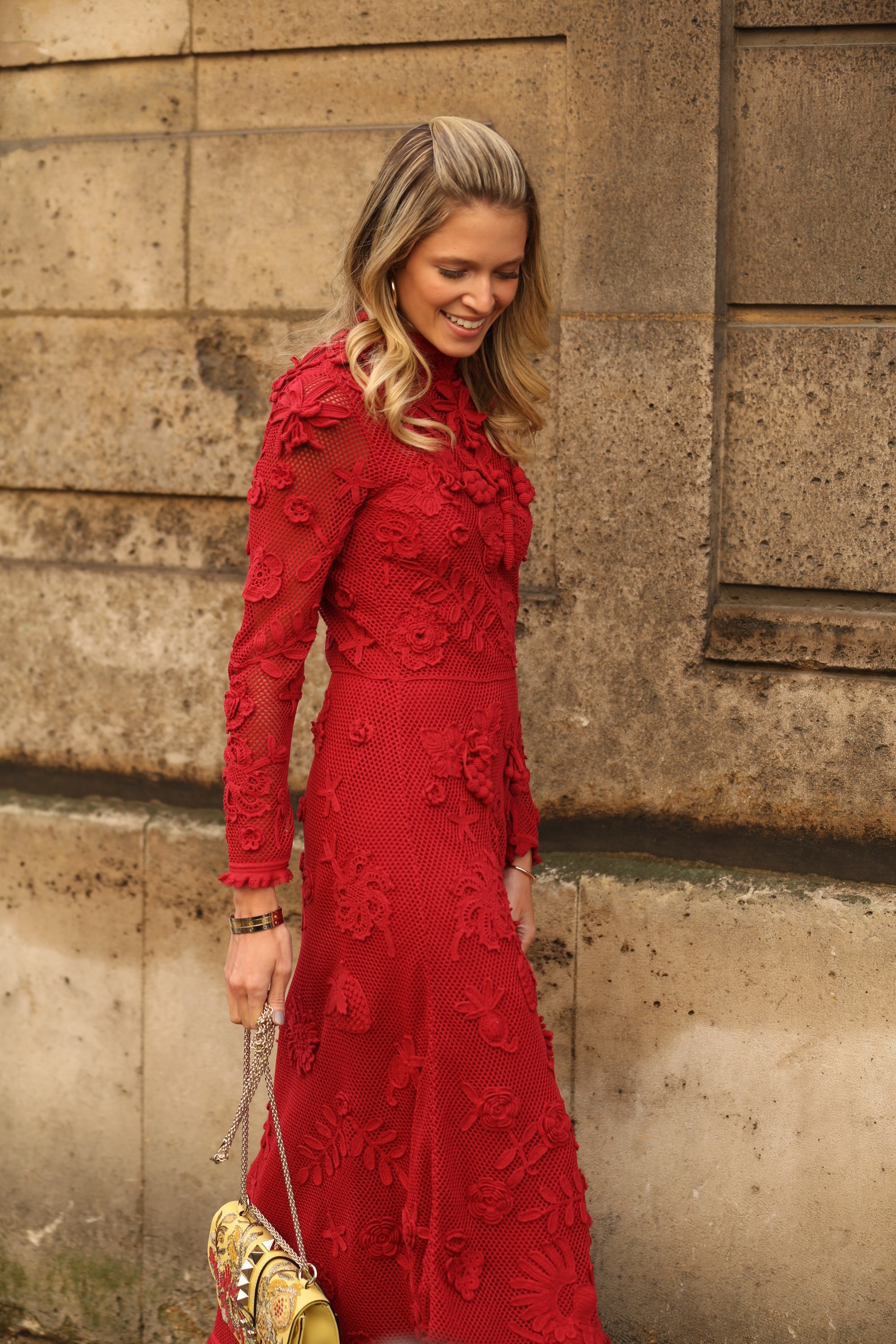 Para o dia de hoje aqui em Paris, a Helena usou esse look para ir ao desfile da Valentino e da Akris. O look foi todo Valentino: vestido, bota e bolsa.