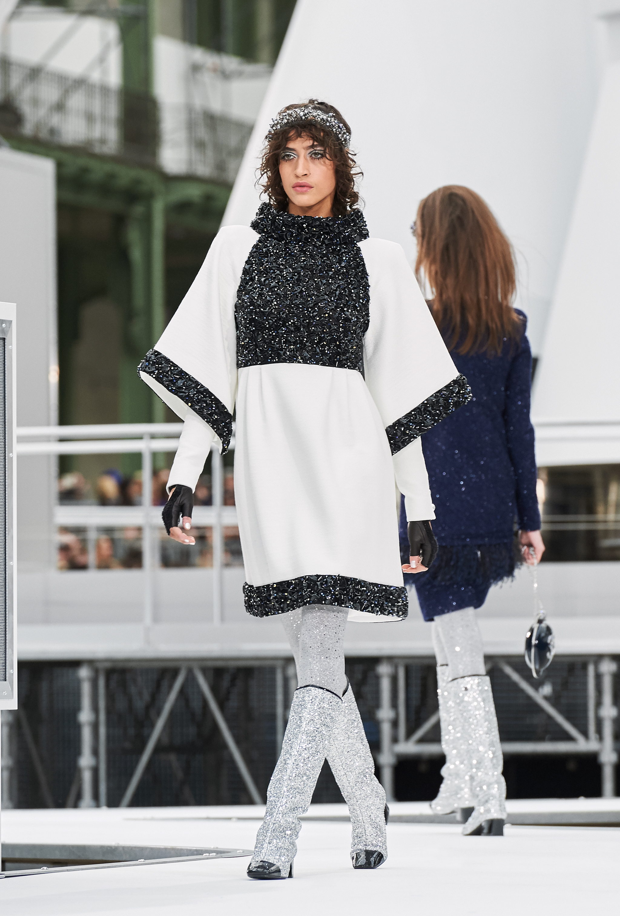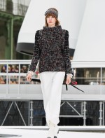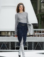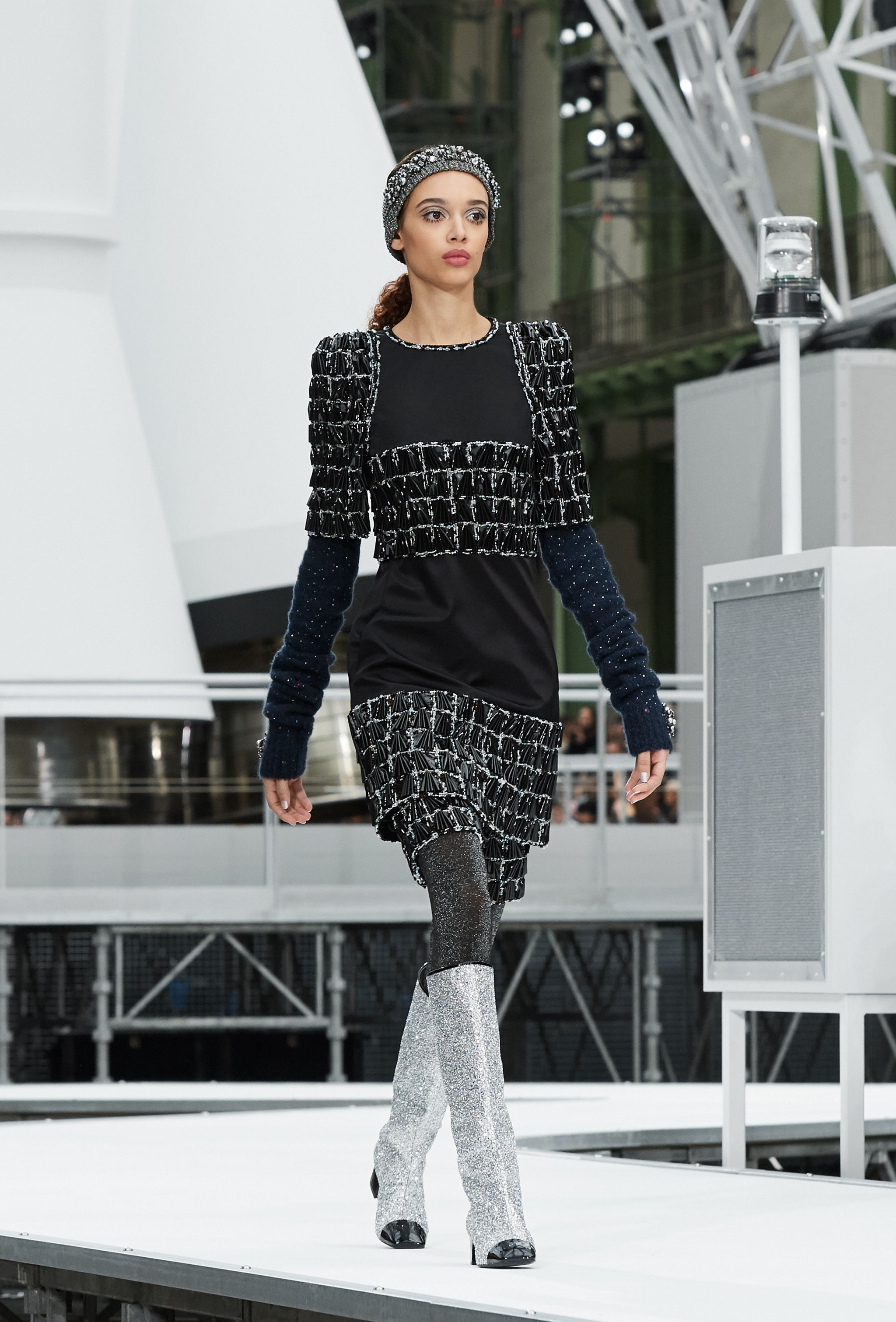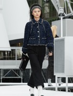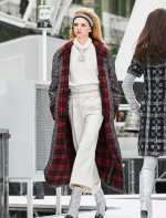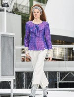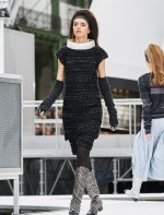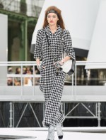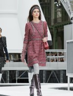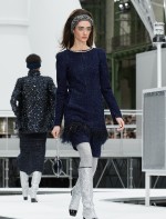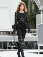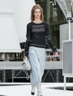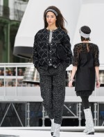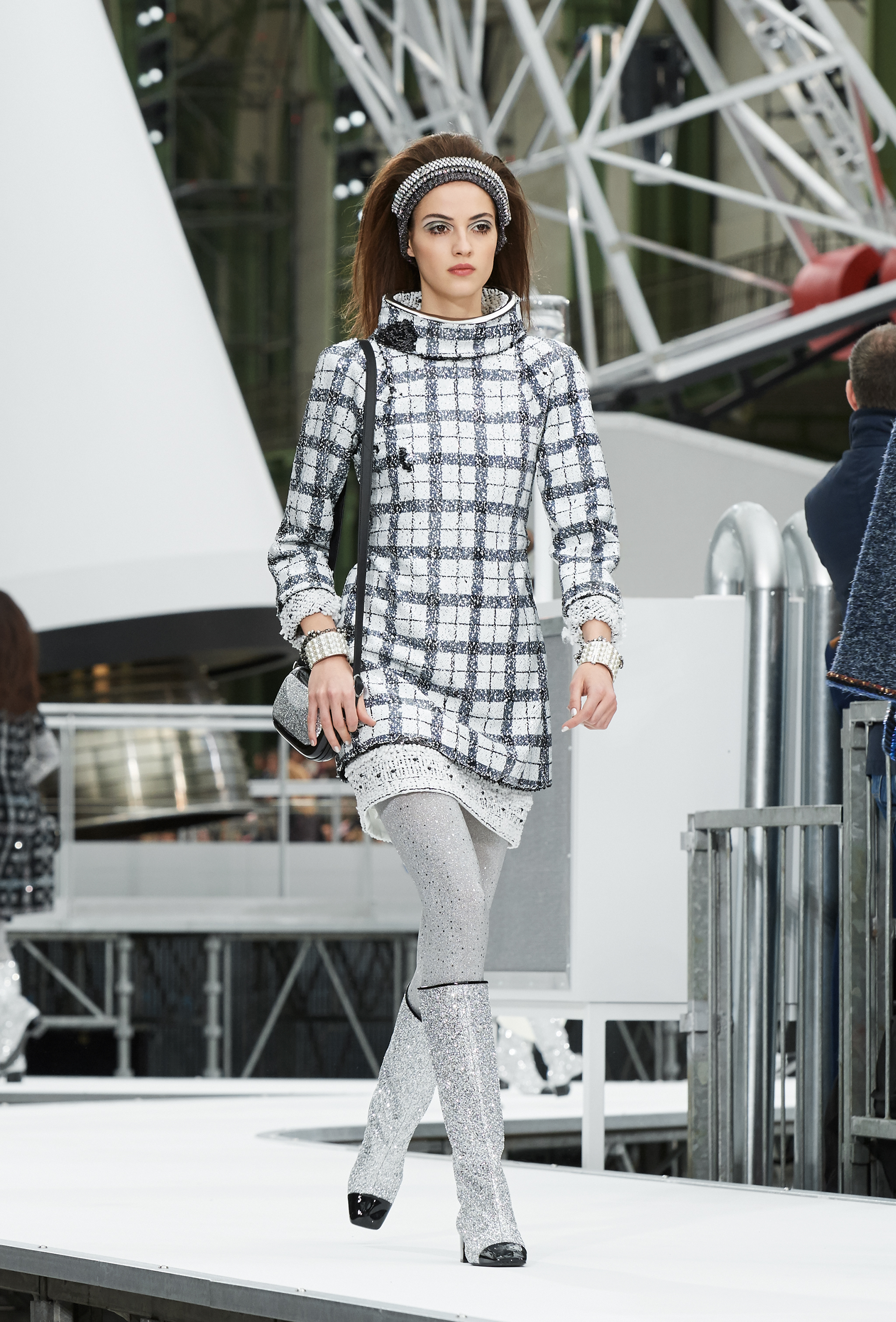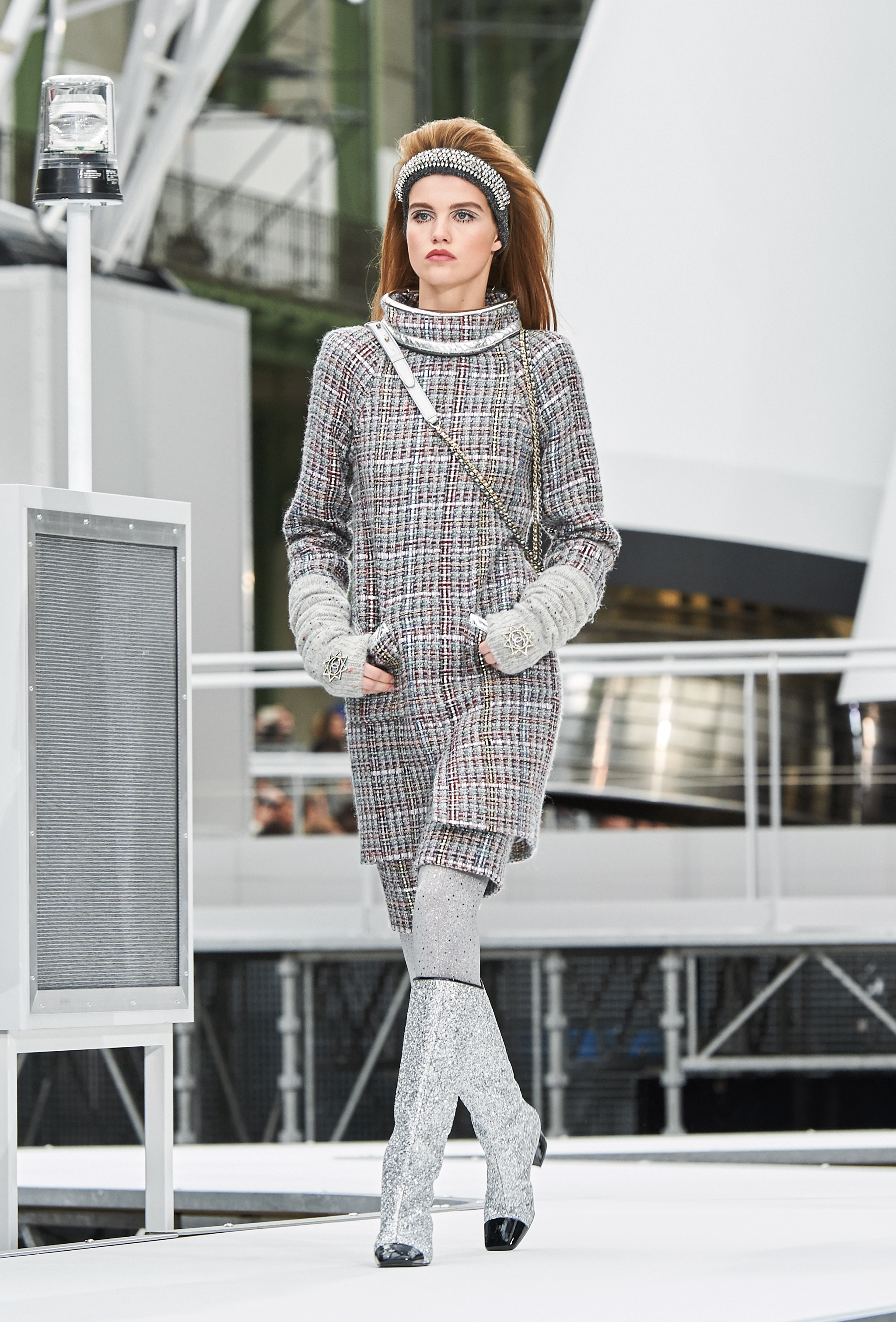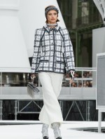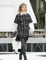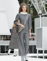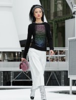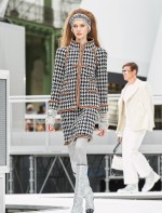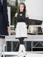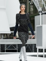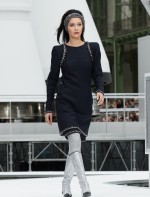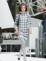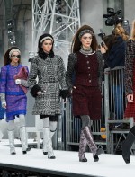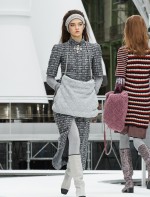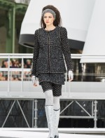Os looks da temporada foram dominados pela estética futurista dos anos 1960. Tailleurs em linhas retas dividiram a cena com bermudas, tubinhos de tricôs e macacões pied-de-coq. Destaque para as meias-calças bordadas com brilhos e as botas de glitter e looks prateados e furta-cor.
