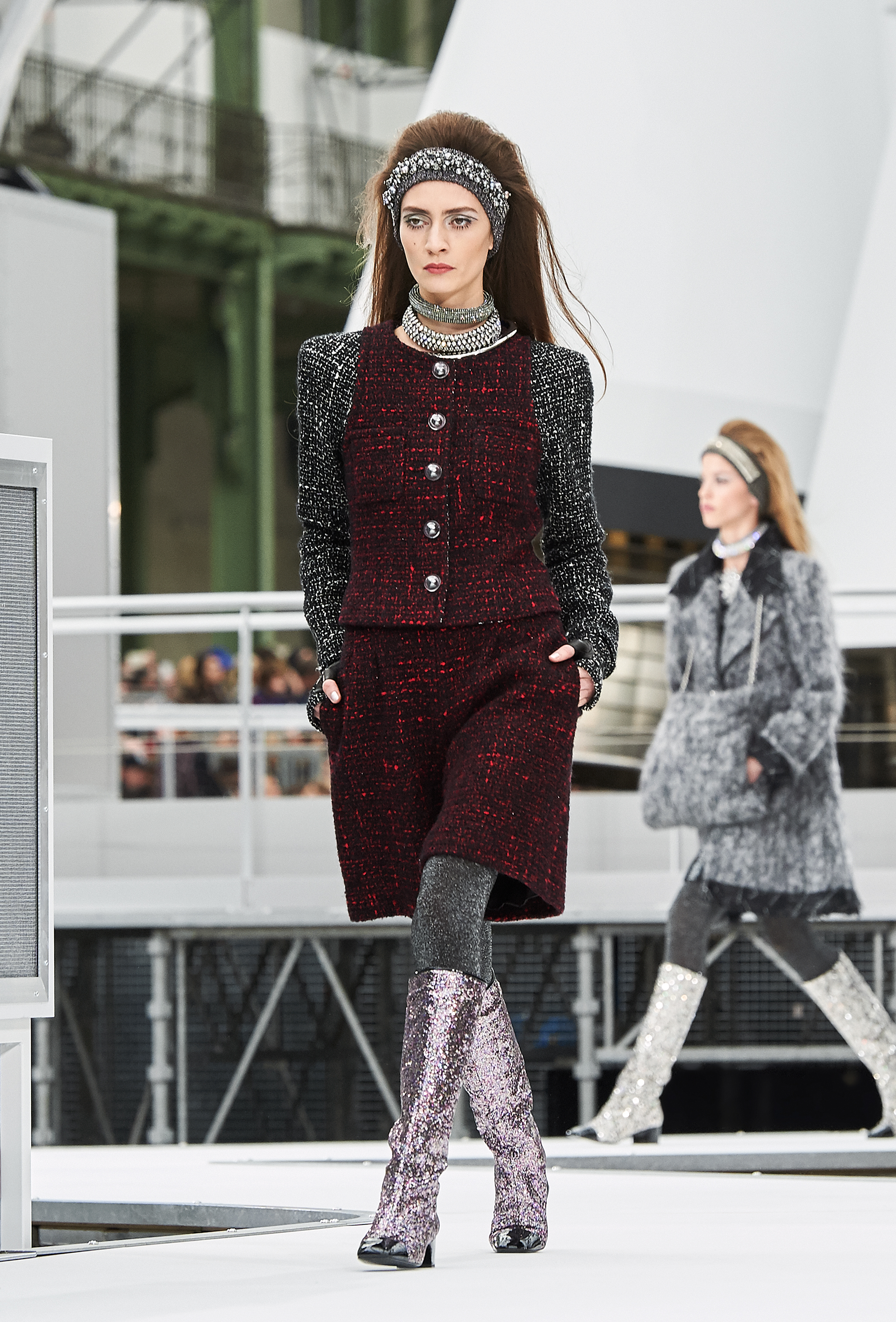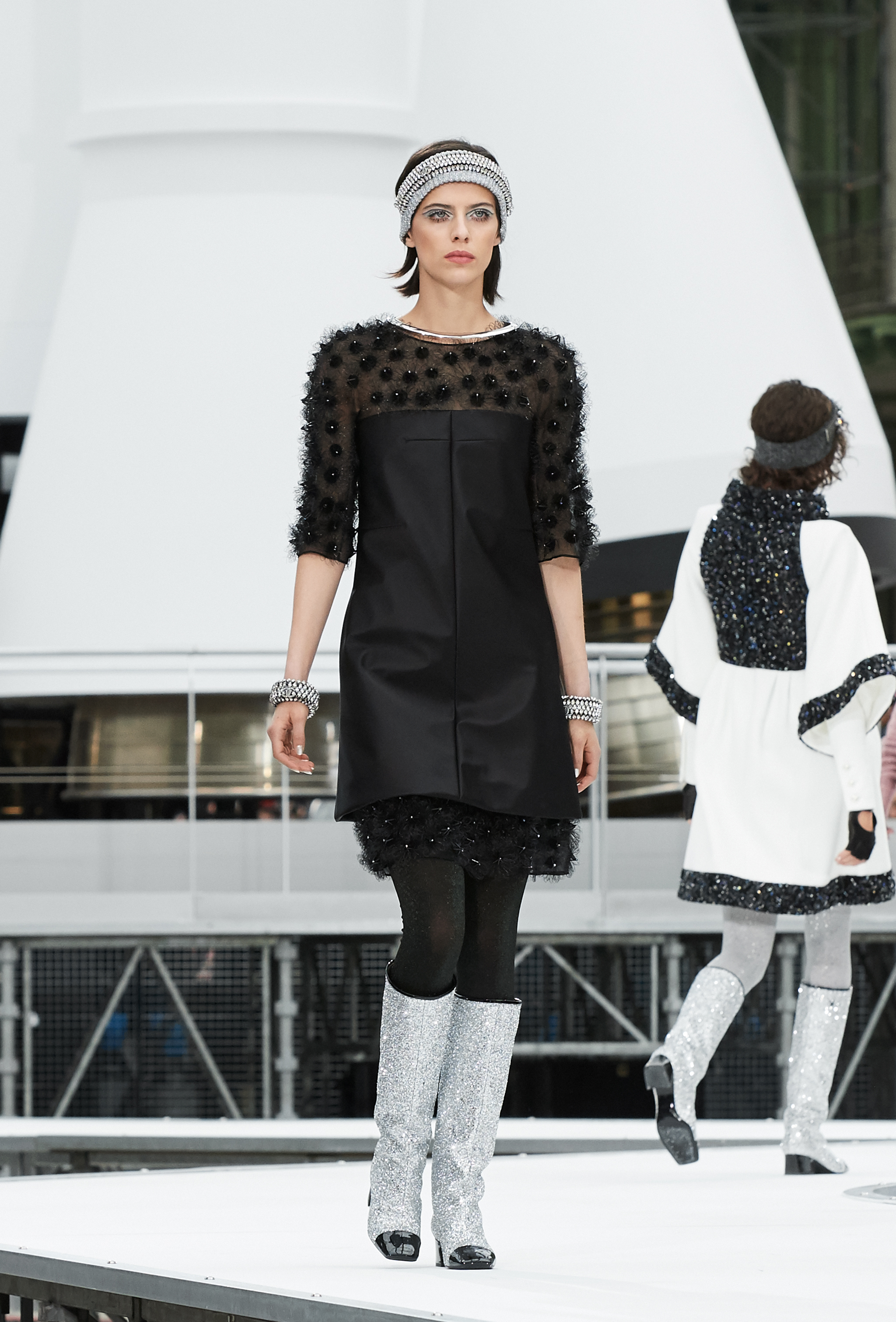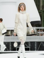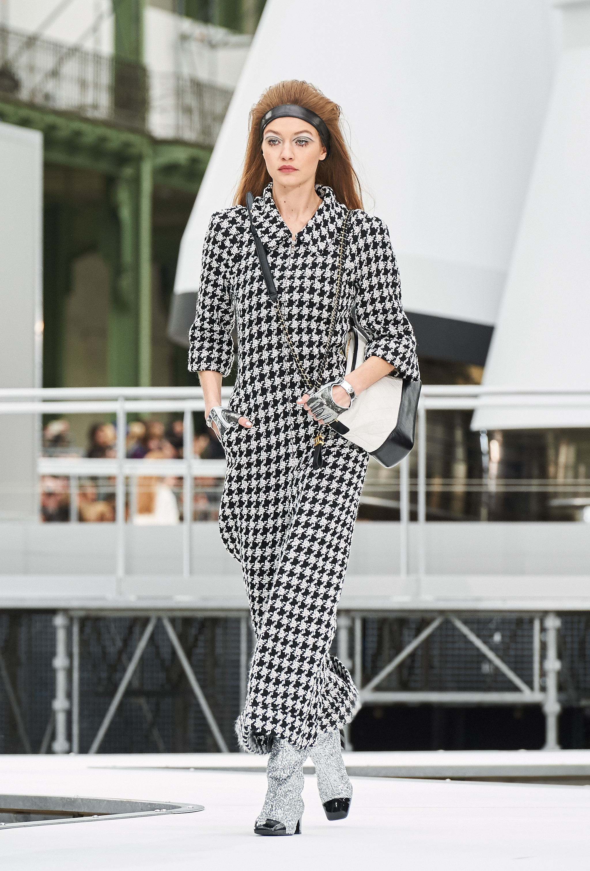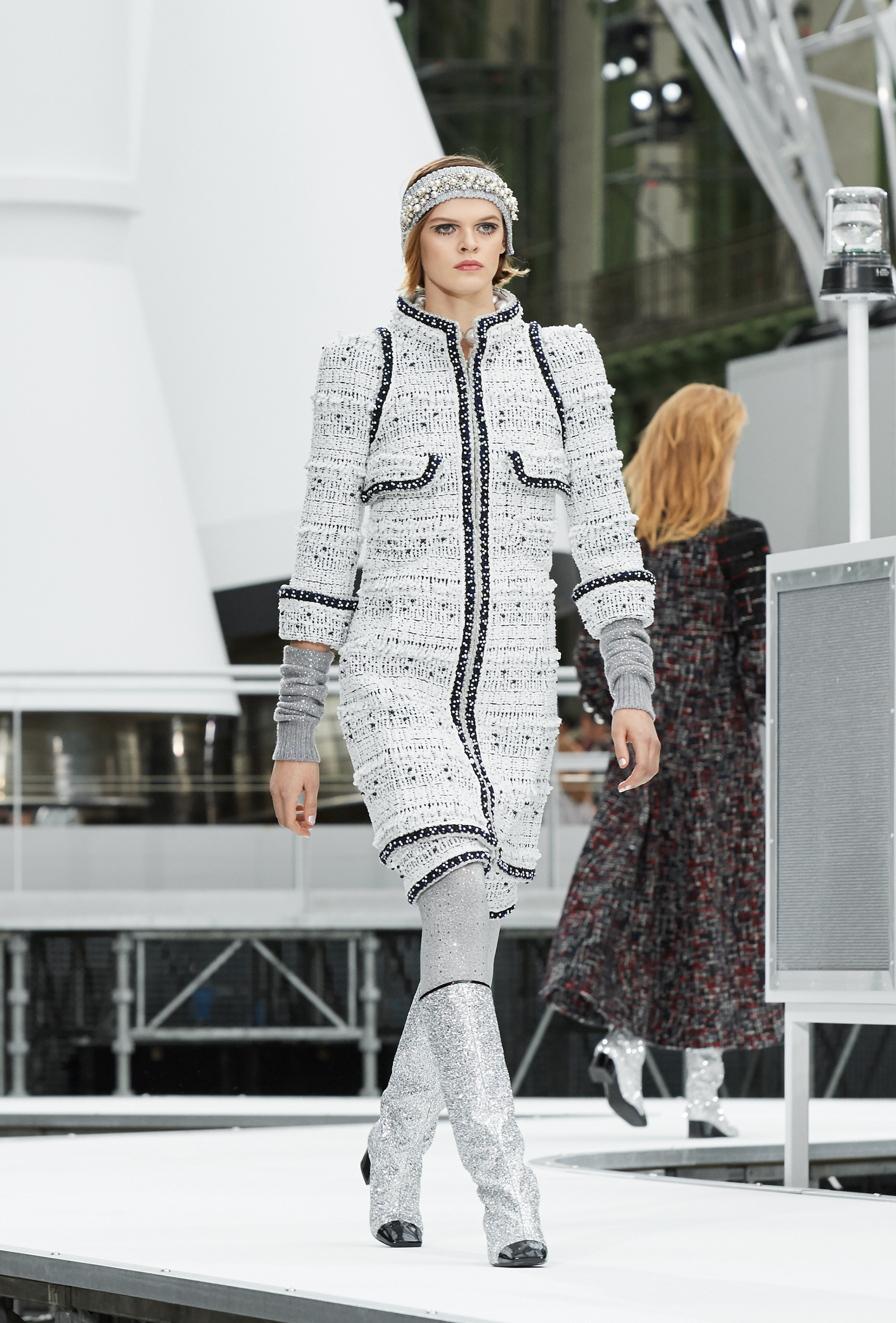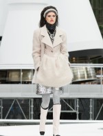 Os looks da temporada foram dominados pela estética futurista dos anos 1960. Tailleurs em linhas retas dividiram a cena com bermudas, tubinhos de tricôs e macacões pied-de-coq. Destaque para as meias-calças bordadas com brilhos e as botas de glitter e looks prateados e furta-cor.