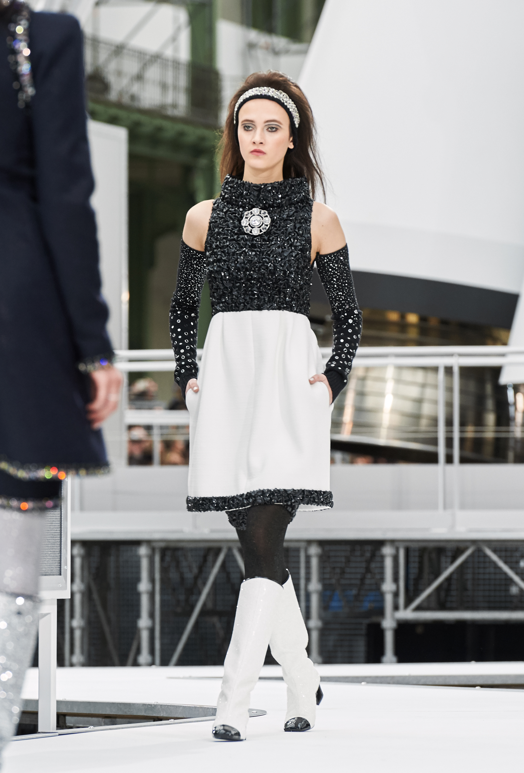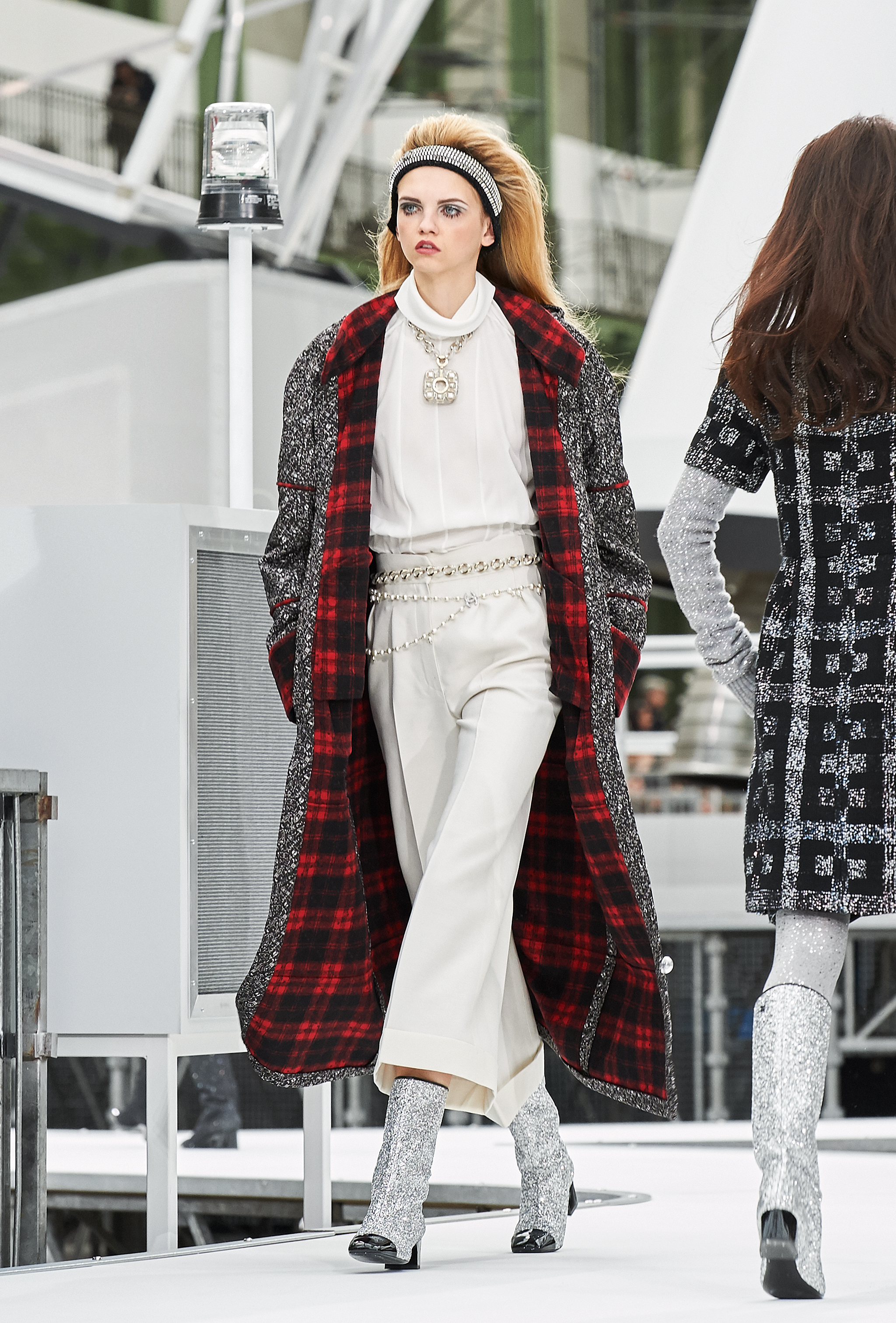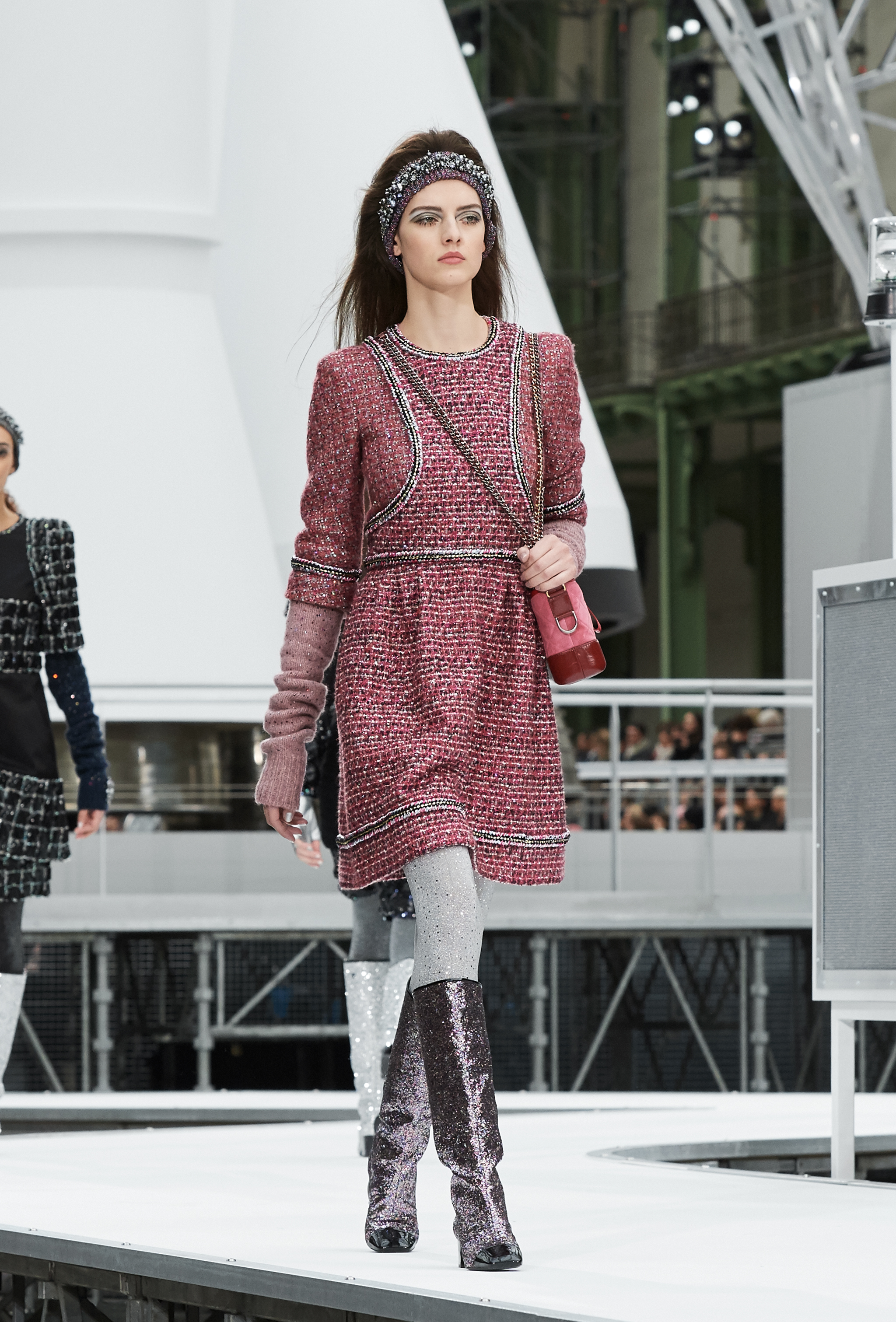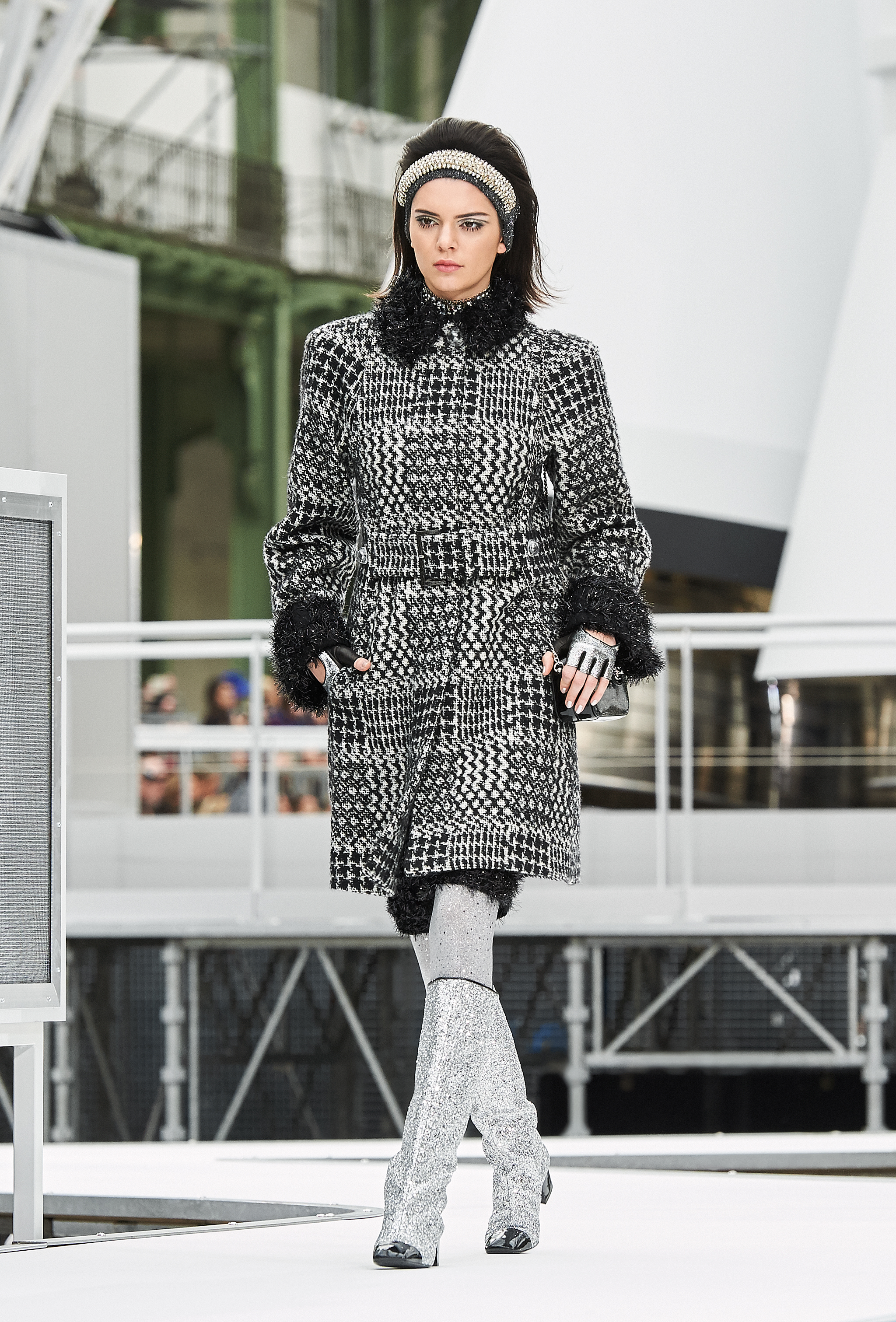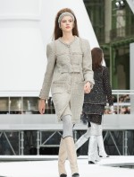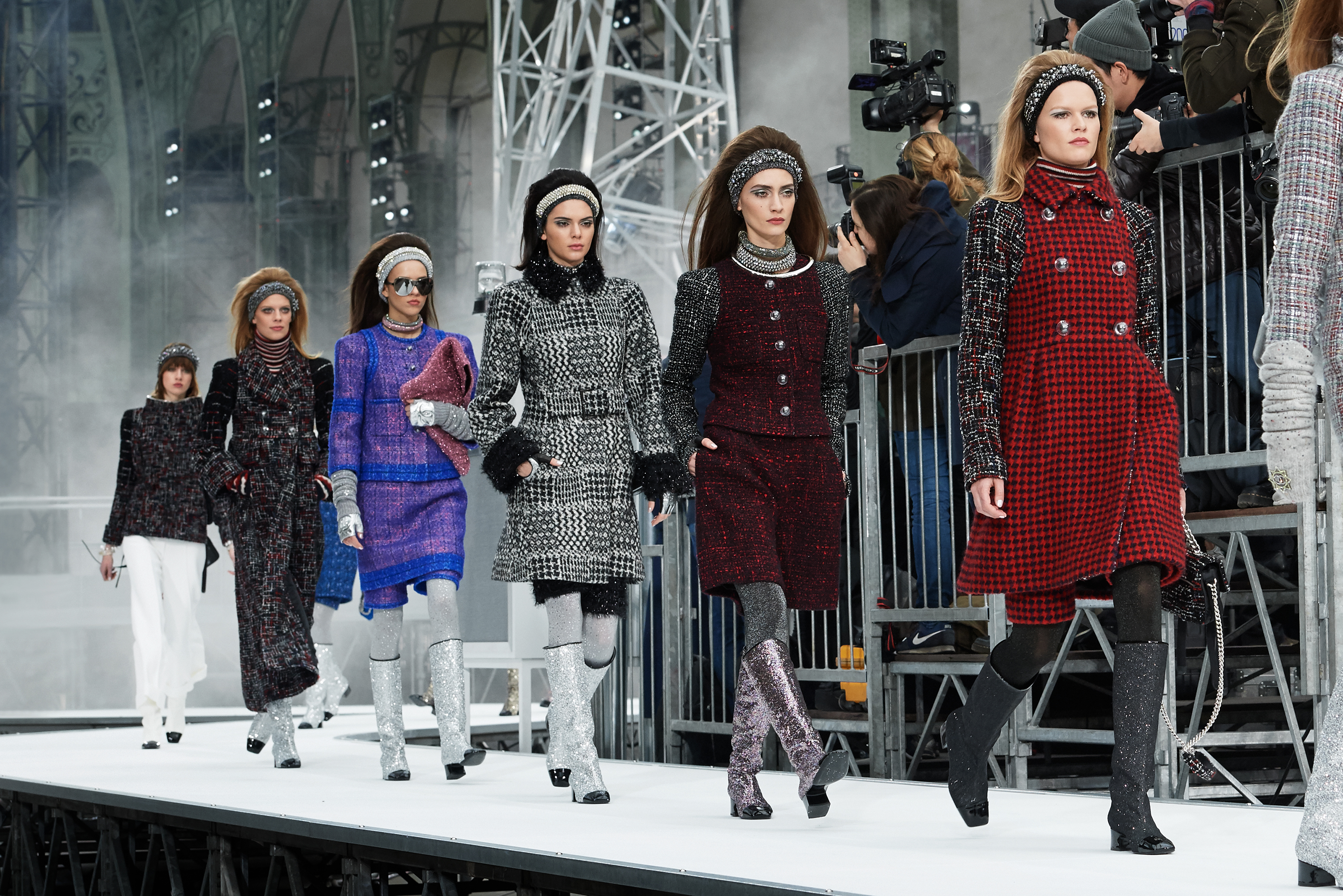 Os looks da temporada foram dominados pela estética futurista dos anos 1960. Tailleurs em linhas retas dividiram a cena com bermudas, tubinhos de tricôs e macacões pied-de-coq. Destaque para as meias-calças bordadas com brilhos e as botas de glitter e looks prateados e furta-cor.