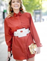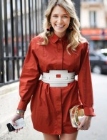Para o primeiro dia de desfiles aqui em Paris eu usei camisa e cinto Tod’s, bota de cano alto Miu Miu, clutch Charlotte Olympia e brinco Mixed.