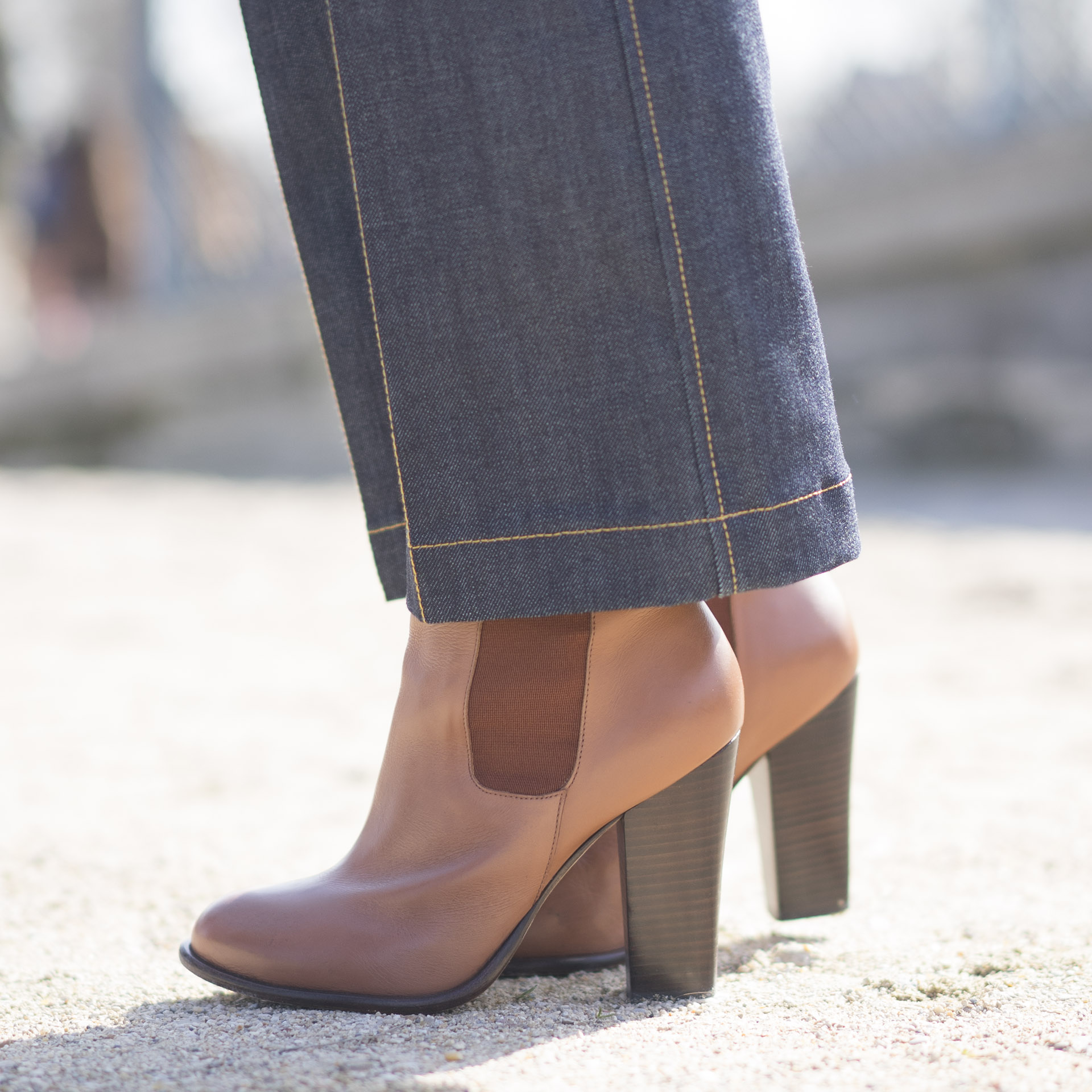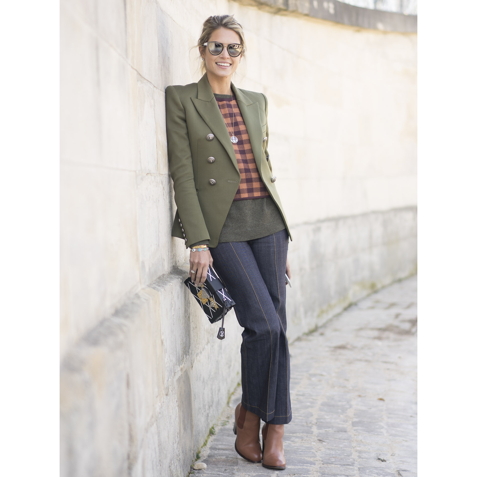 – Calça jeans e bolsa Louis Vuitton
