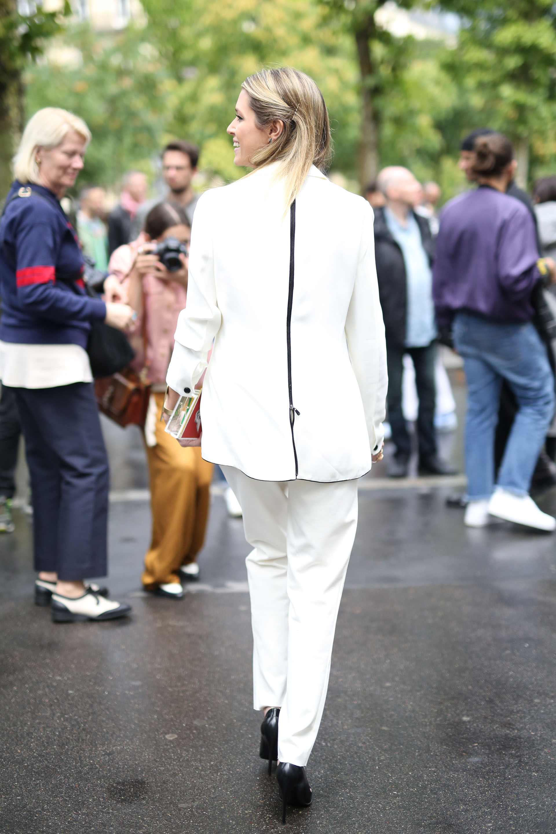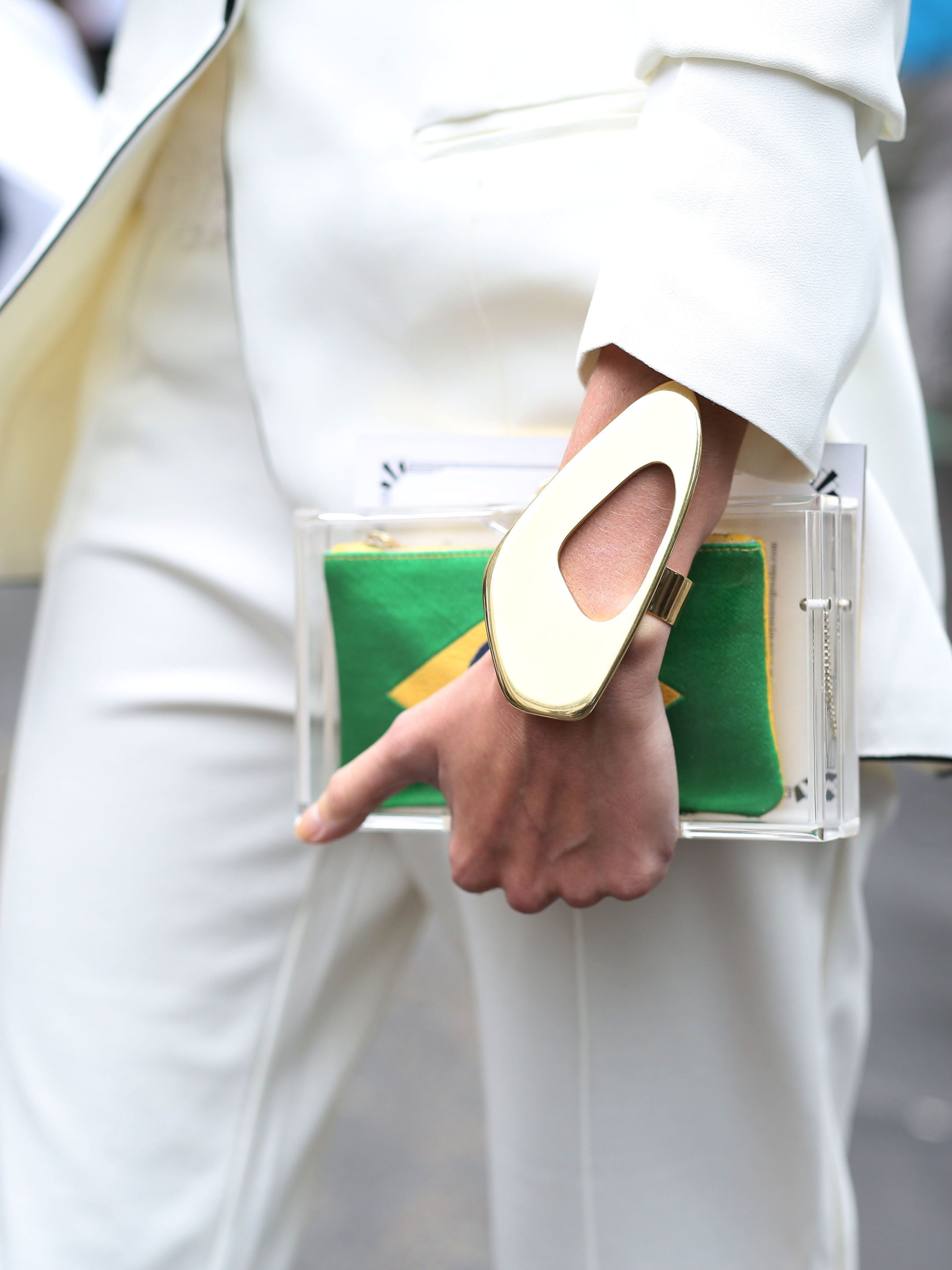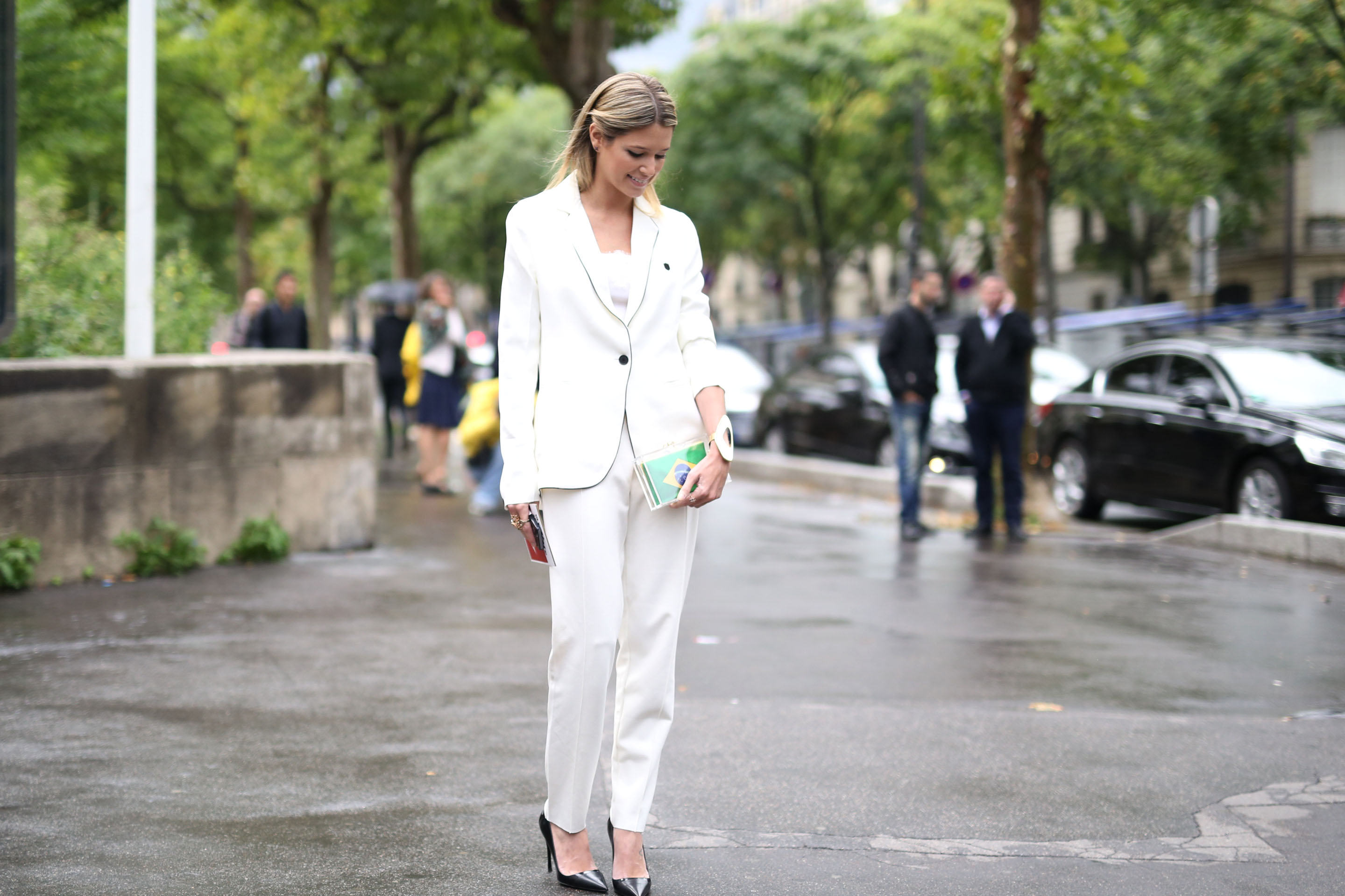 Para o desfile da Ulyanna Sergeenko, eu usei calça e blazer Osklen, regata Dolce & Gabbana, sapato Dior e clutch Charlotte Olympia!