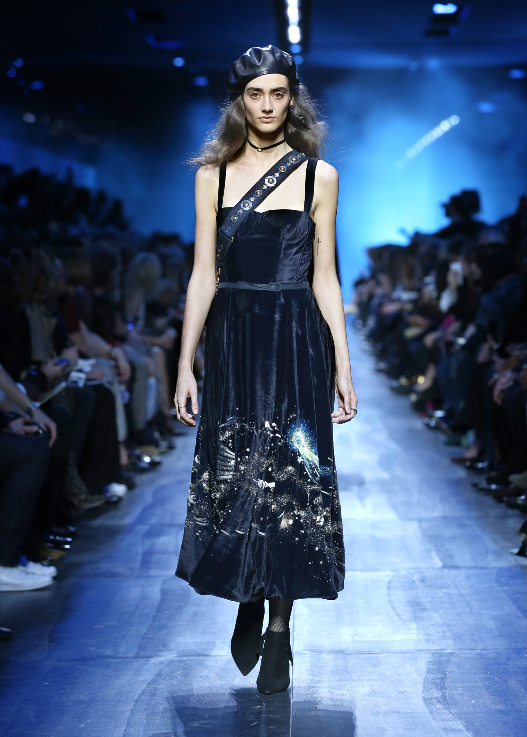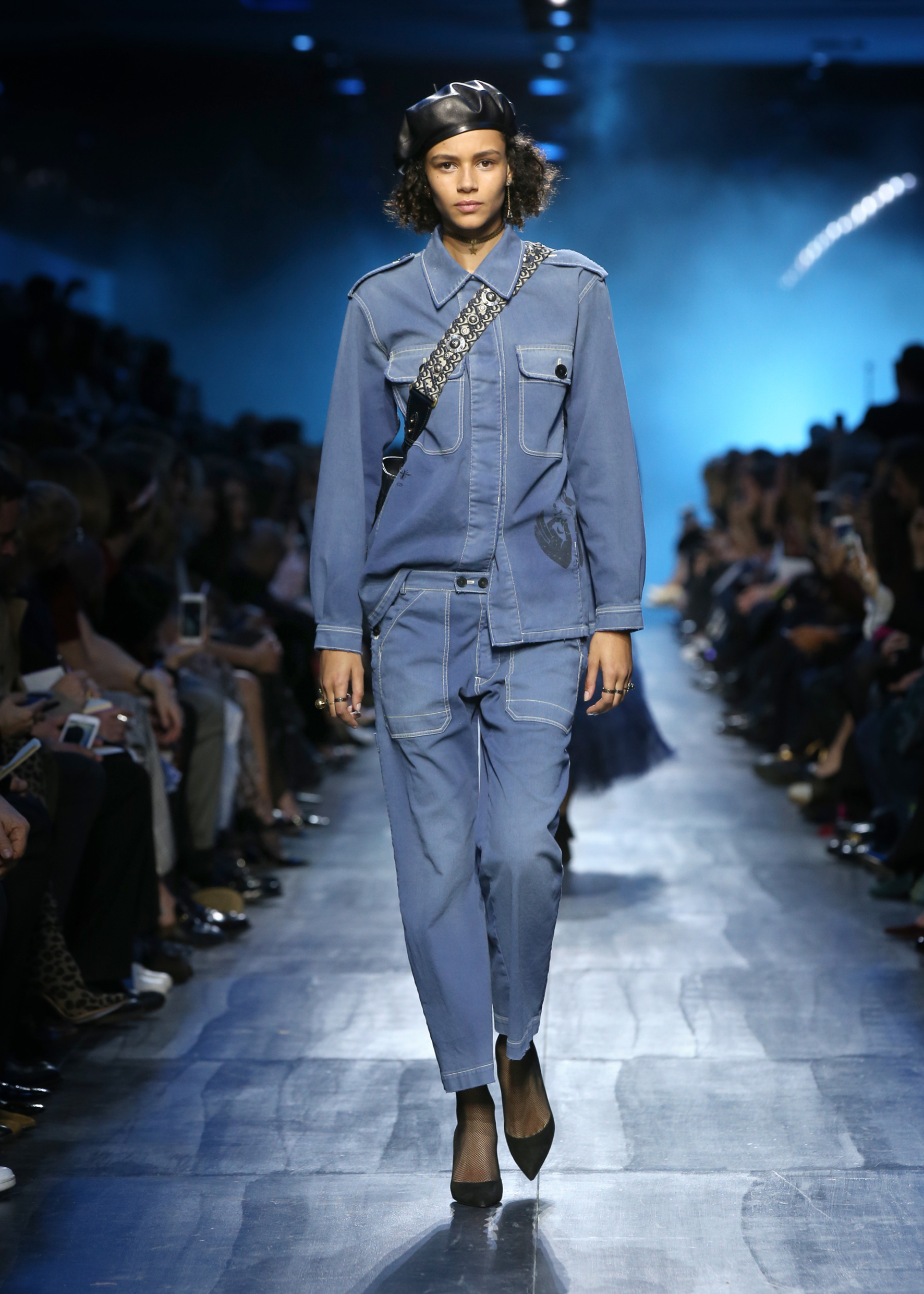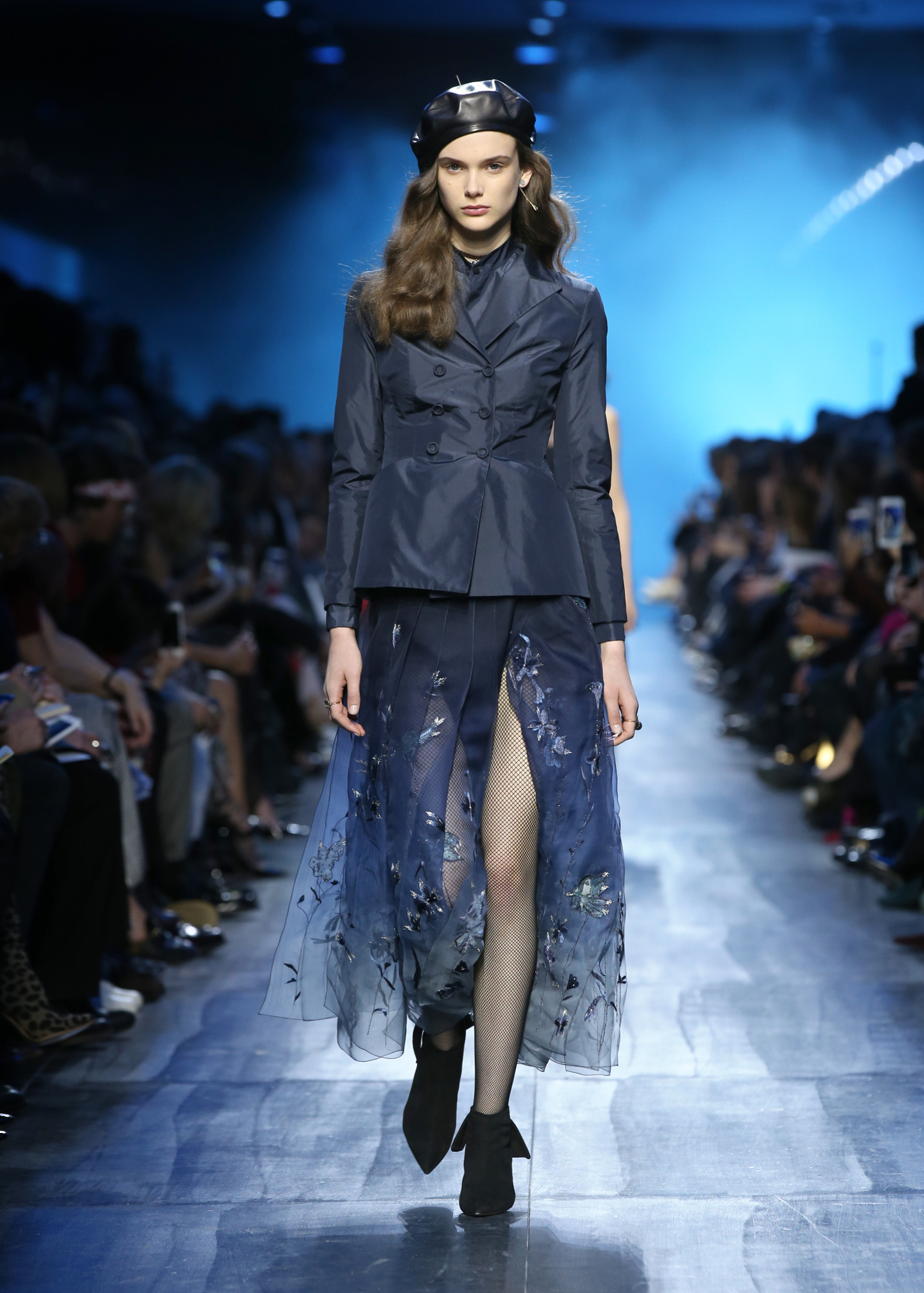 A diretora artística Maria Grazia Chiuri mostrou nesta coleção jaquetas marinheiro com cinto vestidas por cima de calças capri e vestidos, saias e tops plissados de tafetá. Além de, combinar peças de tricô azul encorpado com saias transparentes de chiffon e também apresentou vestidos de veludo azul escuro e terninhos, calças de sarja folgadas, blue jeans e macacões.