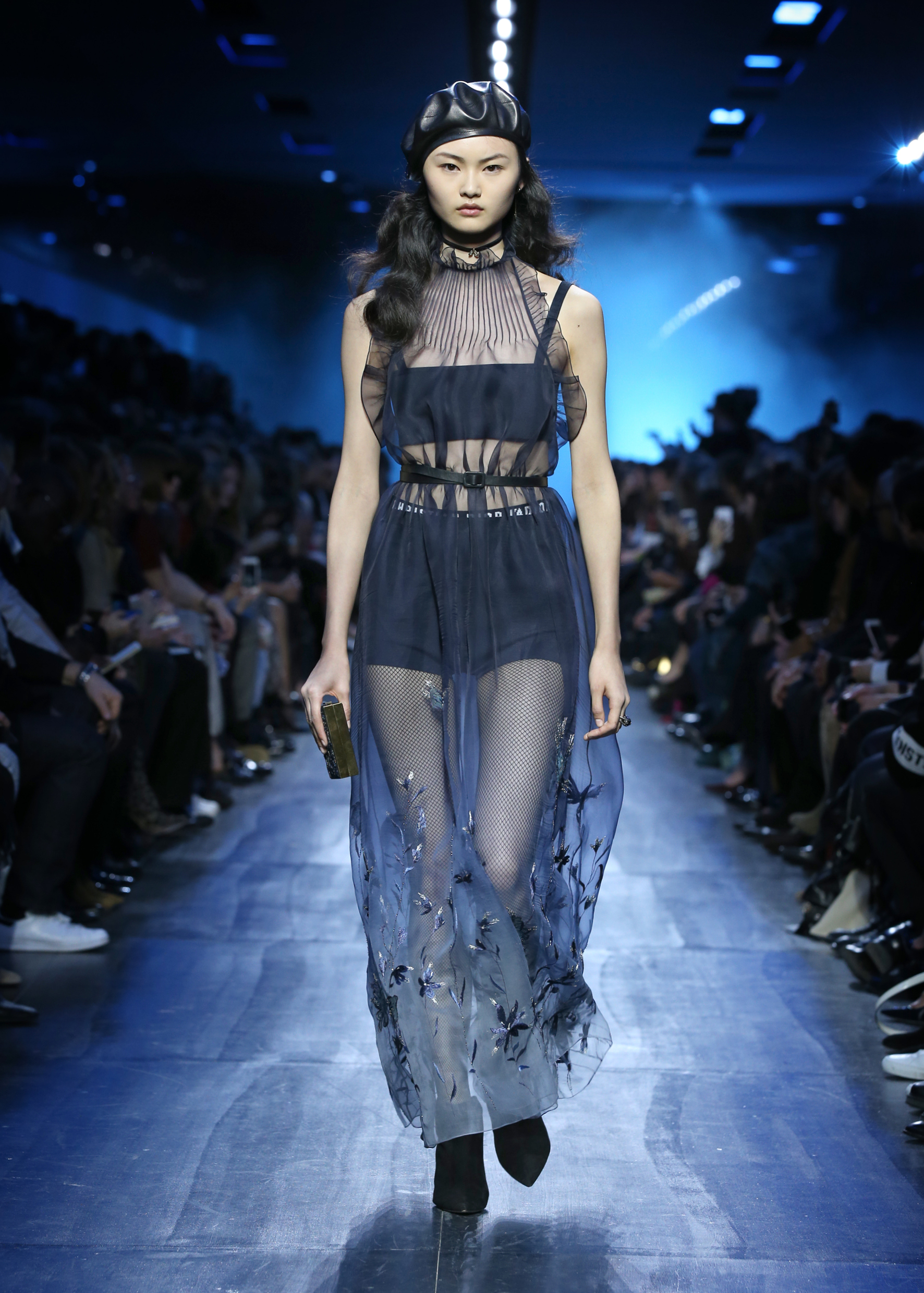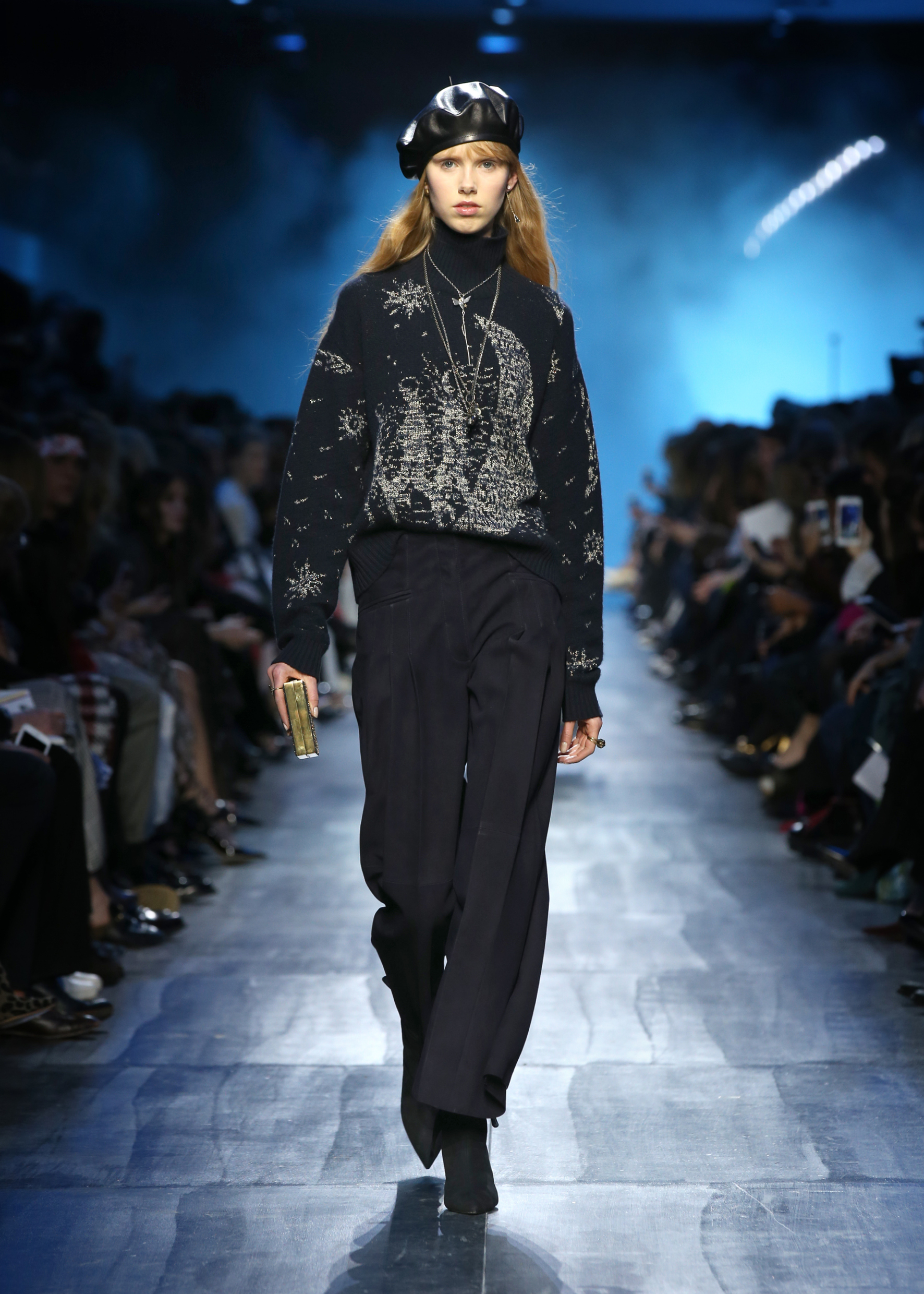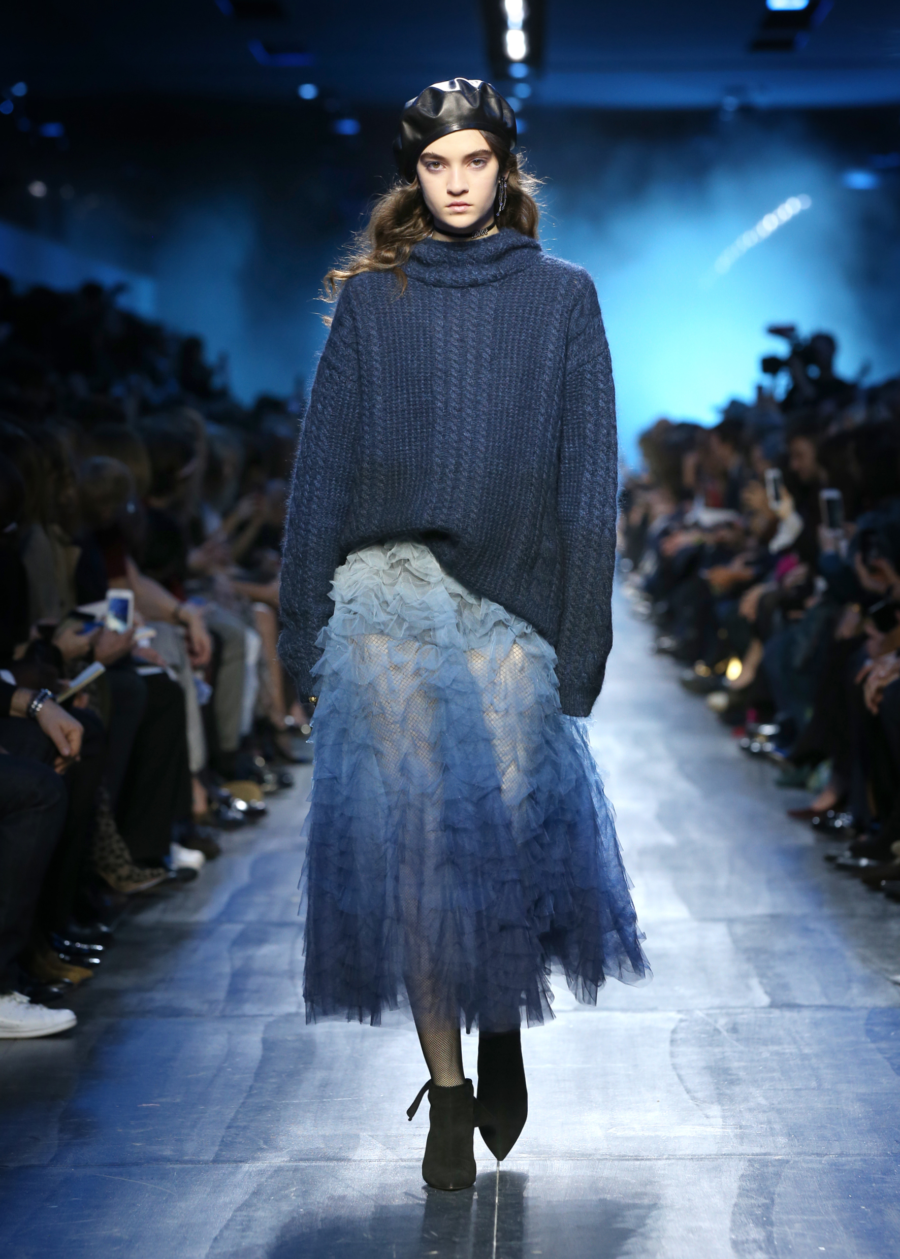 A diretora artística Maria Grazia Chiuri mostrou nesta coleção jaquetas marinheiro com cinto vestidas por cima de calças capri e vestidos, saias e tops plissados de tafetá. Além de, combinar peças de tricô azul encorpado com saias transparentes de chiffon e também apresentou vestidos de veludo azul escuro e terninhos, calças de sarja folgadas, blue jeans e macacões.