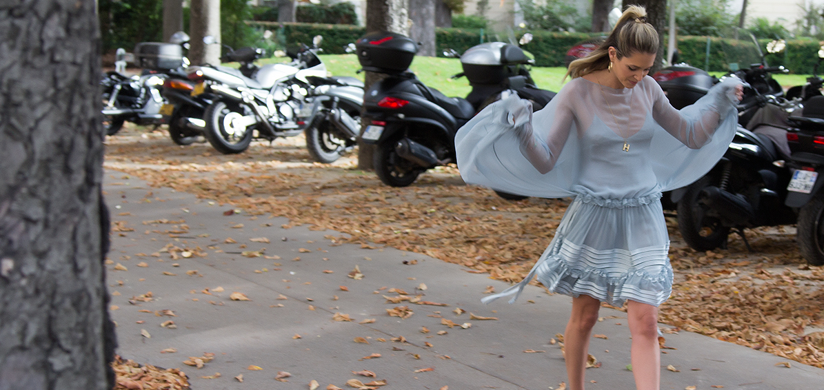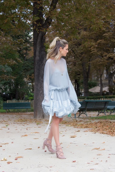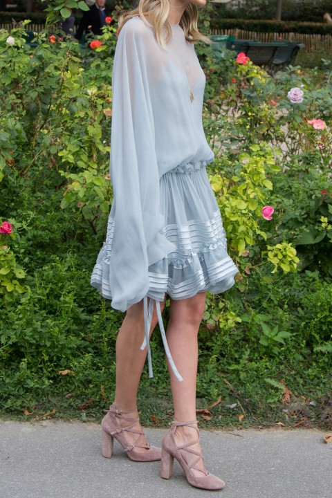 No segundo dia de Paris, a Helena foi ao desfile da Chloé no Grand Palais usando um look total deles com sapato Gianvito Rossi