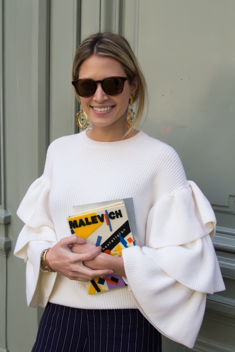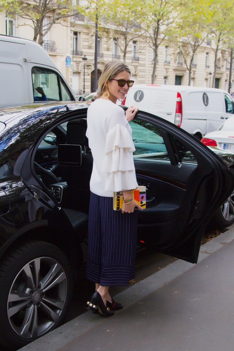 O segundo look da HB para a PFW foi para assistir ao desfile da Roland Mouret. E no desfile ela usou: