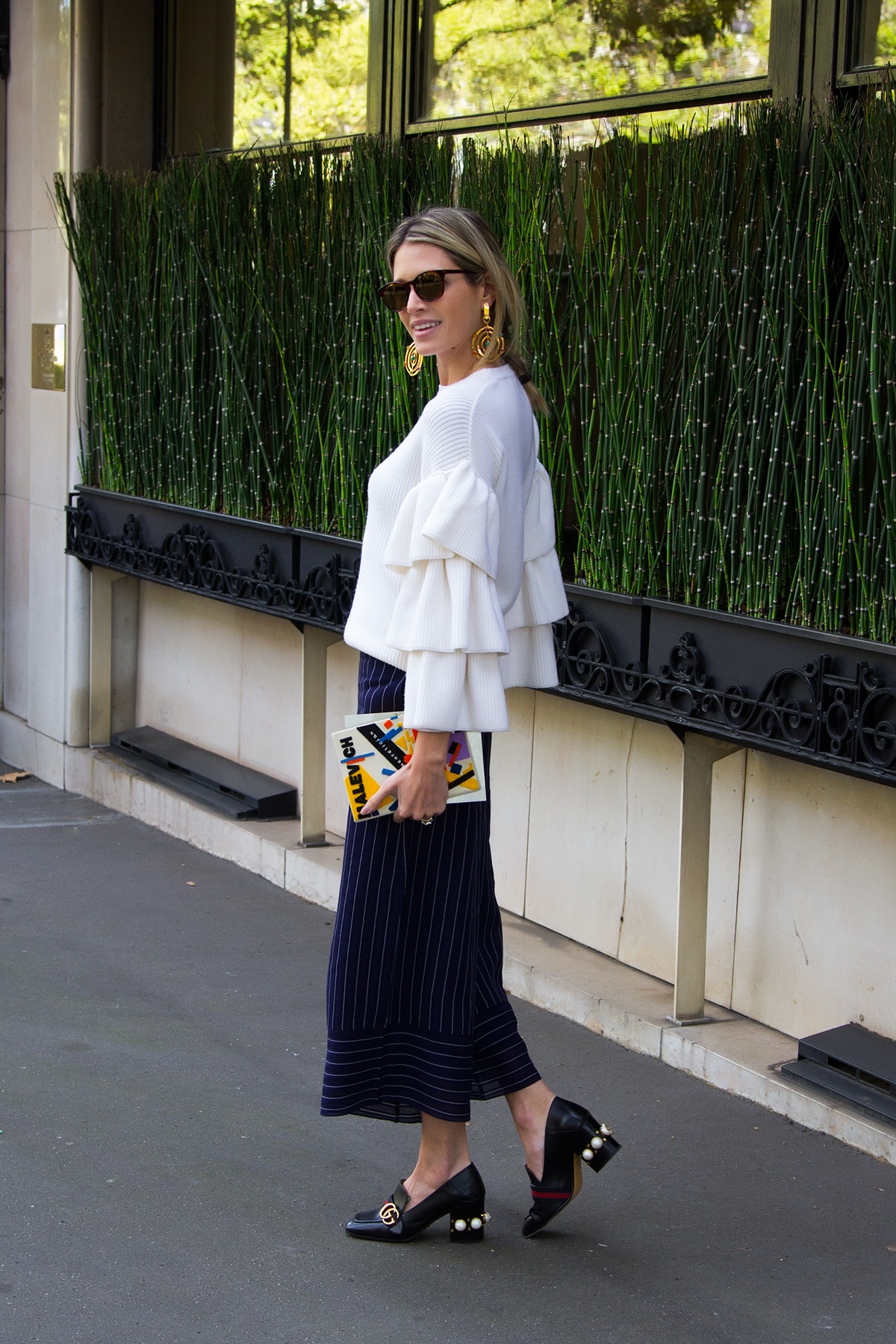 O segundo look da HB para a PFW foi para assistir ao desfile da Roland Mouret. E no desfile ela usou: