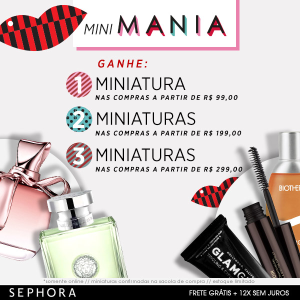 Você pode ganhar até 3 miniaturas de acordo com o valor da compra! Quem não ama ganhar essas miniaturas fofas? Pode ser um perfume, um produto da Biotherm e outras mil coisas…vale a pena!