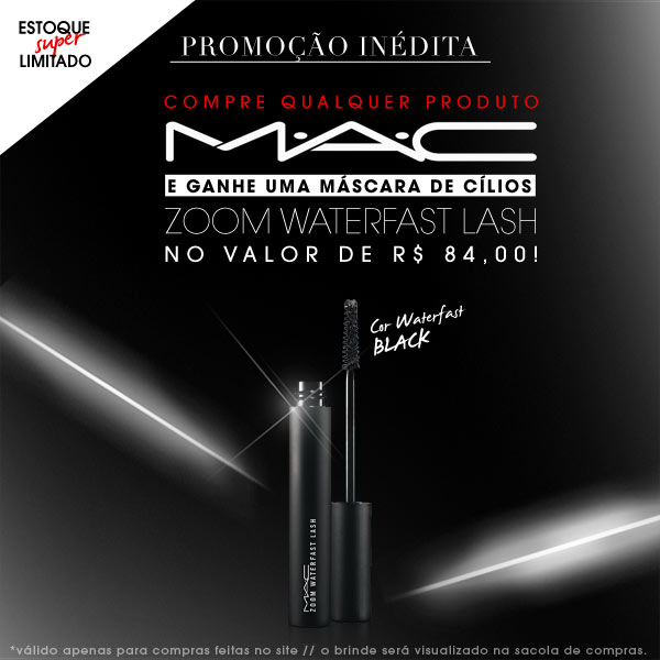 Quem não gosta de promoções especiais? Pois bem, para começar o mês de abril em grande estilo, nada melhor que fazer compras e ainda levar para casa um brinde especial, certo? No site da Sephora Brasil, a partir de hoje e até quarta-feira (ou enquanto durarem os estoques!), a M.A.C, pela primeira vez, está fazendo uma ação na qual as clientes que comprarem qualquer produto da marca vão levar a máscara para cílios Zoom Waterfast Lash de brinde. Não é o máximo? Tá esperando o que para garantir a sua? Corra!