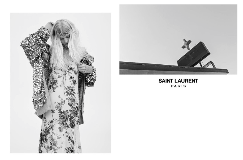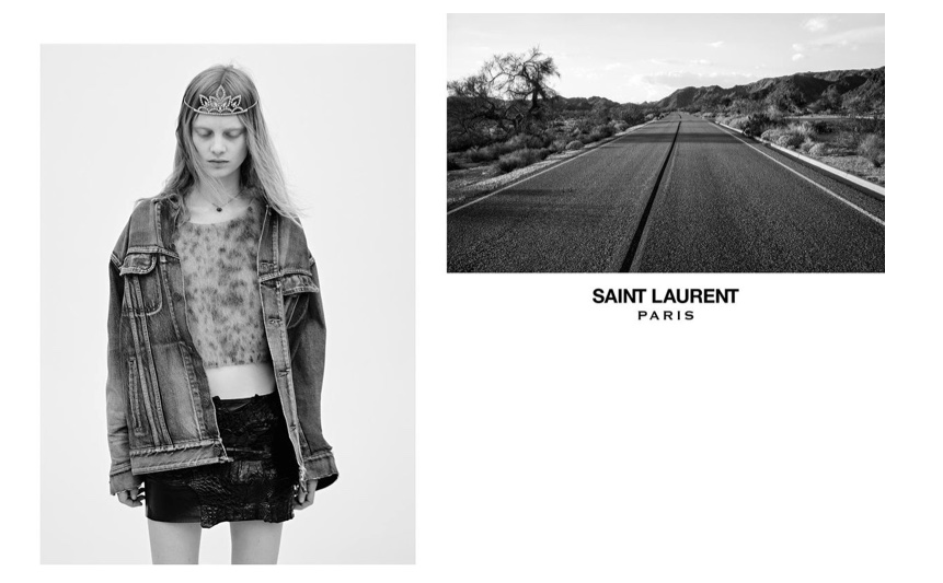 O diretor criativo da Saint Laurent, Hedi Slimane, acaba de divulgar as imagens de sua campanha spring-summer 2016. As modelos Signe Lund e Steffi Soede aparecem em mini vestidinhos e coroas metálicas, tudo em P&B.