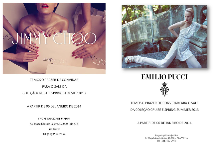 Sale Time! Publicado em 12/01/2014 Tags: jimmy choo, pucci, sale, shooping cidade jardim 1 comentário
