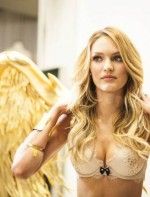 Dá só uma espiadinha em uma das modelos mais esperadas do desfile, a Candice Swanepoel, fazendo sua prova de roupa e que sem querer caiu na internet! Parece ser do primeiro tema “Golden Angels”, né?