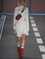 A coleção repleta de parkas utilitárias combinadas a microssaias e vestidinhos sem compromisso estampados com símbolos estilizados da bandeira americana.