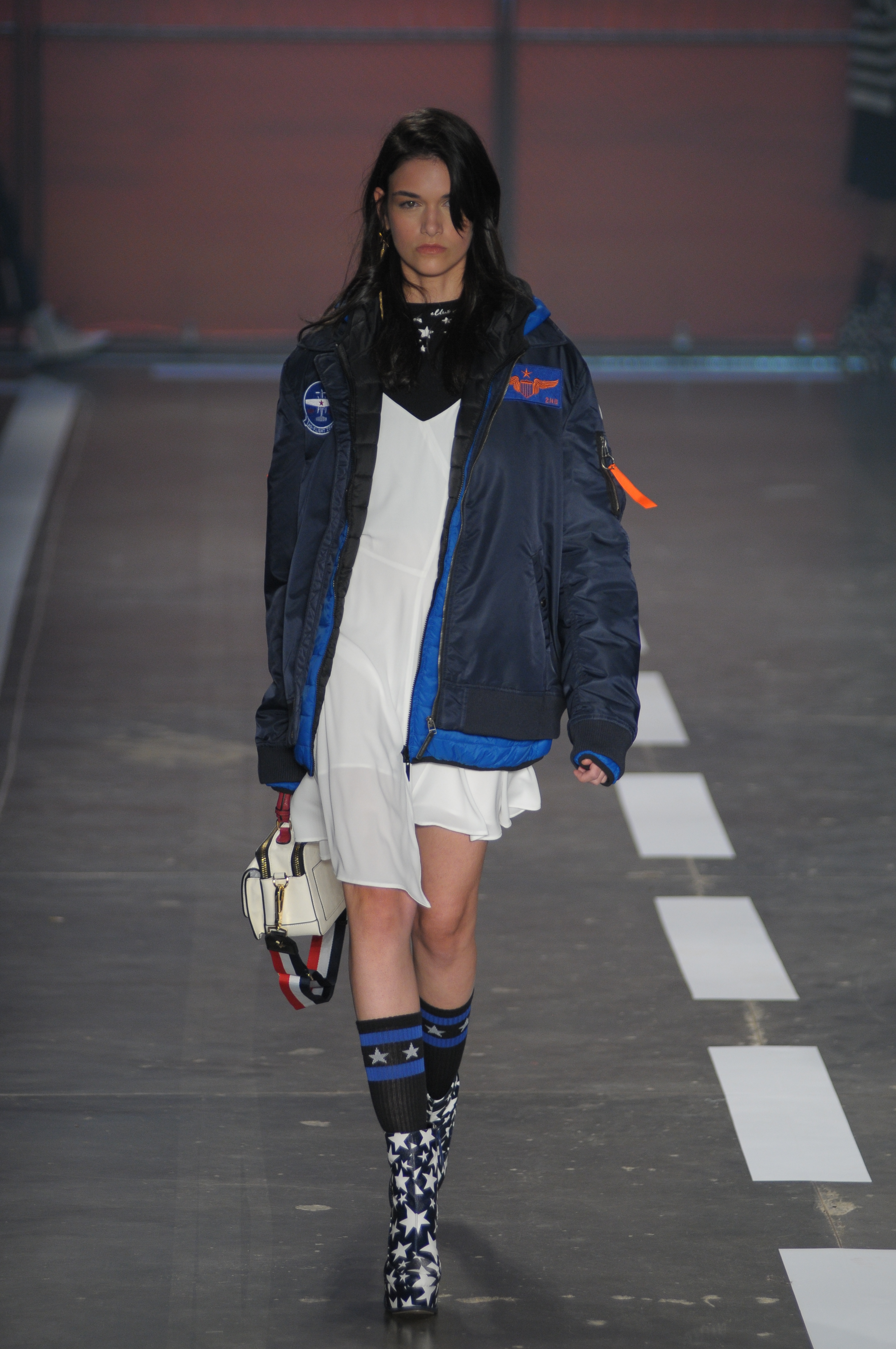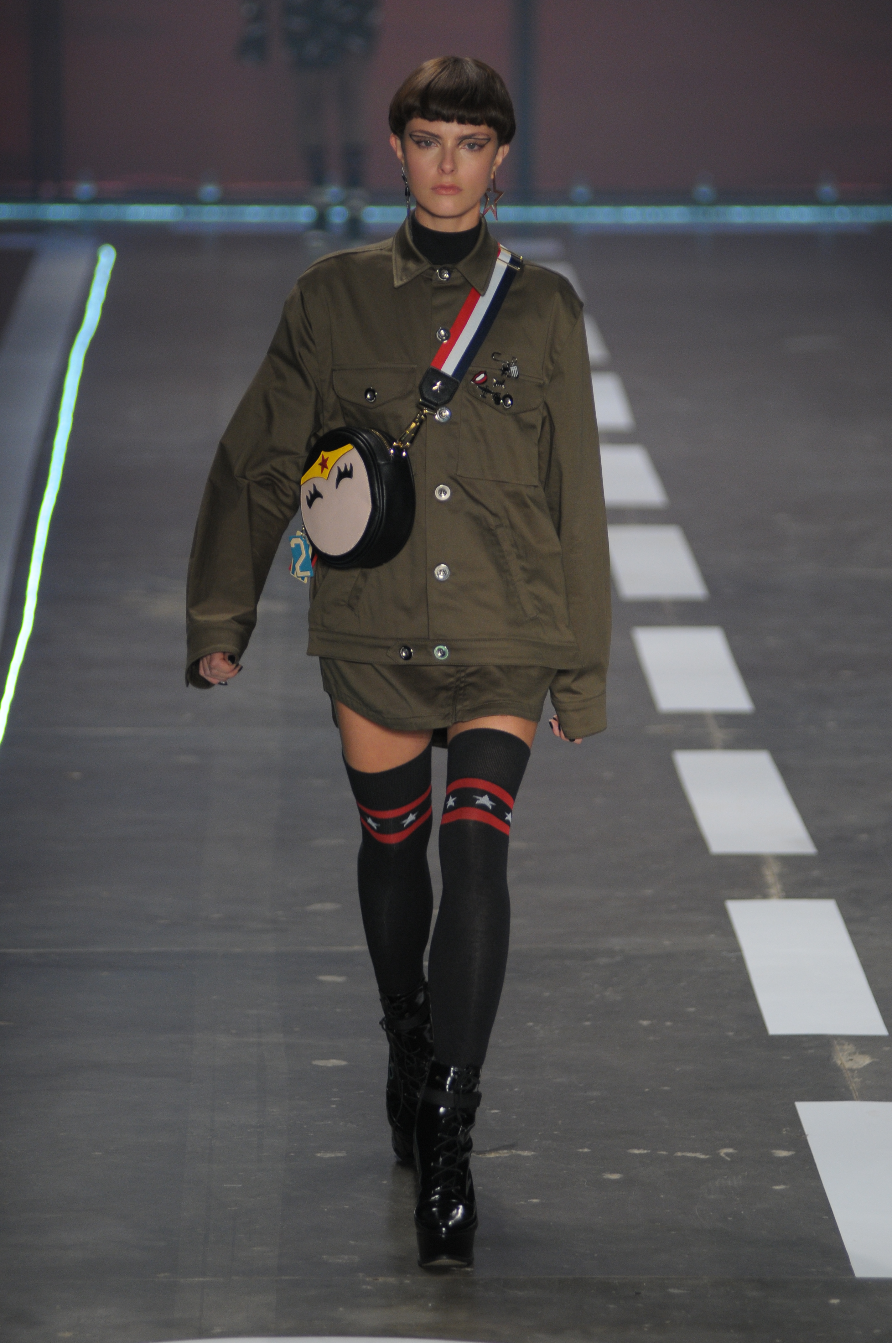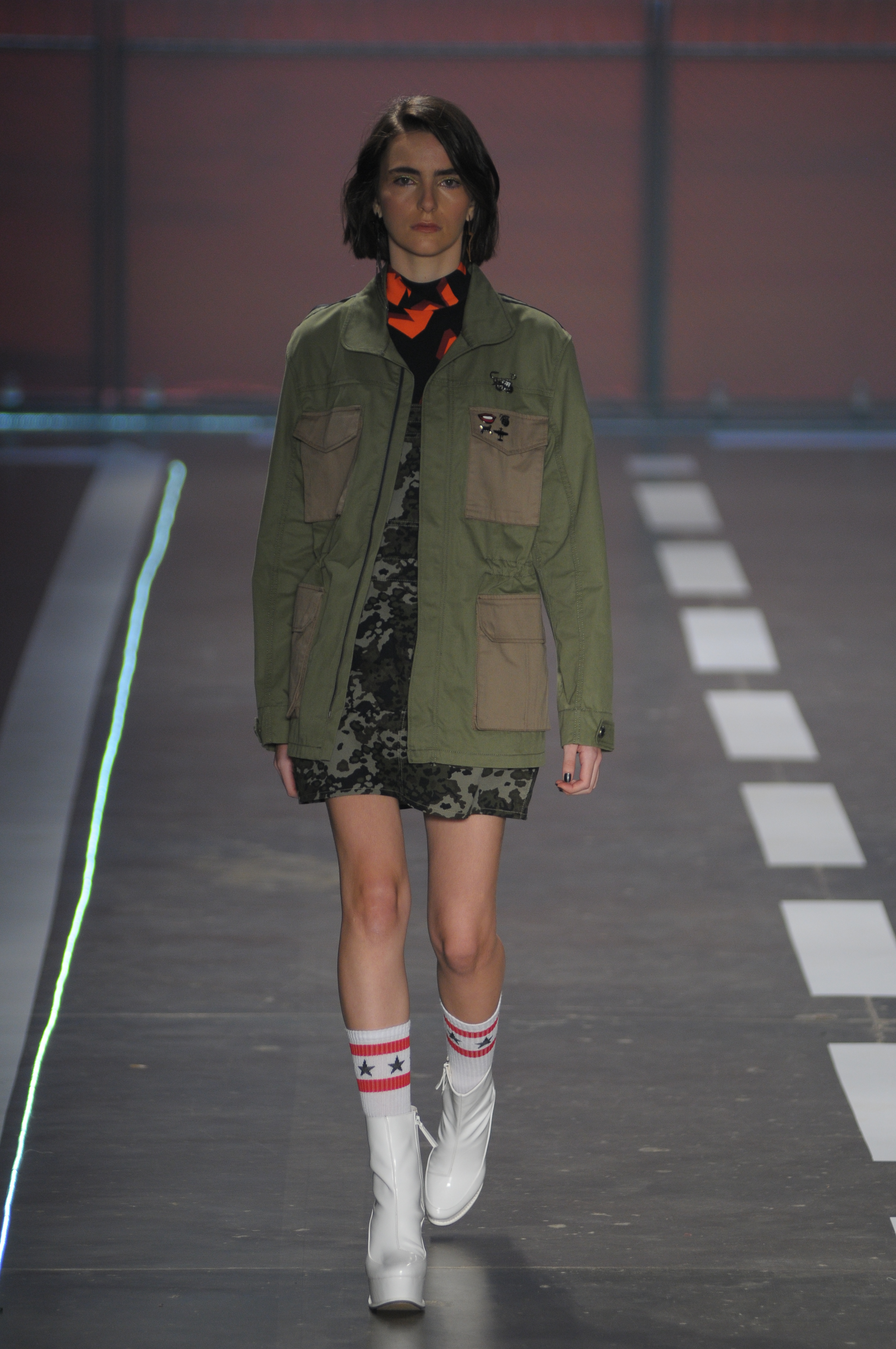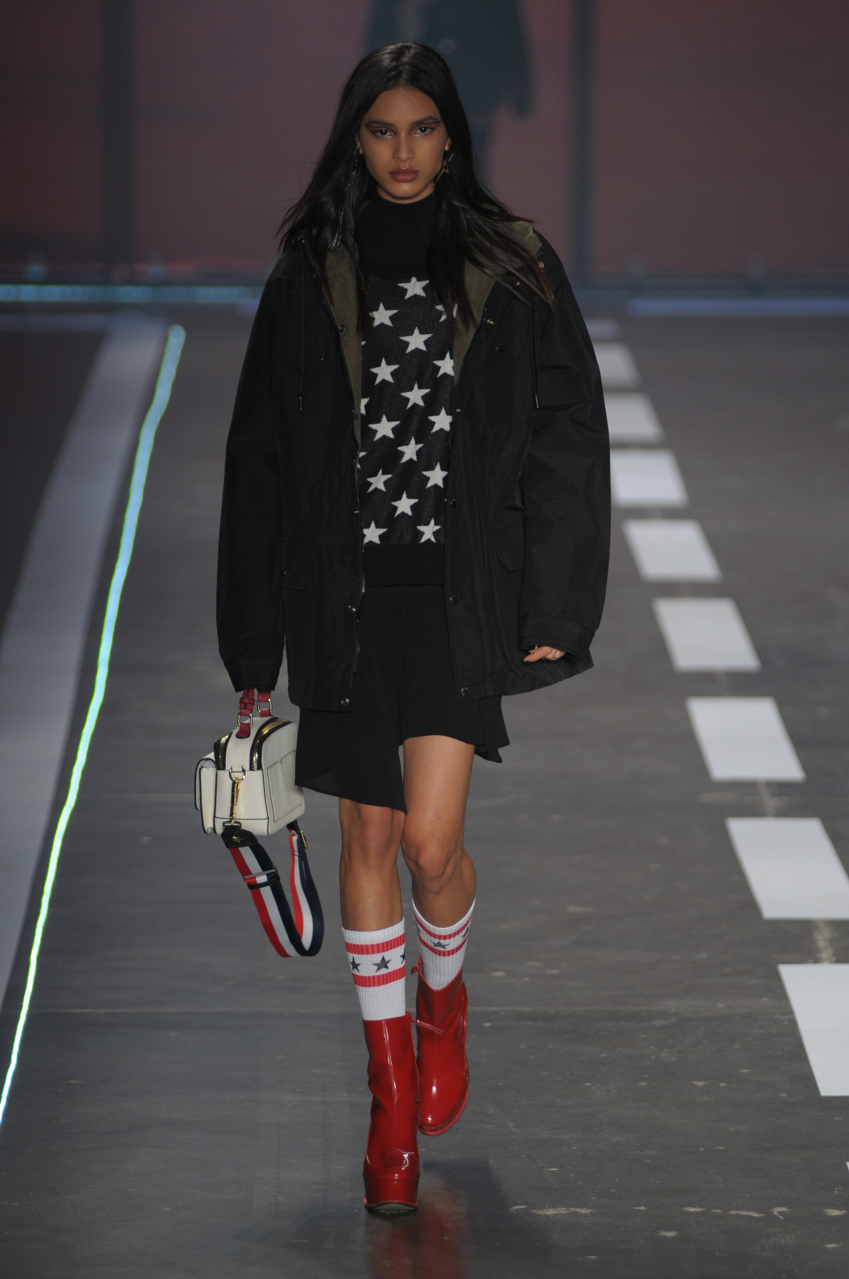 A coleção repleta de parkas utilitárias combinadas a microssaias e vestidinhos sem compromisso estampados com símbolos estilizados da bandeira americana.
