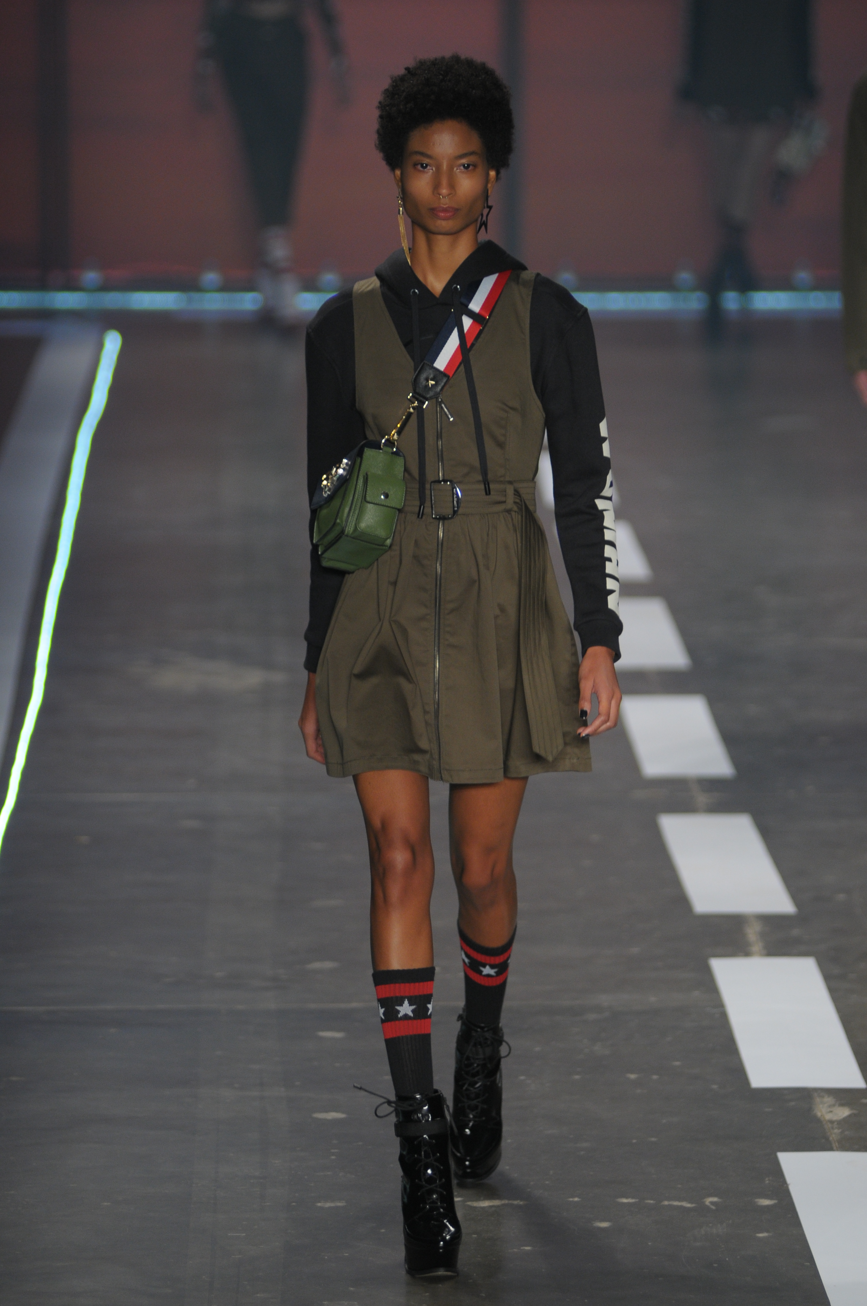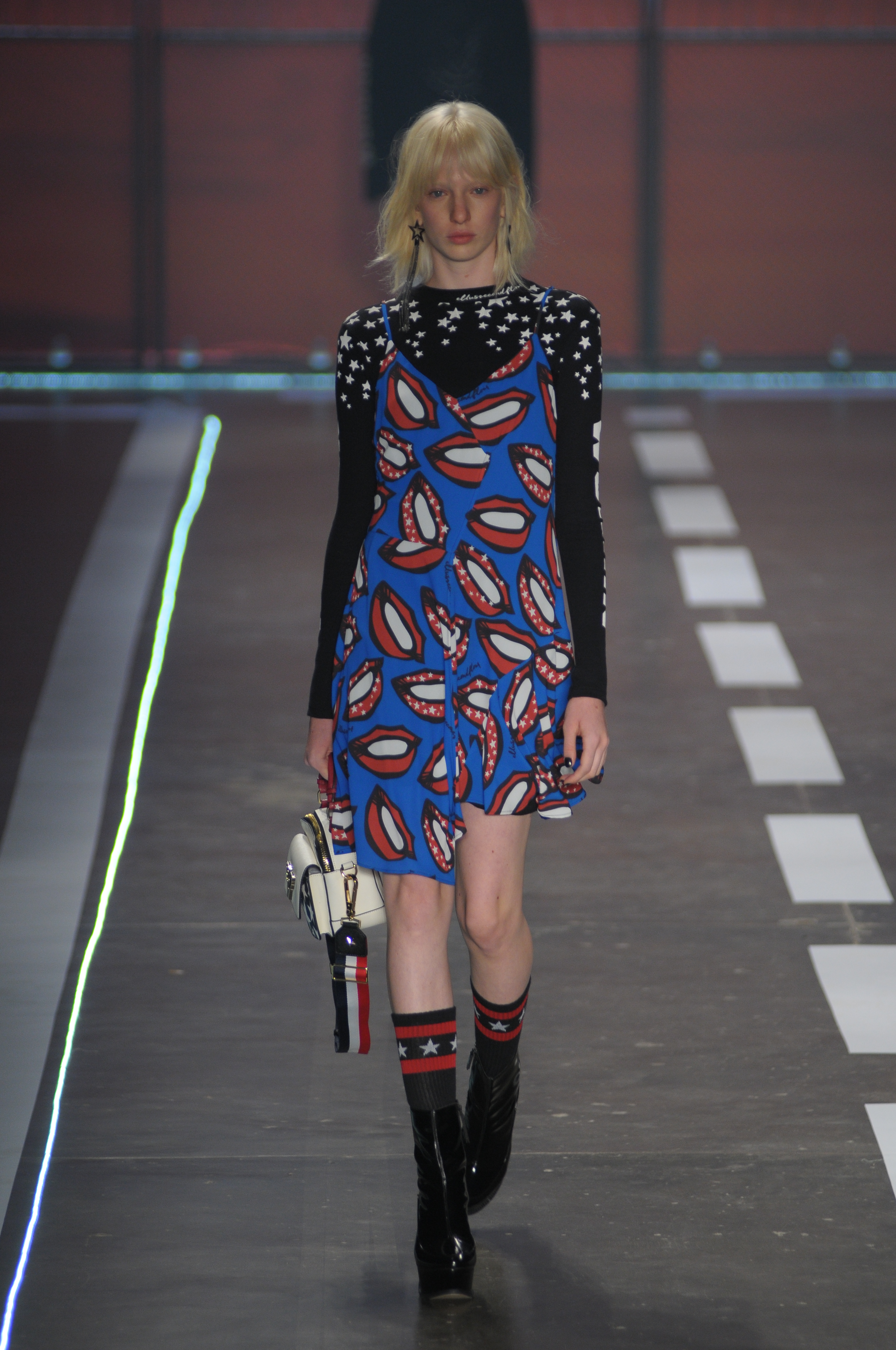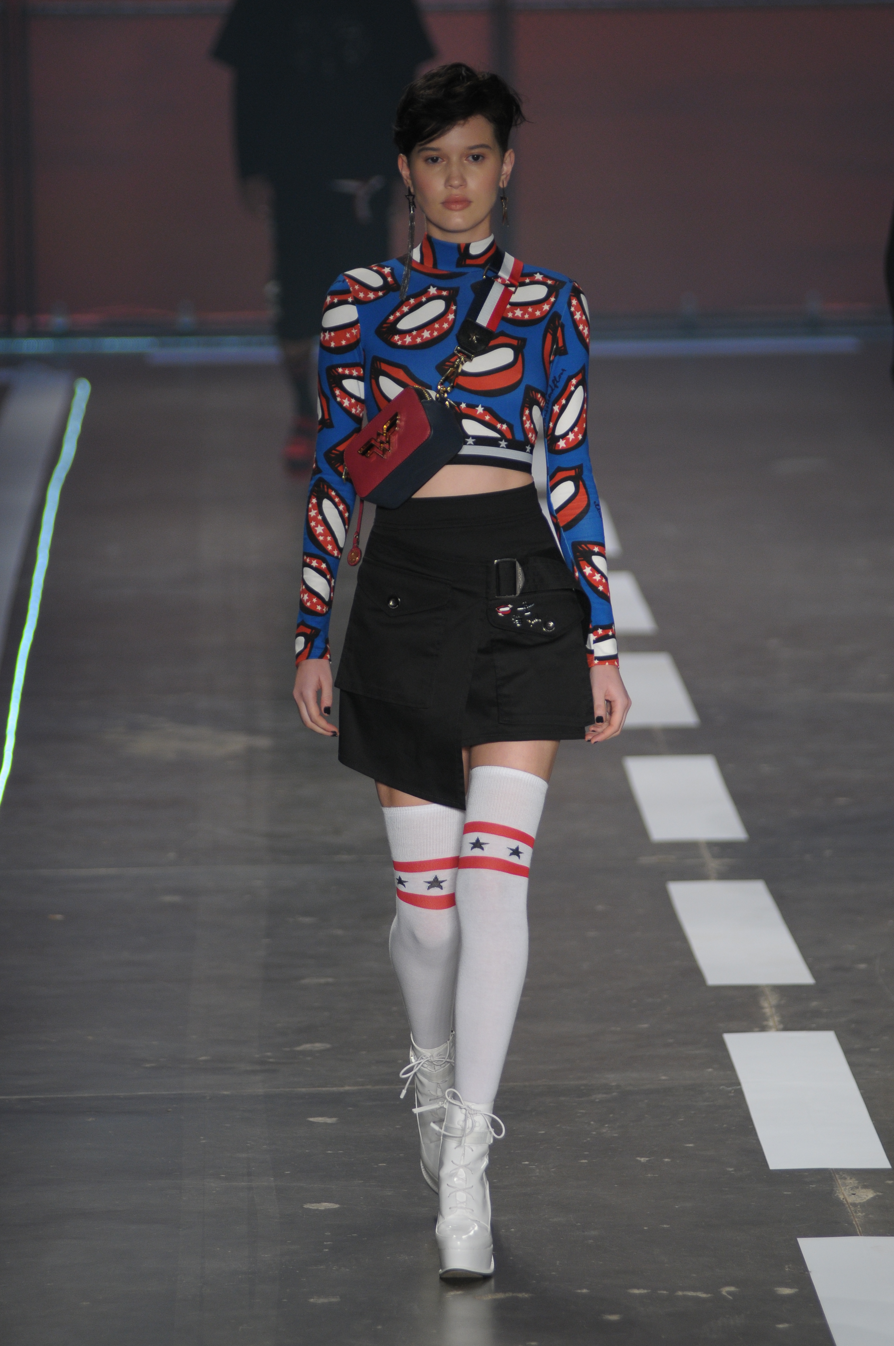 A coleção repleta de parkas utilitárias combinadas a microssaias e vestidinhos sem compromisso estampados com símbolos estilizados da bandeira americana.
