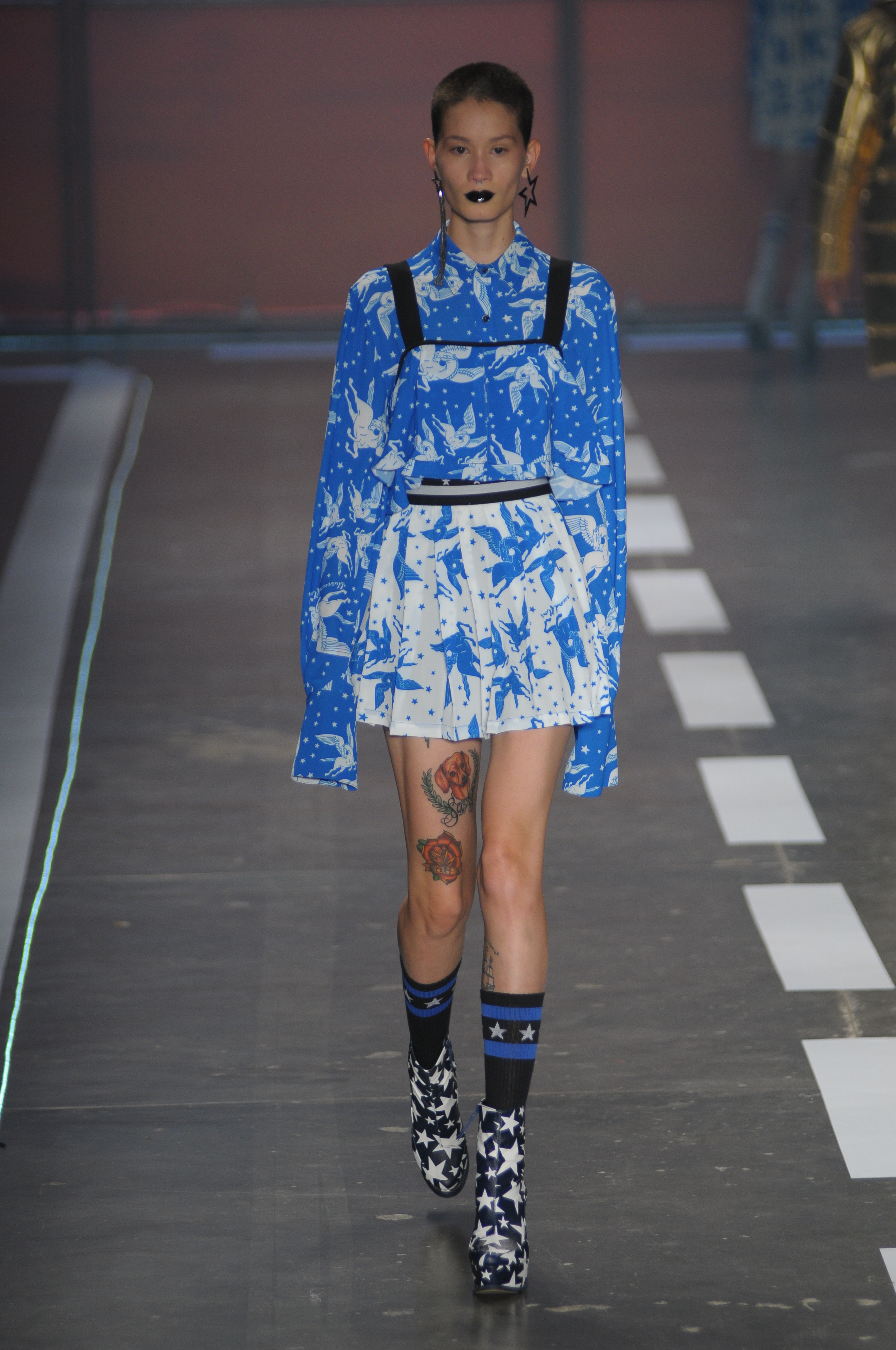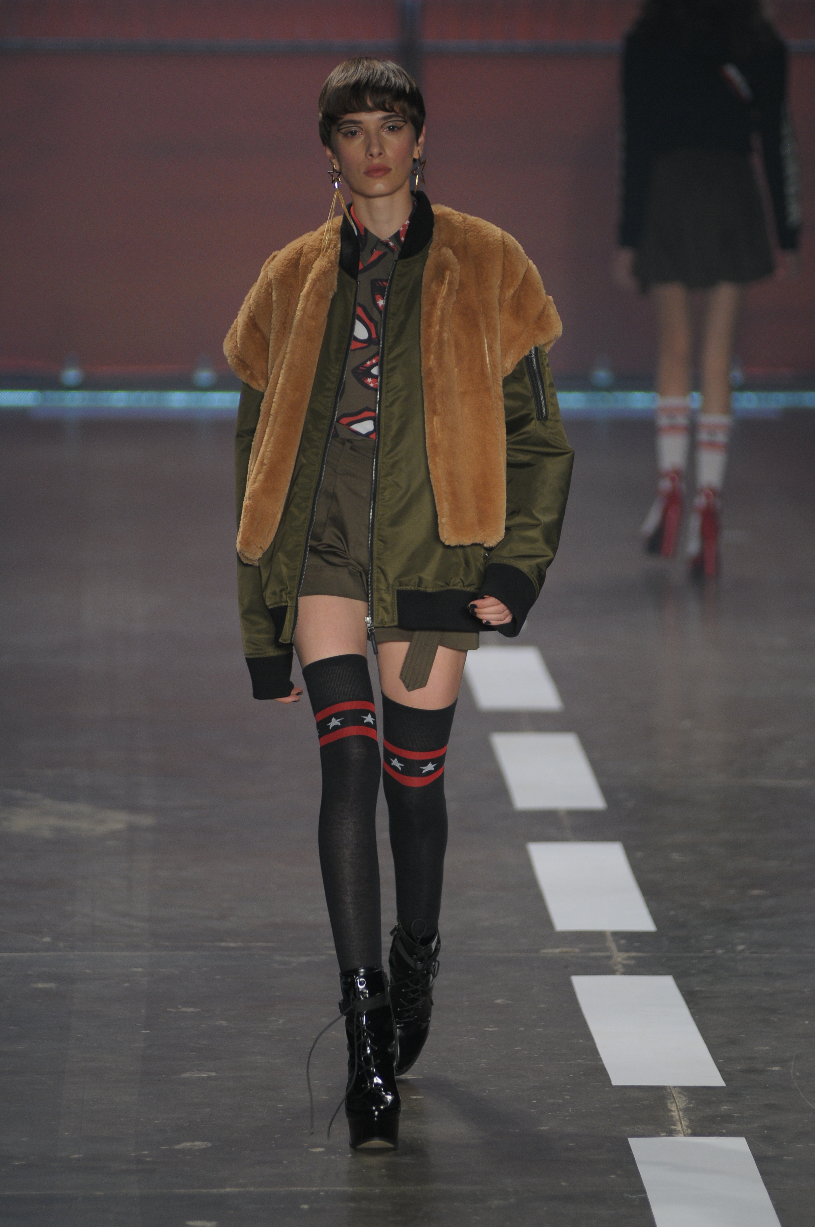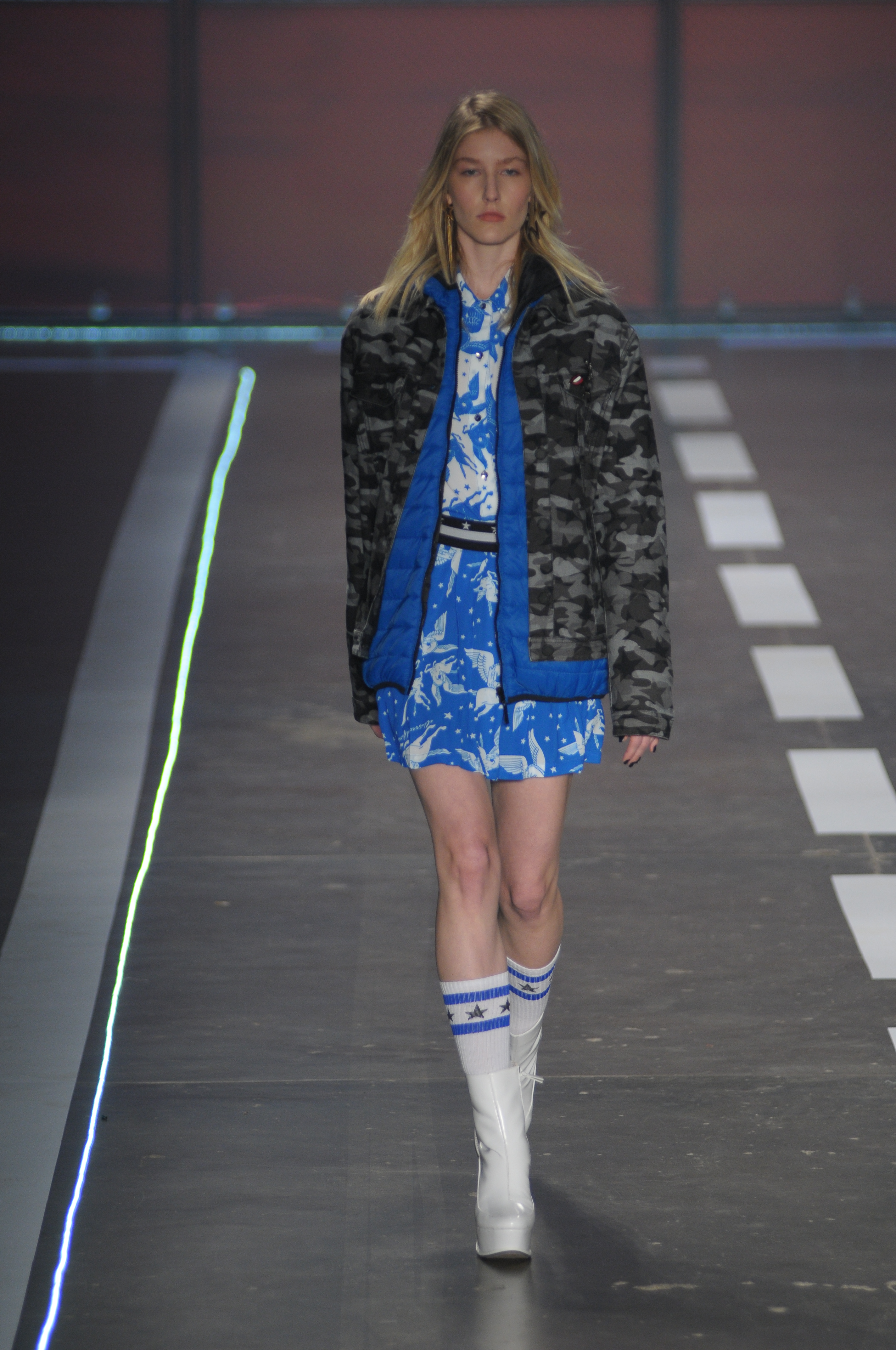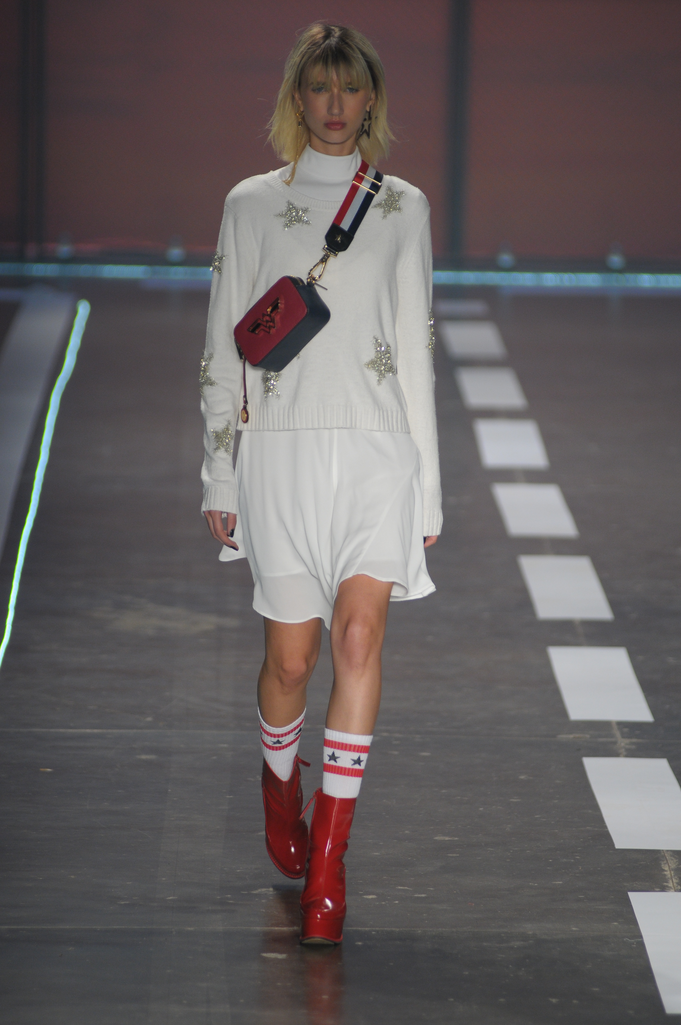 A coleção repleta de parkas utilitárias combinadas a microssaias e vestidinhos sem compromisso estampados com símbolos estilizados da bandeira americana.