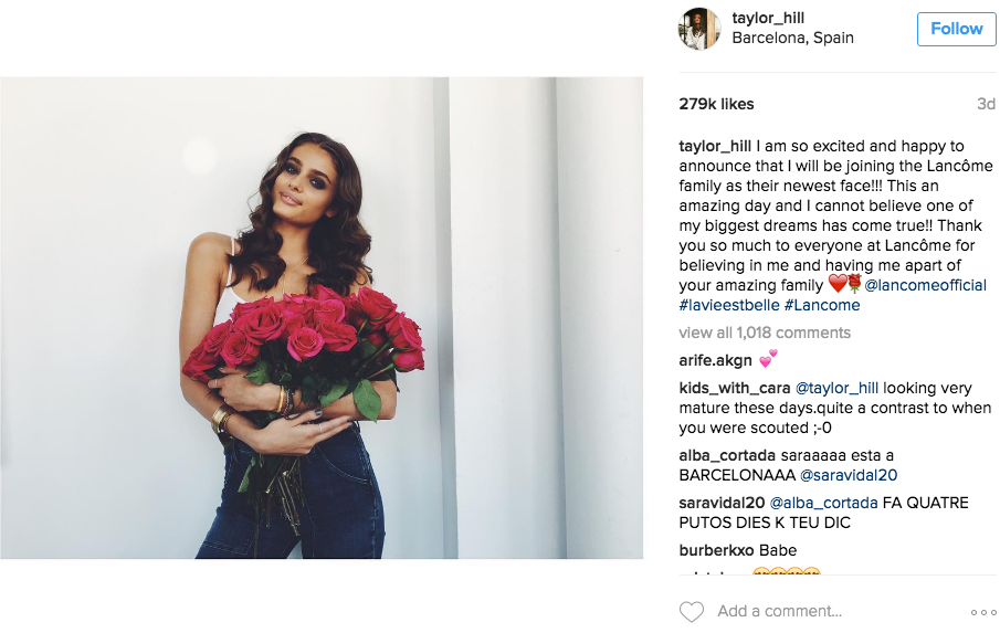 Taylor Hill, angel da Victoria’s Secret, foi anunciada como a mais nova embaixadora da Lancôme!