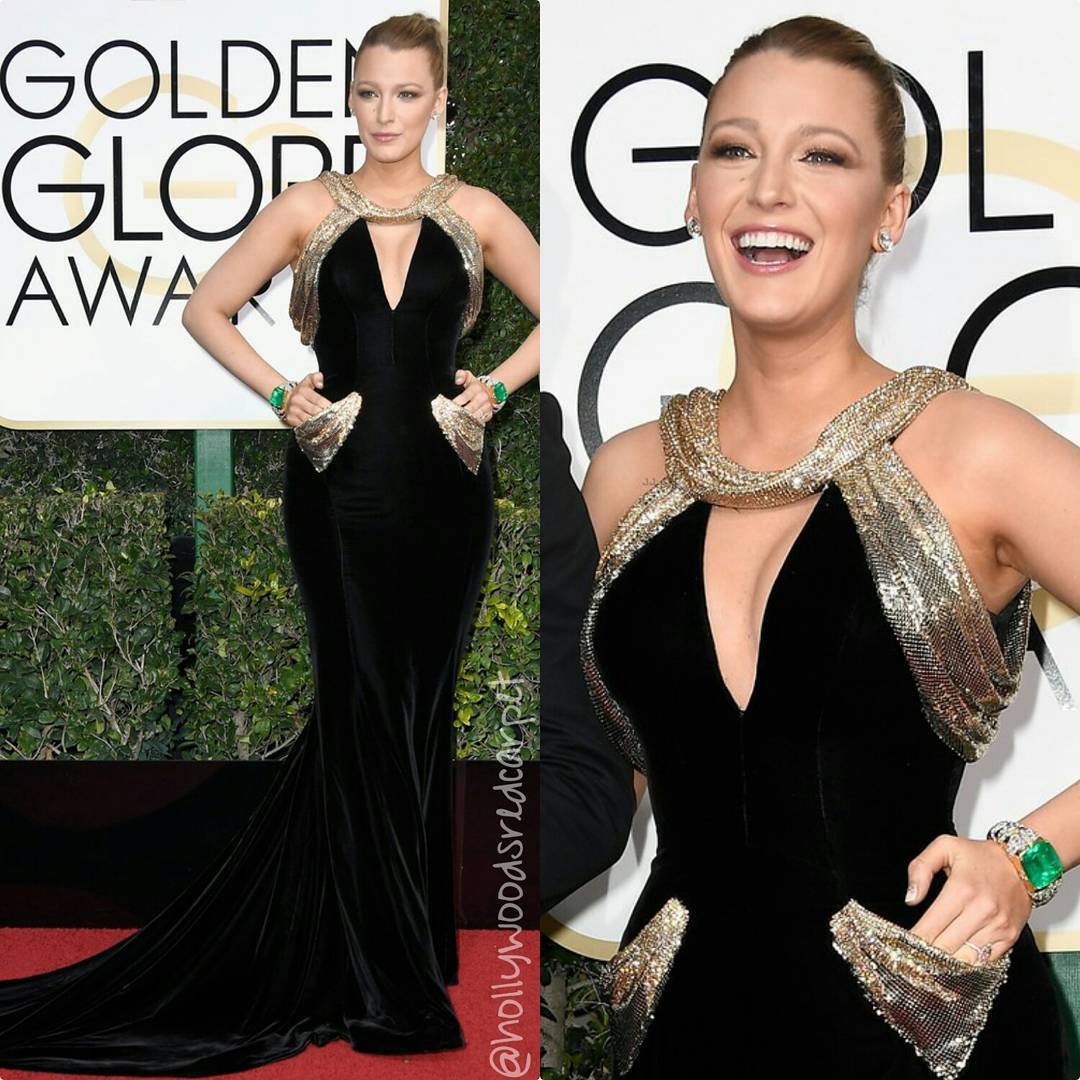 Outra musa que brilhou no evento foi a Blake Lively, que apostou em um vestido Versace maravilhoso, feito de veludo preto com embutimento de corrente de cristal dourado e Esmeralda. Para complementar sem ofuscar a produção mais noturna e discreta, os acessórios ficaram por conta do bracelete e um clássico rabo de cavalo.