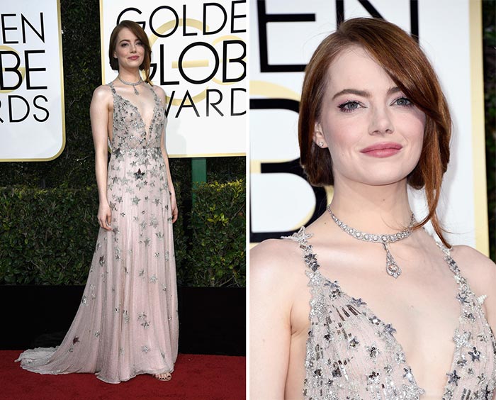 O filme La La Land, musical super romântico e energético, foi indicado a 7 prêmios e conquistou a todos! E a lindíssima Emma Stone, a protagonista do longa, que ganhou o prêmio de Melhor Atriz de Comédia/Musical, subiu ao palco com um vestido belíssimo Valentino, todo detalhado com cristais Swarovski, decote em V profundo e um corpete adornado com estrelas. Estava linda!