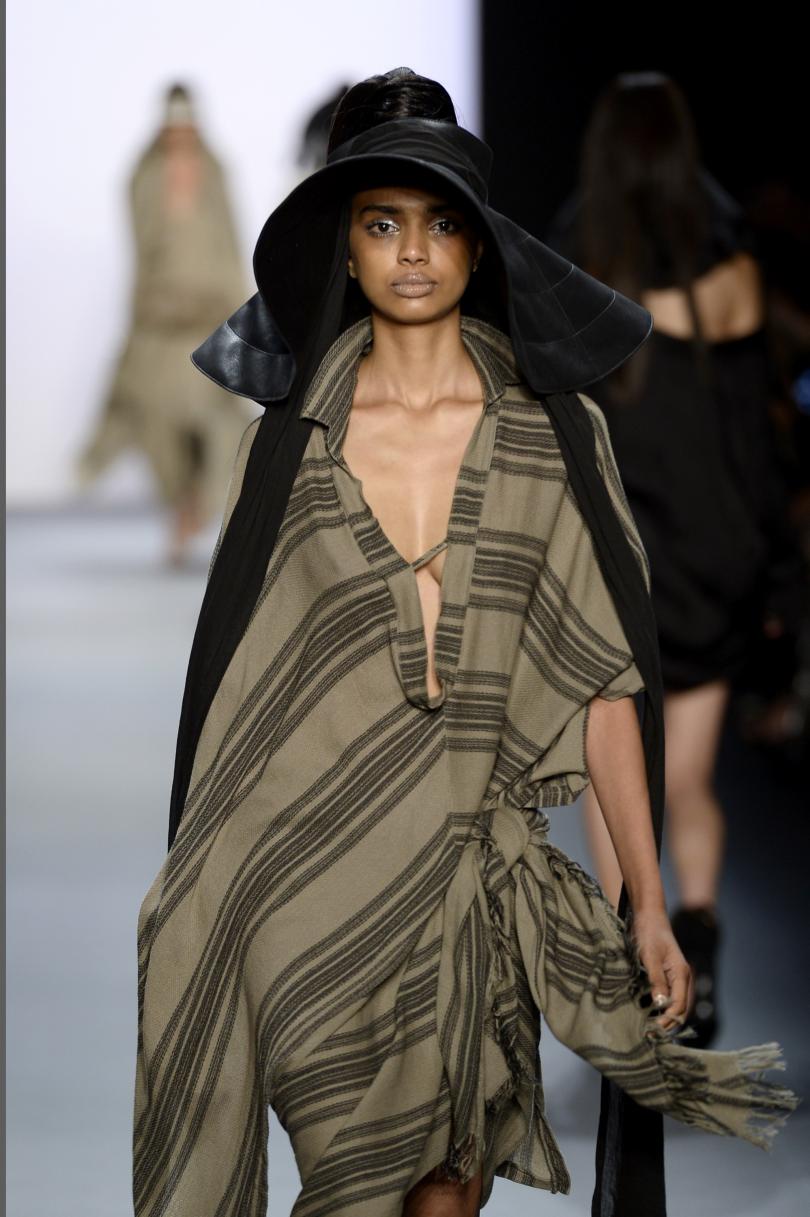 Uma das viseiras que viraram aposta para a estação foi desfiladas na semana de moda pela marca Nicholas K, que fez o acessório com lenços e sobras na parte traseira, como uma semi-burca. Na maison Dior, o modelo ganhou toque elegante graças à texturas e tons sóbrios – ideal para quem quer usar a peça longe do clima tropical.
