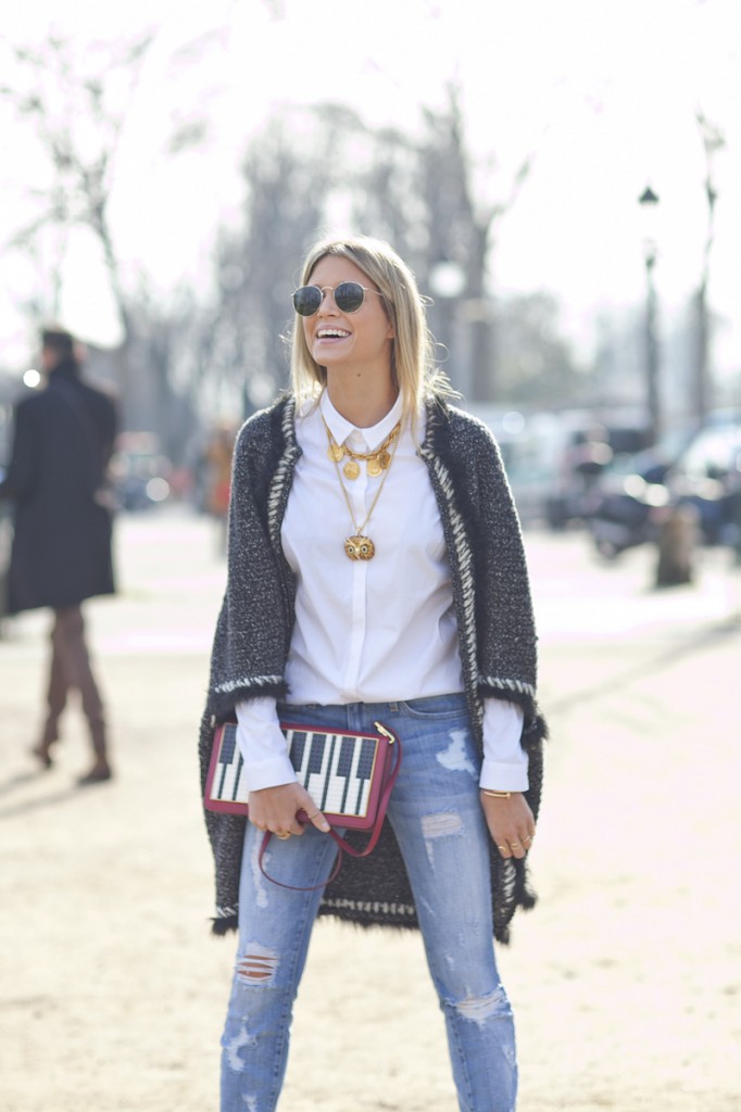 A clássica camisa branca é um dos itens mais indispensáveis do seu guarda-roupa. Se você não tem uma que ame de paixão, vá em busca dela já! Peça curinga na hora de montar um look, você ainda por cima está seguindo uma das maiores tendências desta última temporada de moda, já que ela esteve presente em quase TODOS os desfiles. Seja por baixo de um vestido, por baixo de uma malha ou casaco, ou até mesmo sozinha! Rock it!